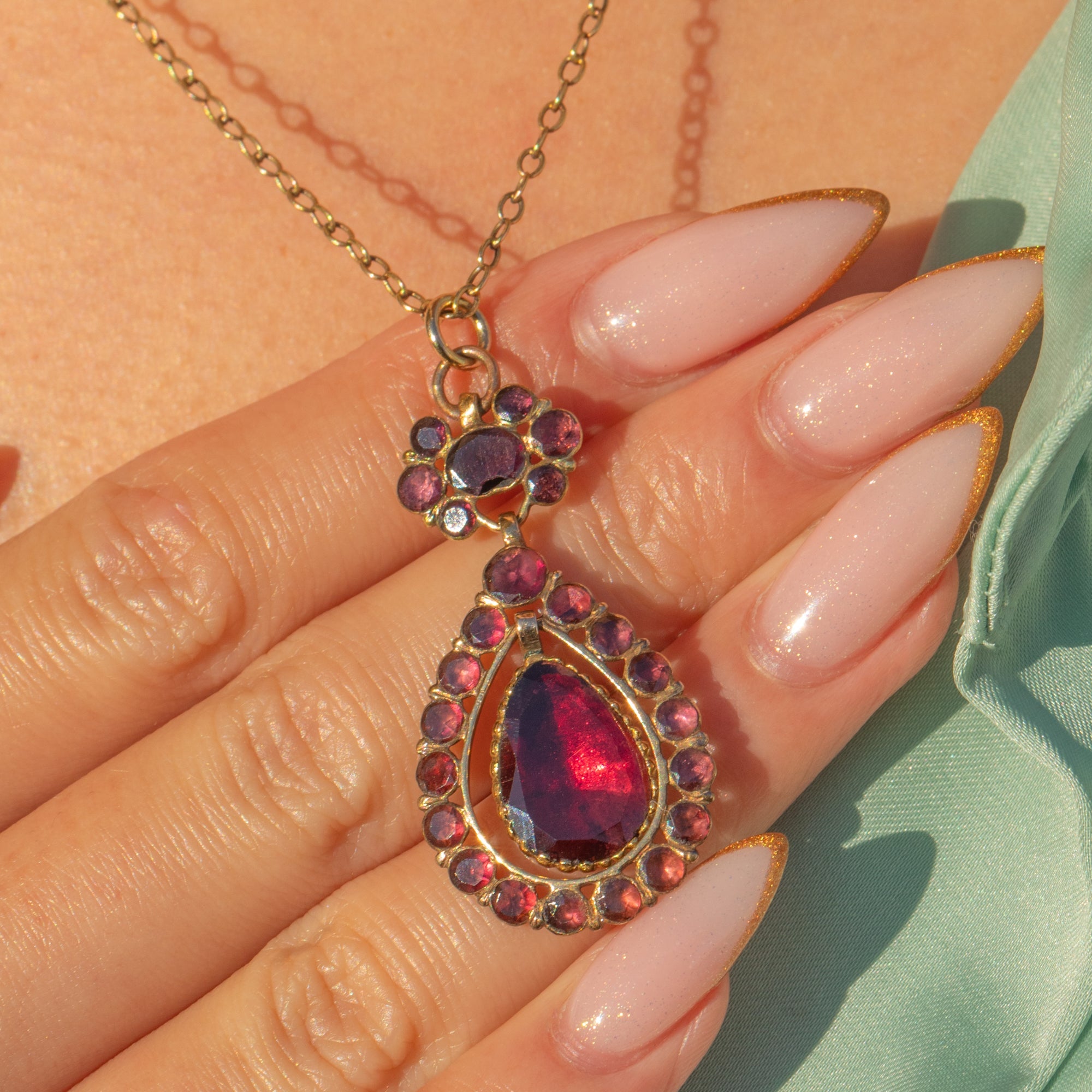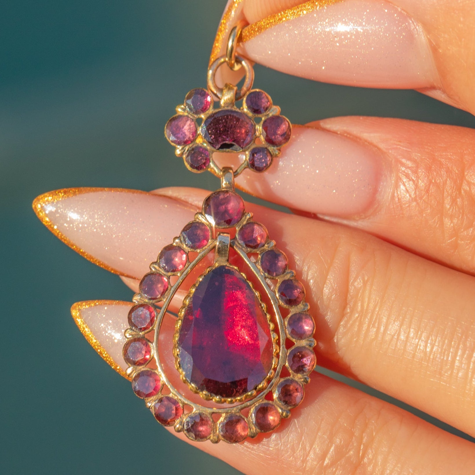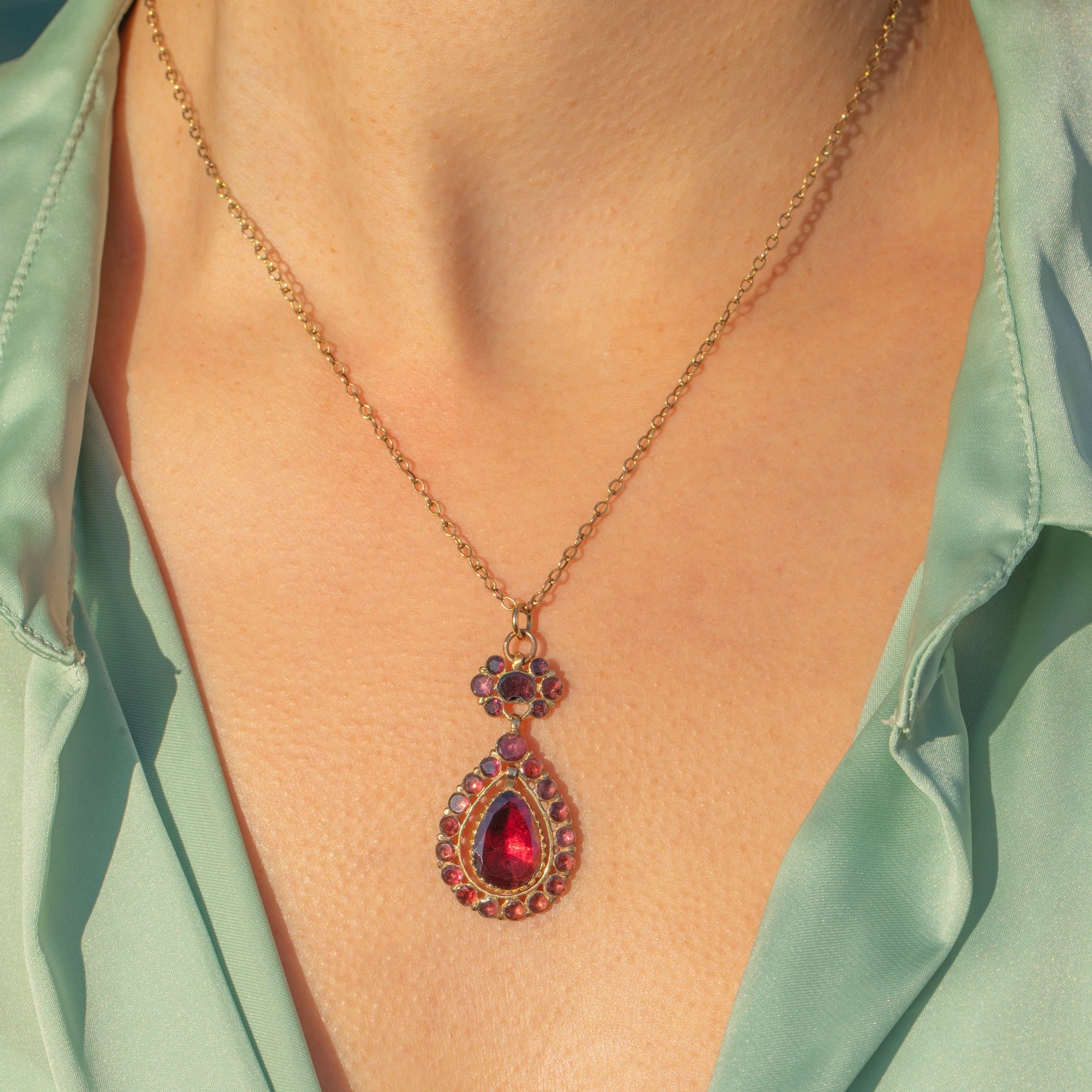 Georgian 18ct ゴールド クイーンアン フラットカット ガーネット ペンダント, c.1780