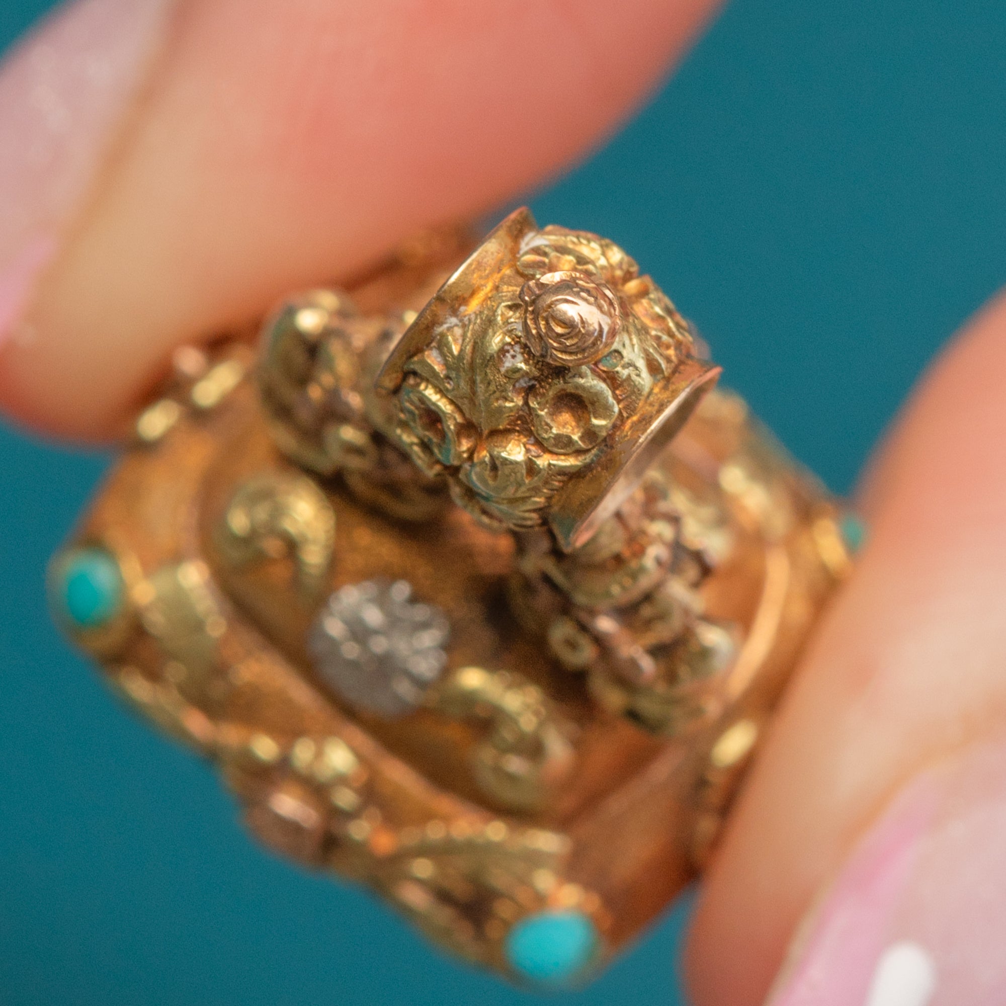 Georgian 18ct Gold Three Colour Amethyst Turquoise Fob