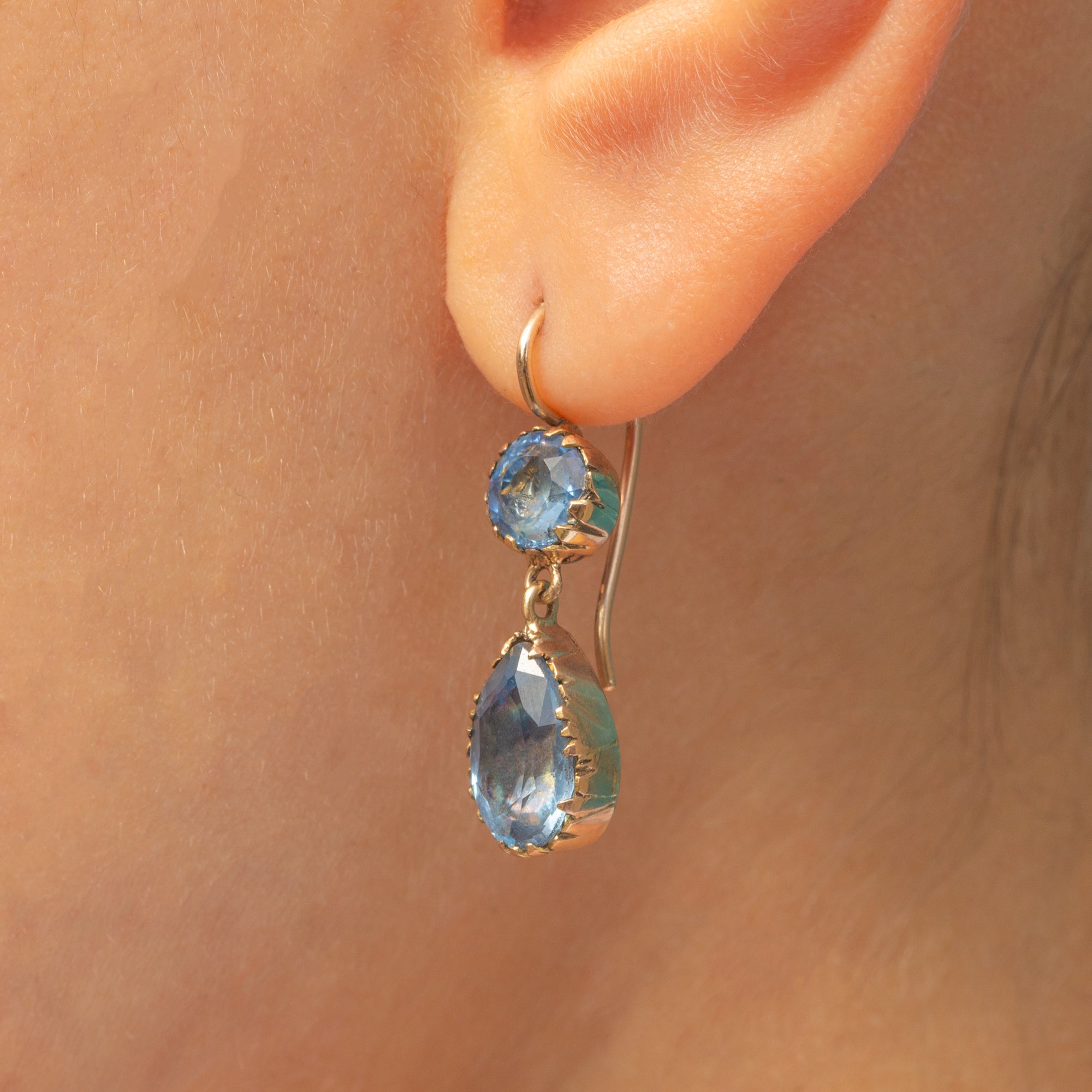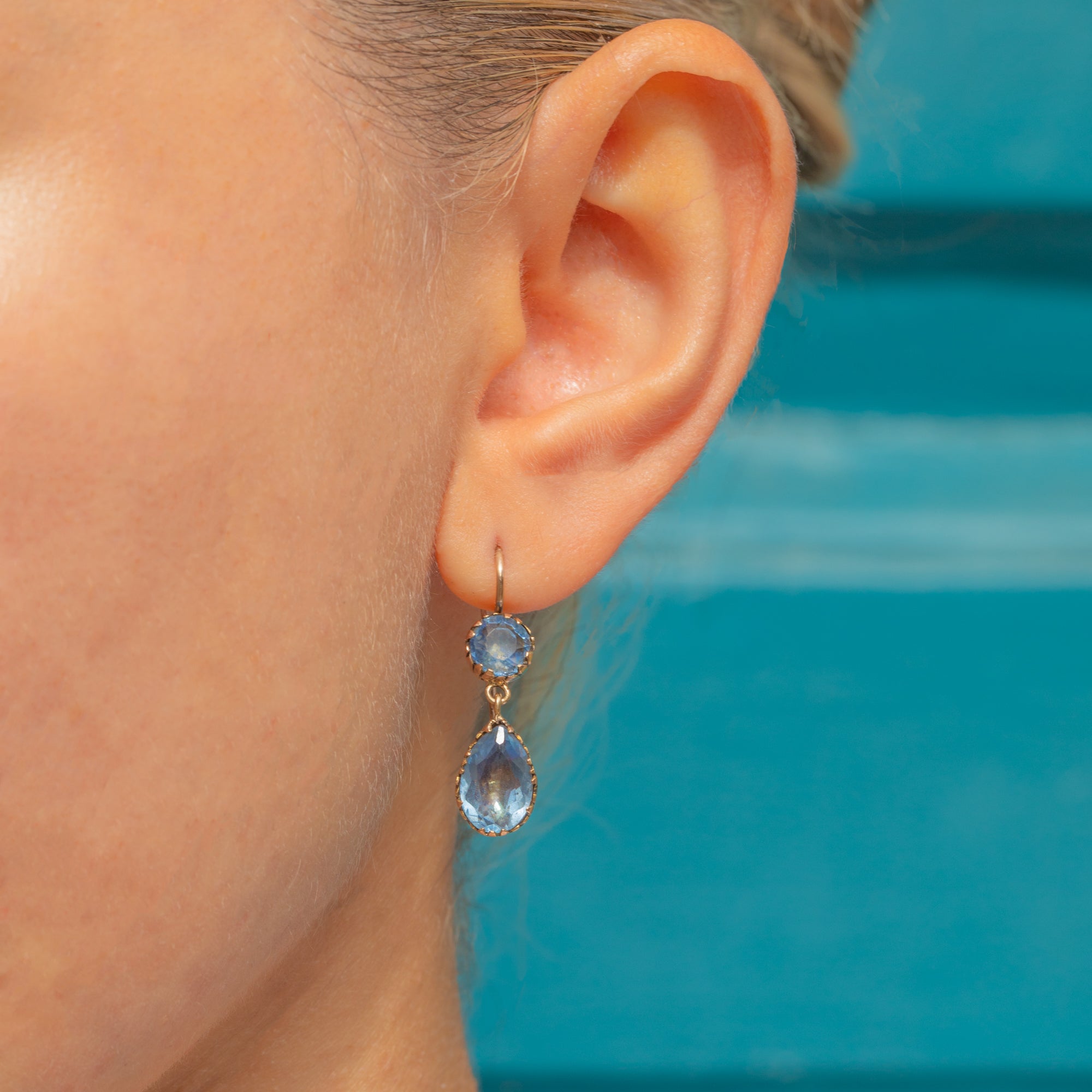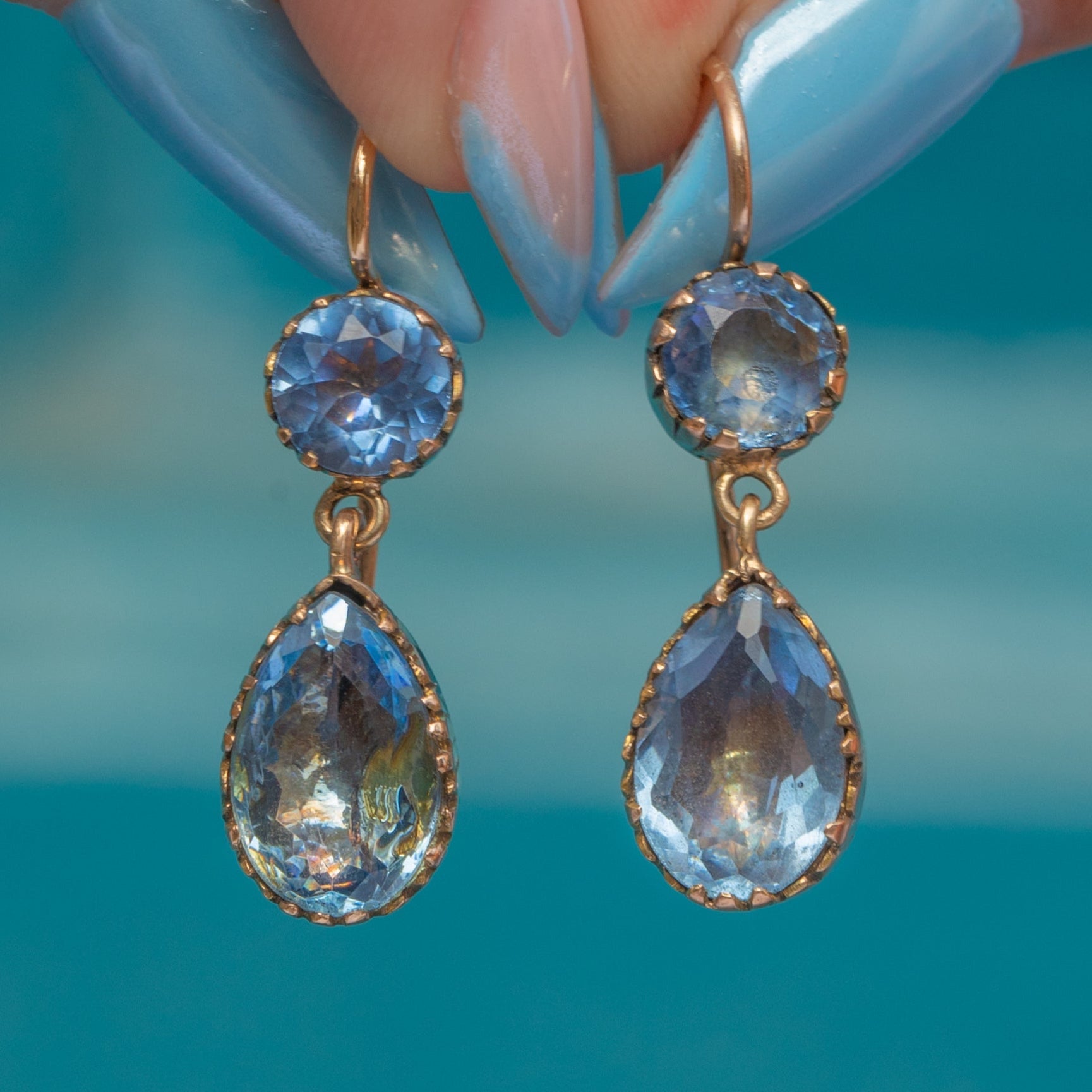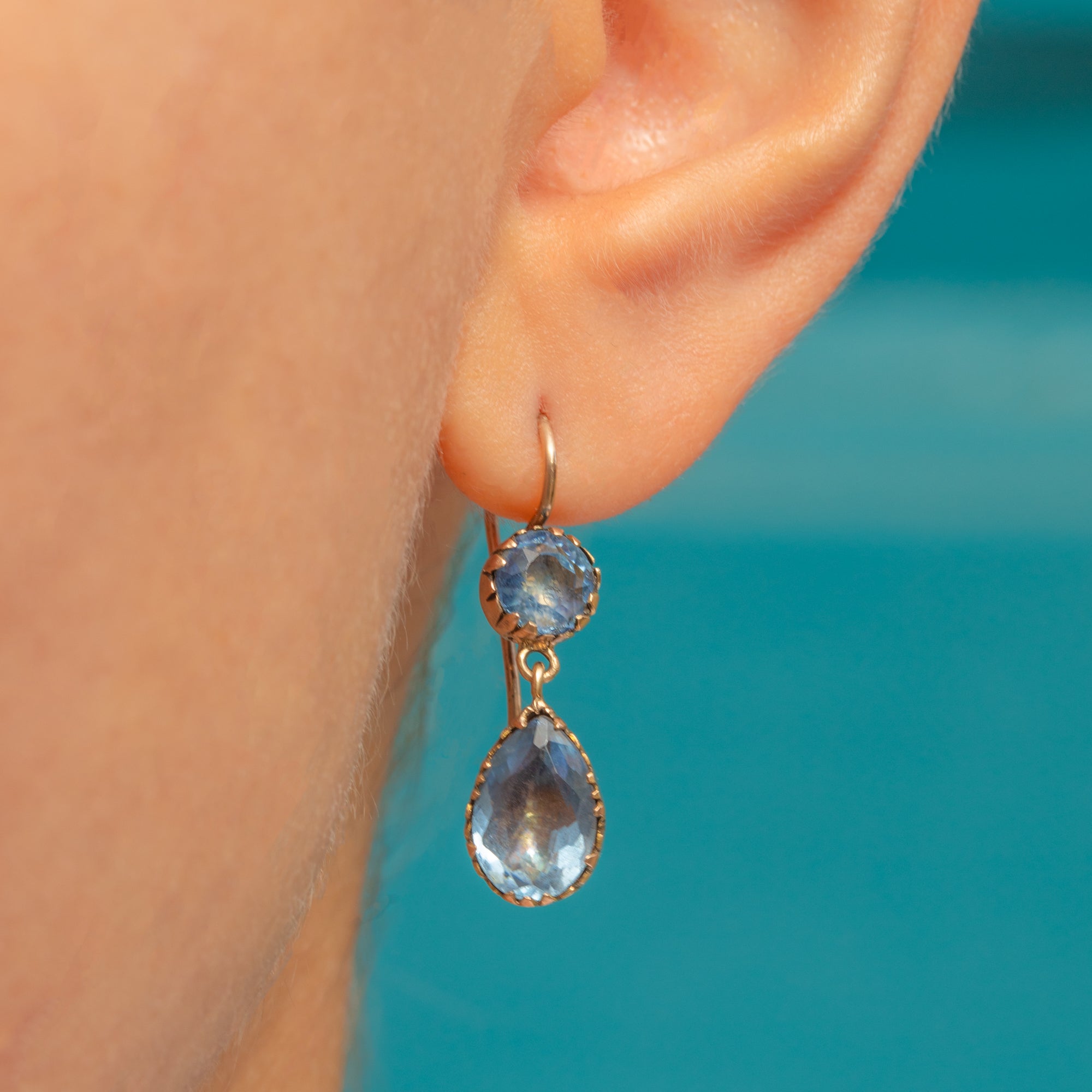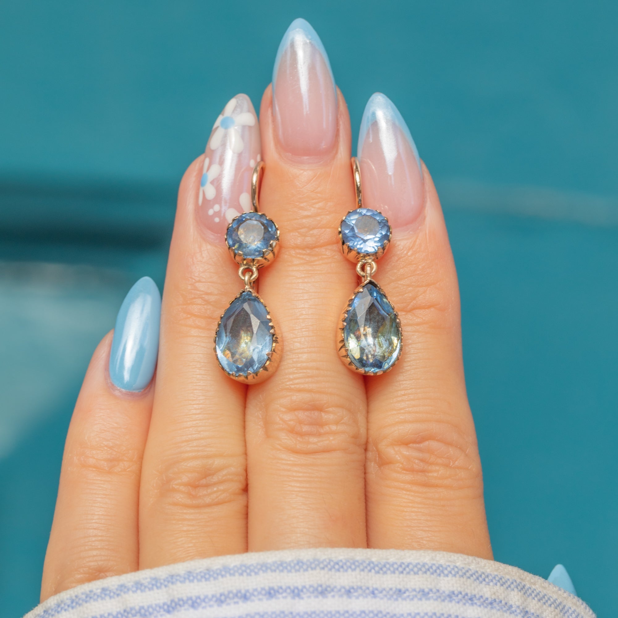 ジョージアン 9ct ゴールド ブルーパースト ドロップイヤリング(約1820年)
