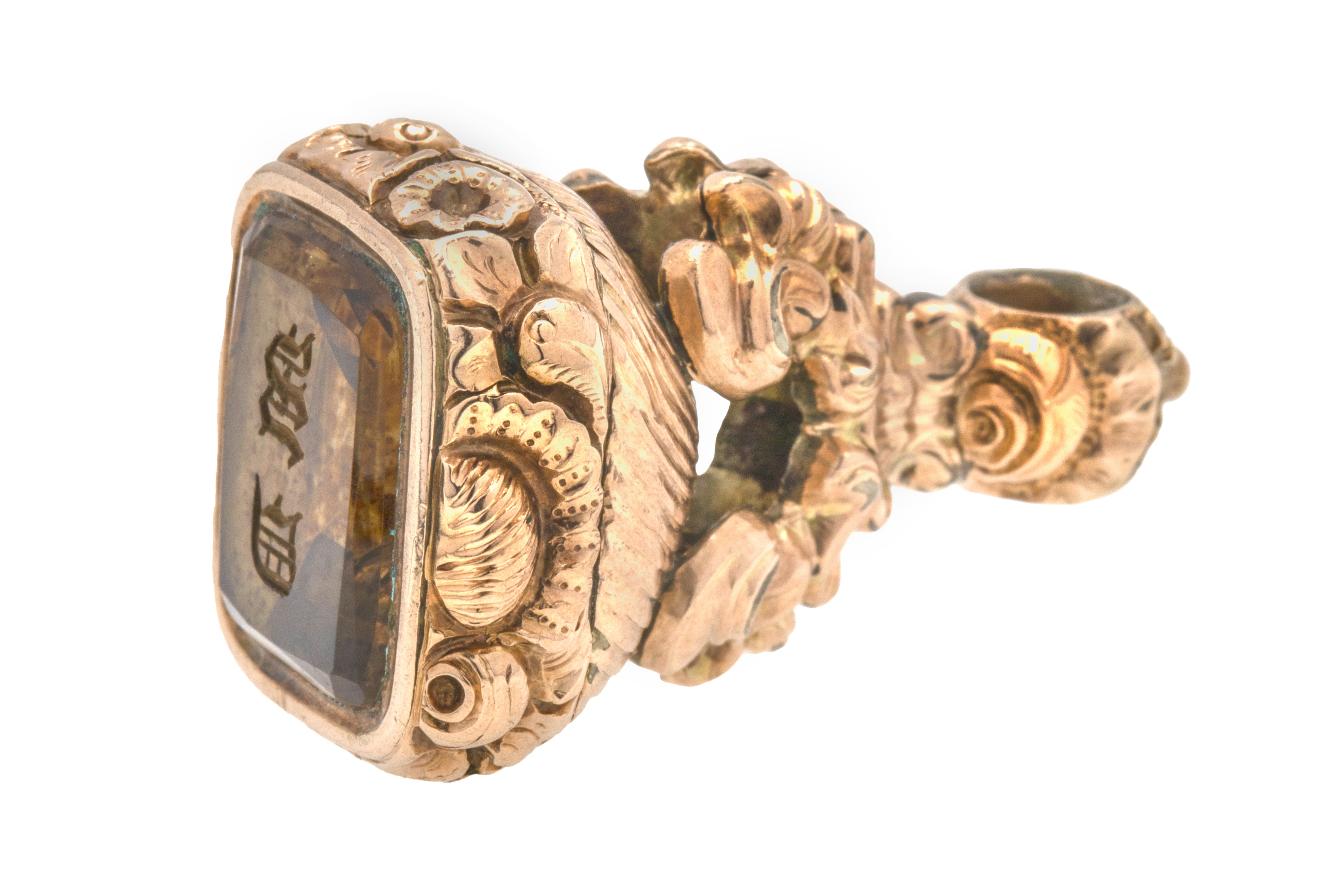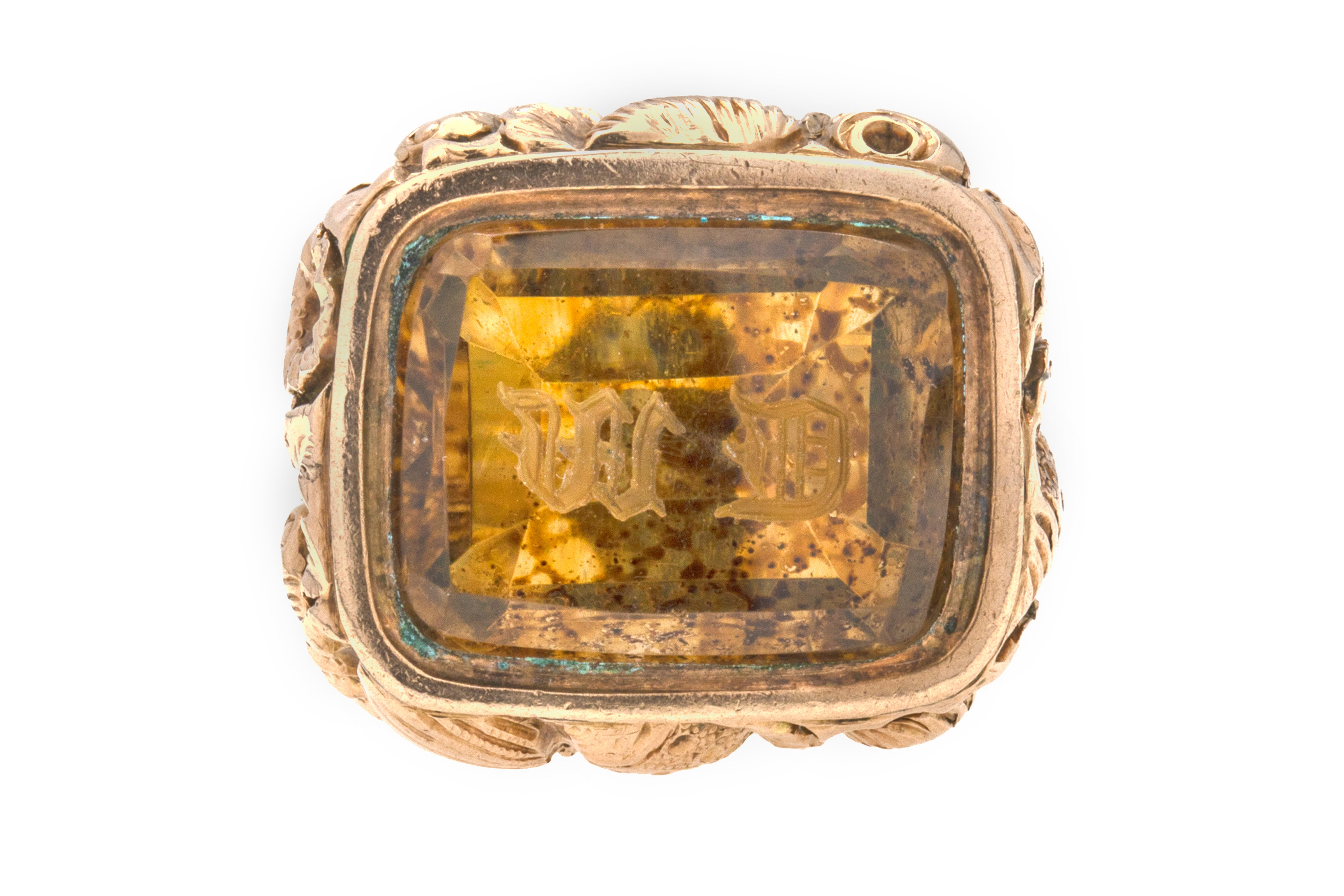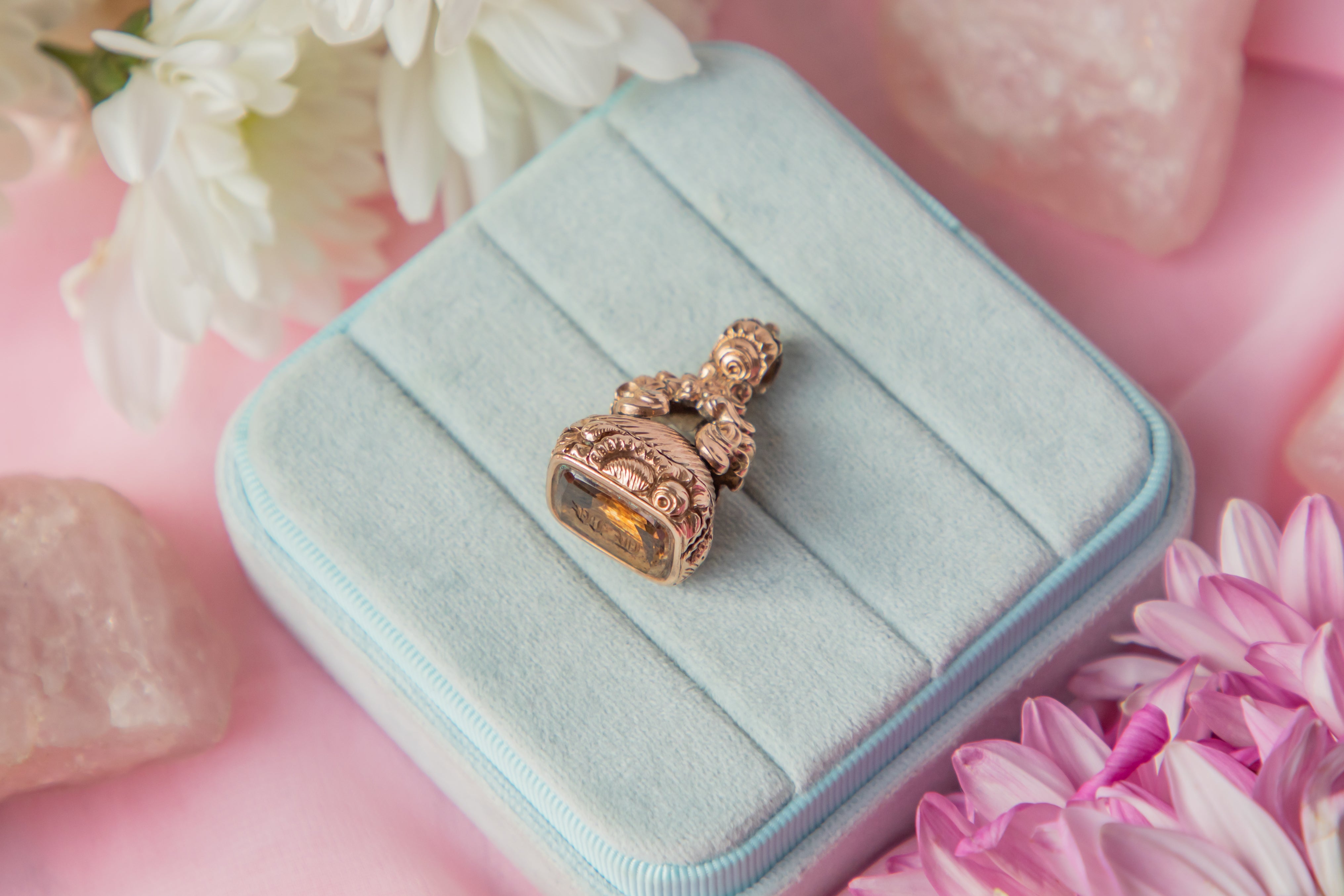 ジョージアン 9ct ゴールドケース シトリン フォブ ペンダント、「MD」イントaglio