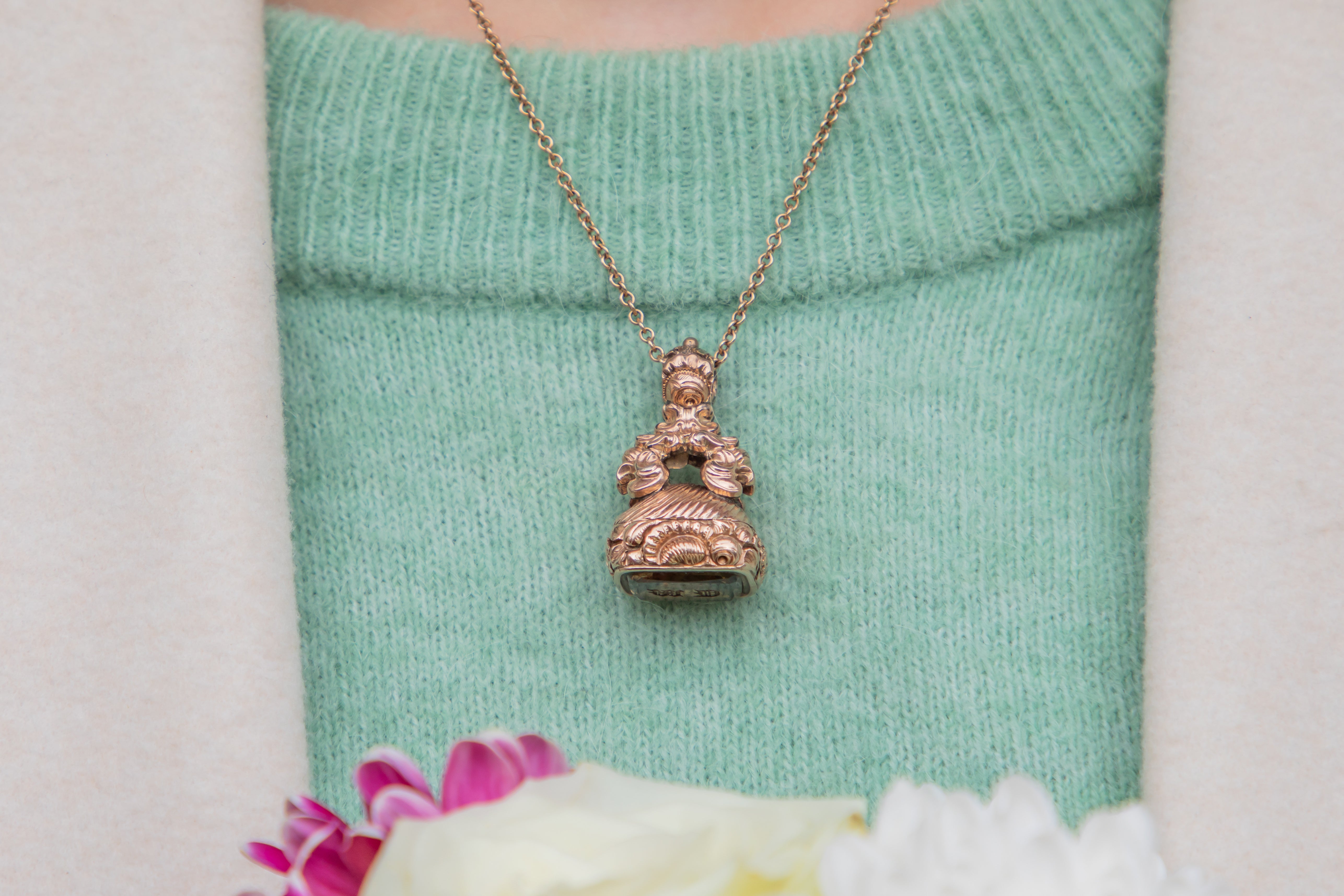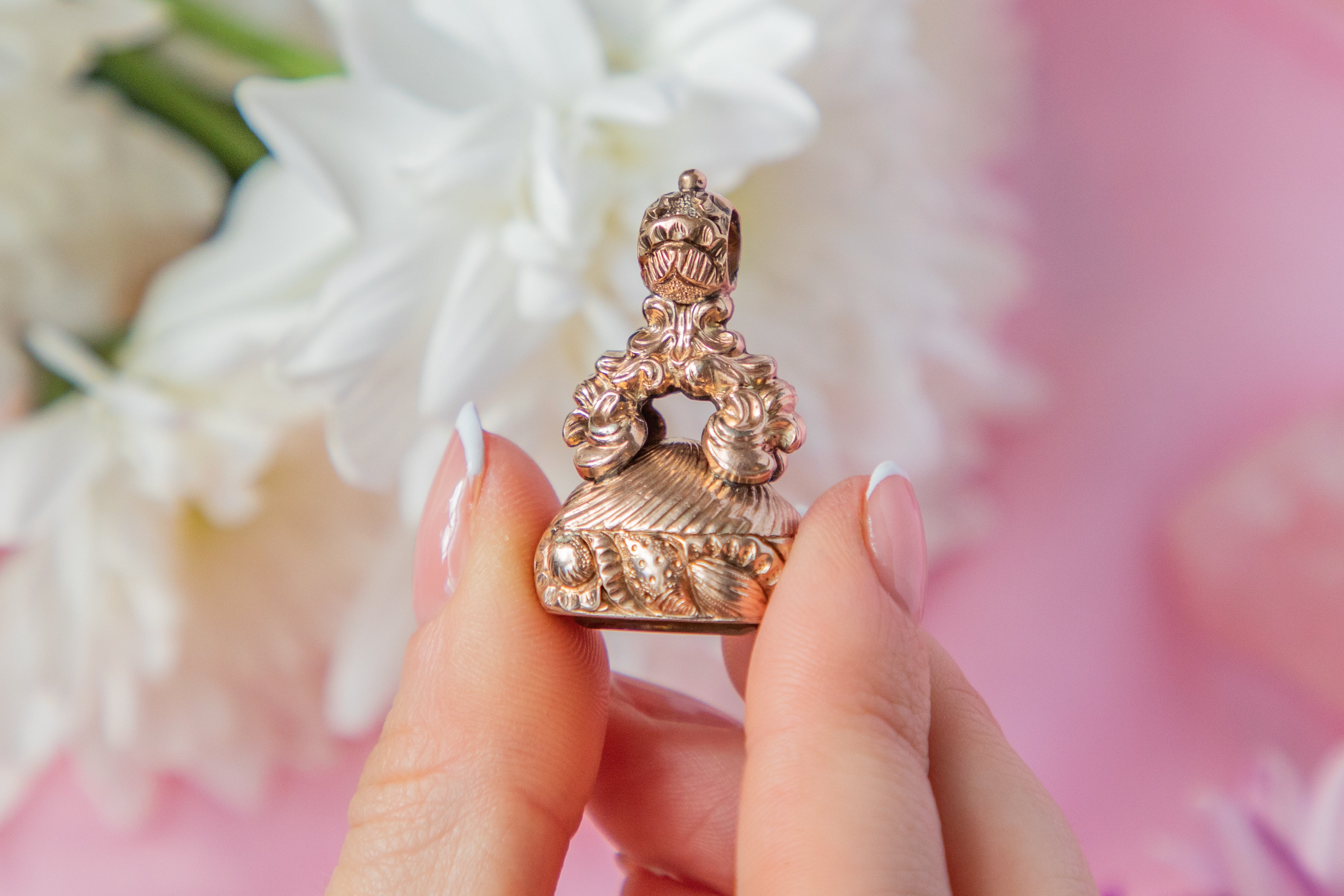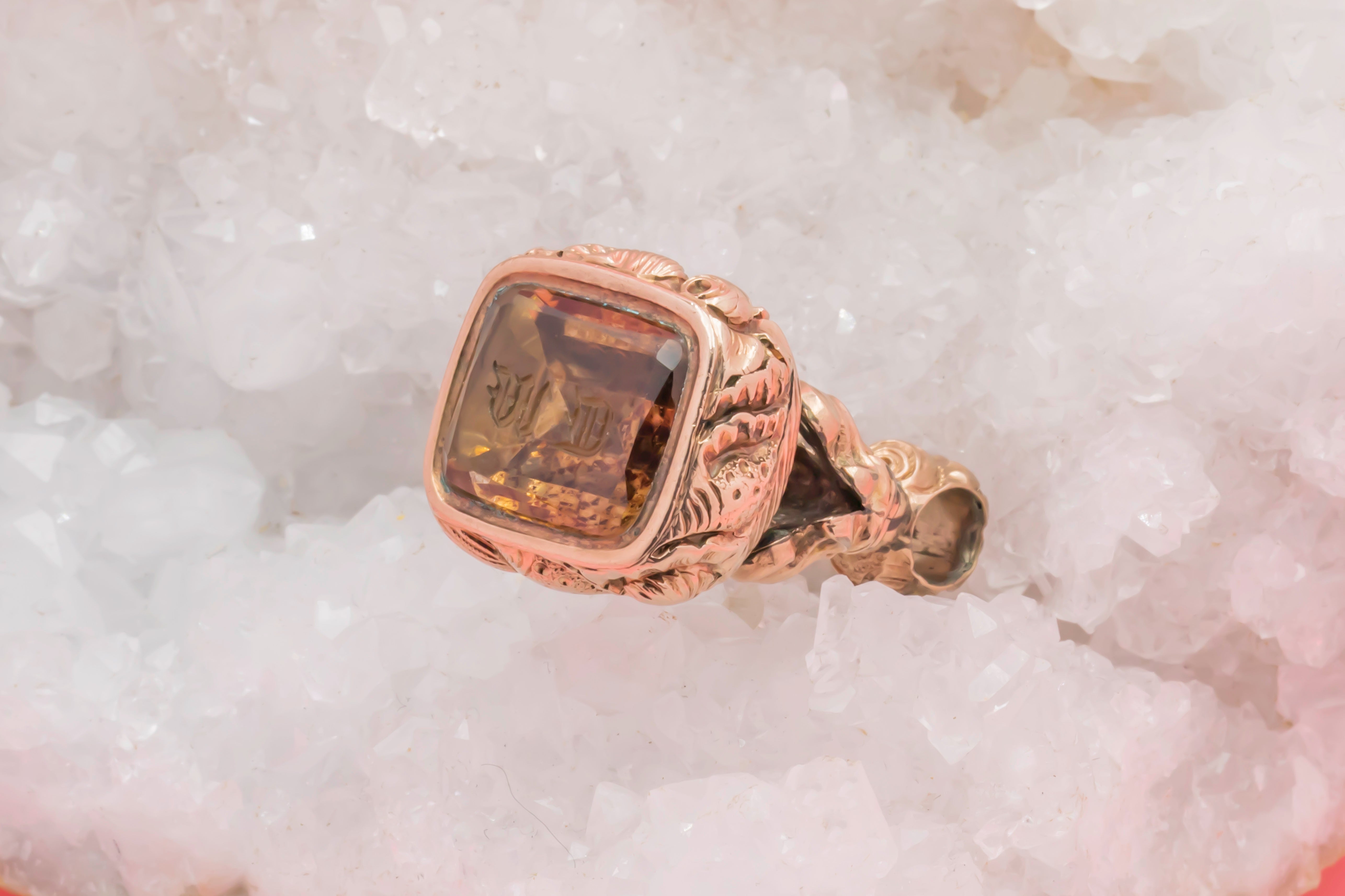 ジョージアン 9ct ゴールドケース シトリン フォブ ペンダント、「MD」イントaglio
