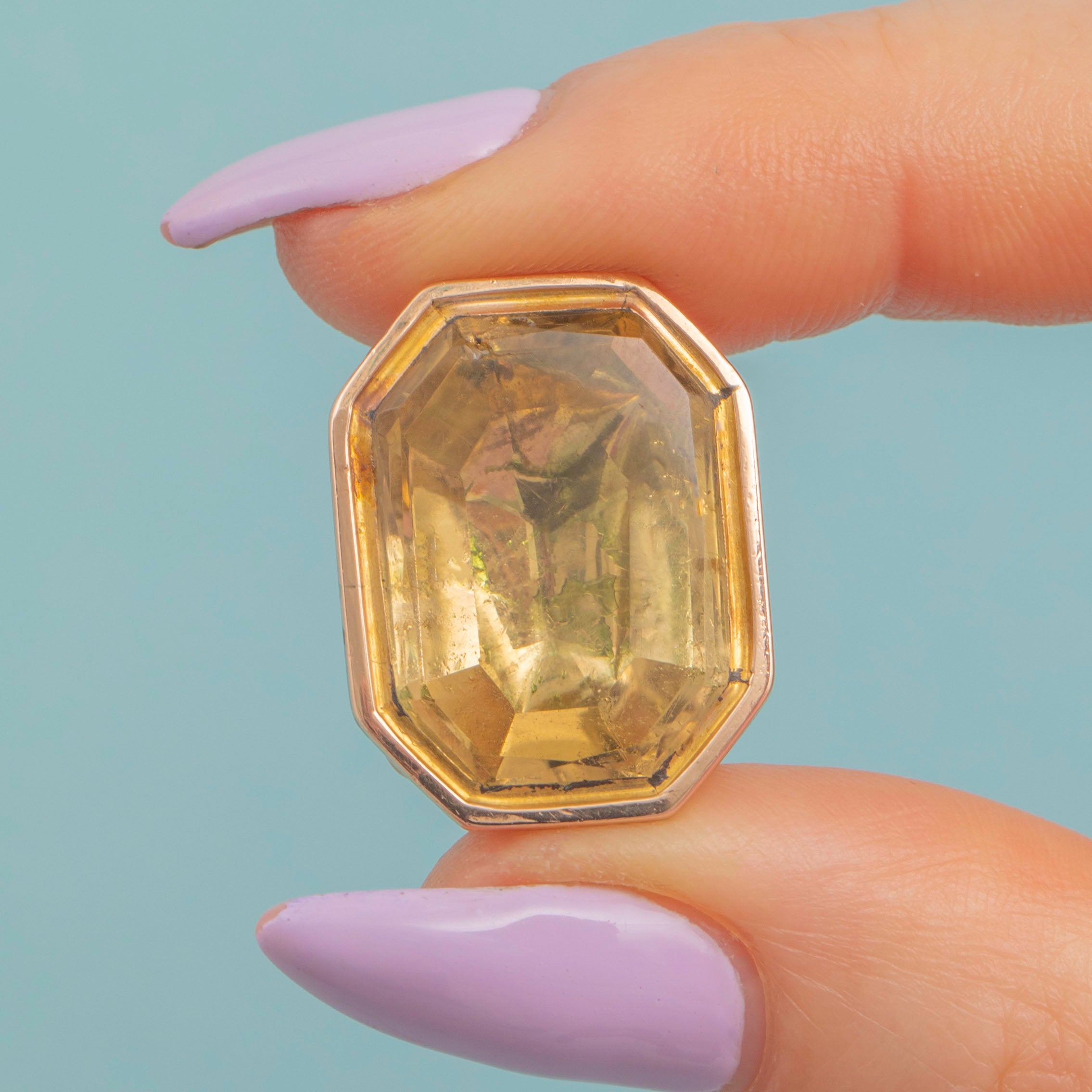 At the base lies 12.21ct Citrine with a gorgeous lemony hue, perfectly complemented by buttery 9ct Gold to create a harmonious colour palette. With its bold design and exquisite details, this Georgian Citrine fob will make an impact once suspended from a chain across your décolletage!