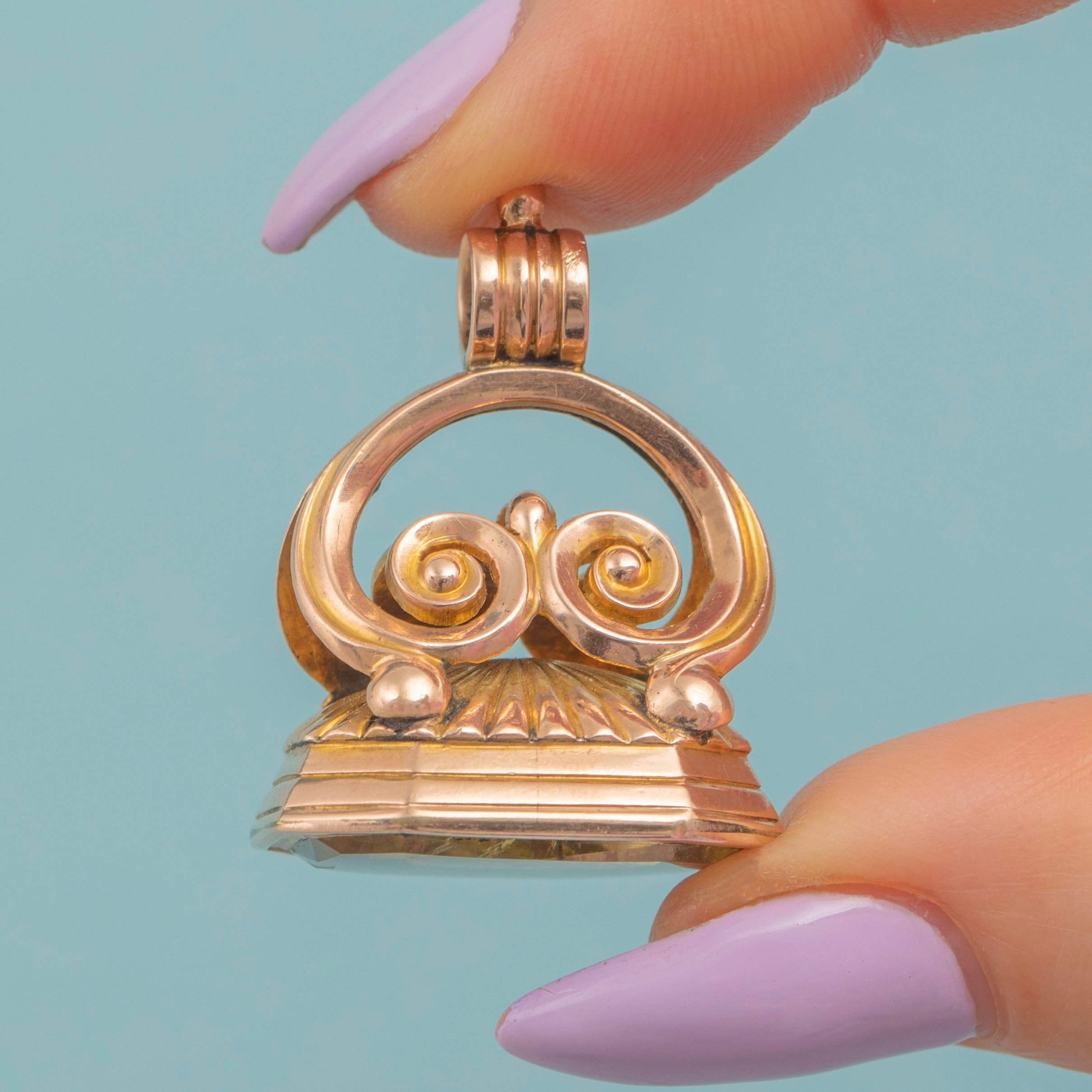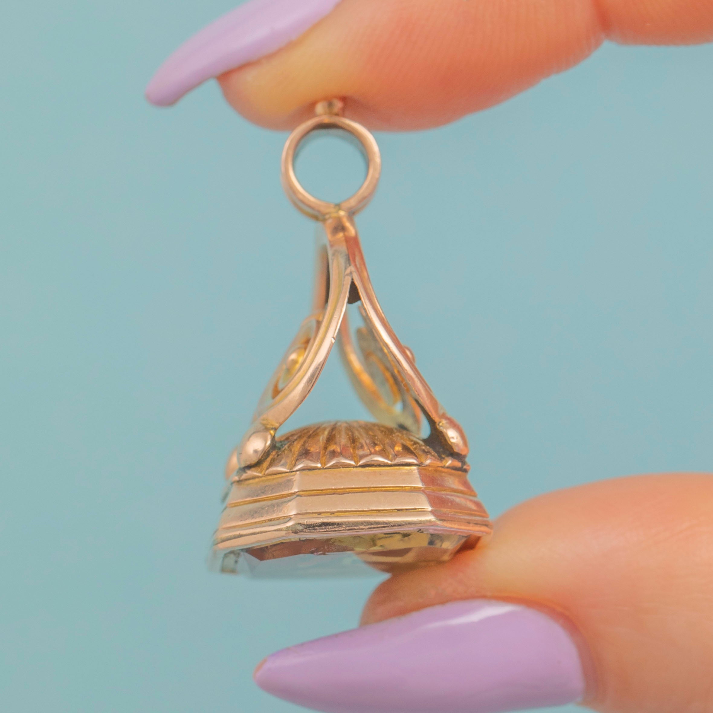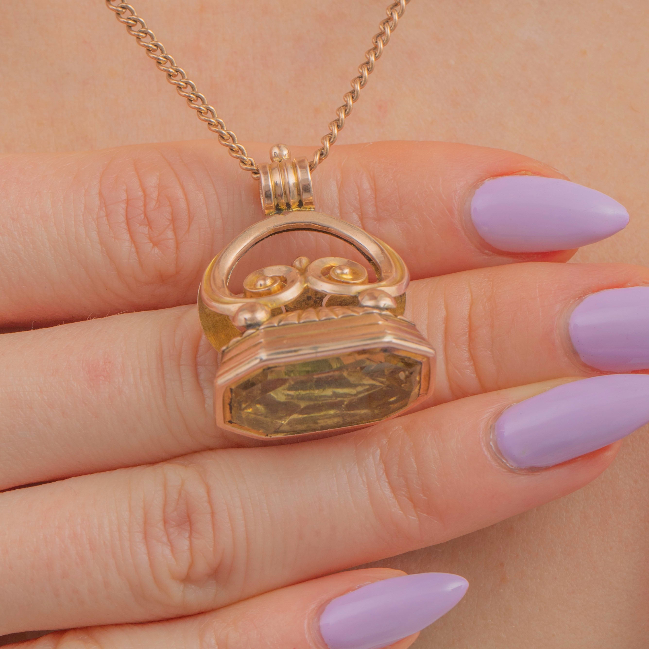 If you love ornate jewels, this Georgian 9ct Gold cased foiled Citrine fob pendant is a must for your collection! The body of the fob boasts exuberant swirling rococo details that sweep across its entirety and catch the light magnificently.