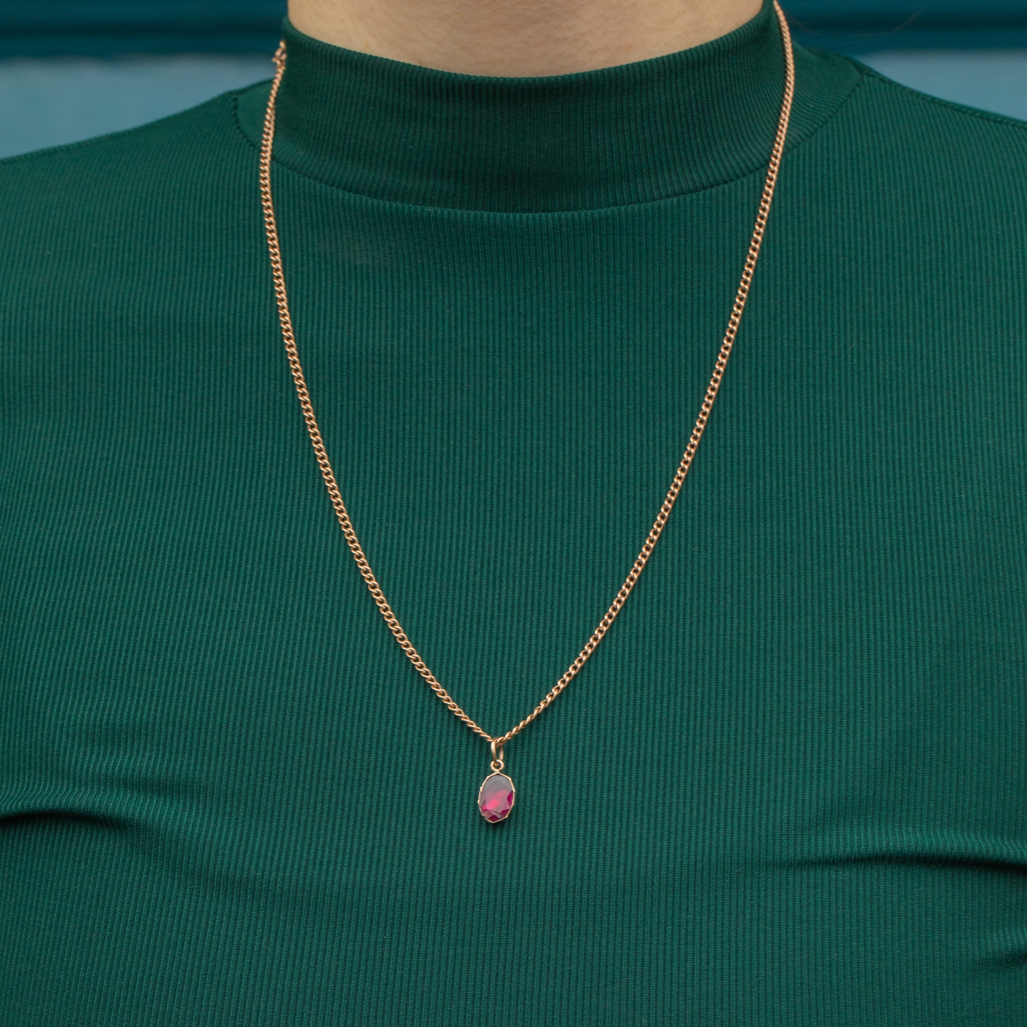 The 0.65ct Garnet has a striking crimson intensity, enhanced by its foiled back, and is displayed within a classically Georgian piecrust setting. She looks wonderful when hanging from a fine Gold chain, which can be worn on both casual and dressy occasions!