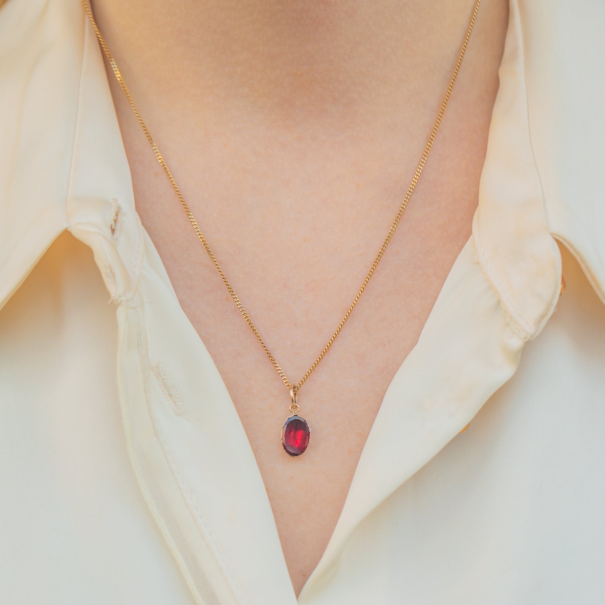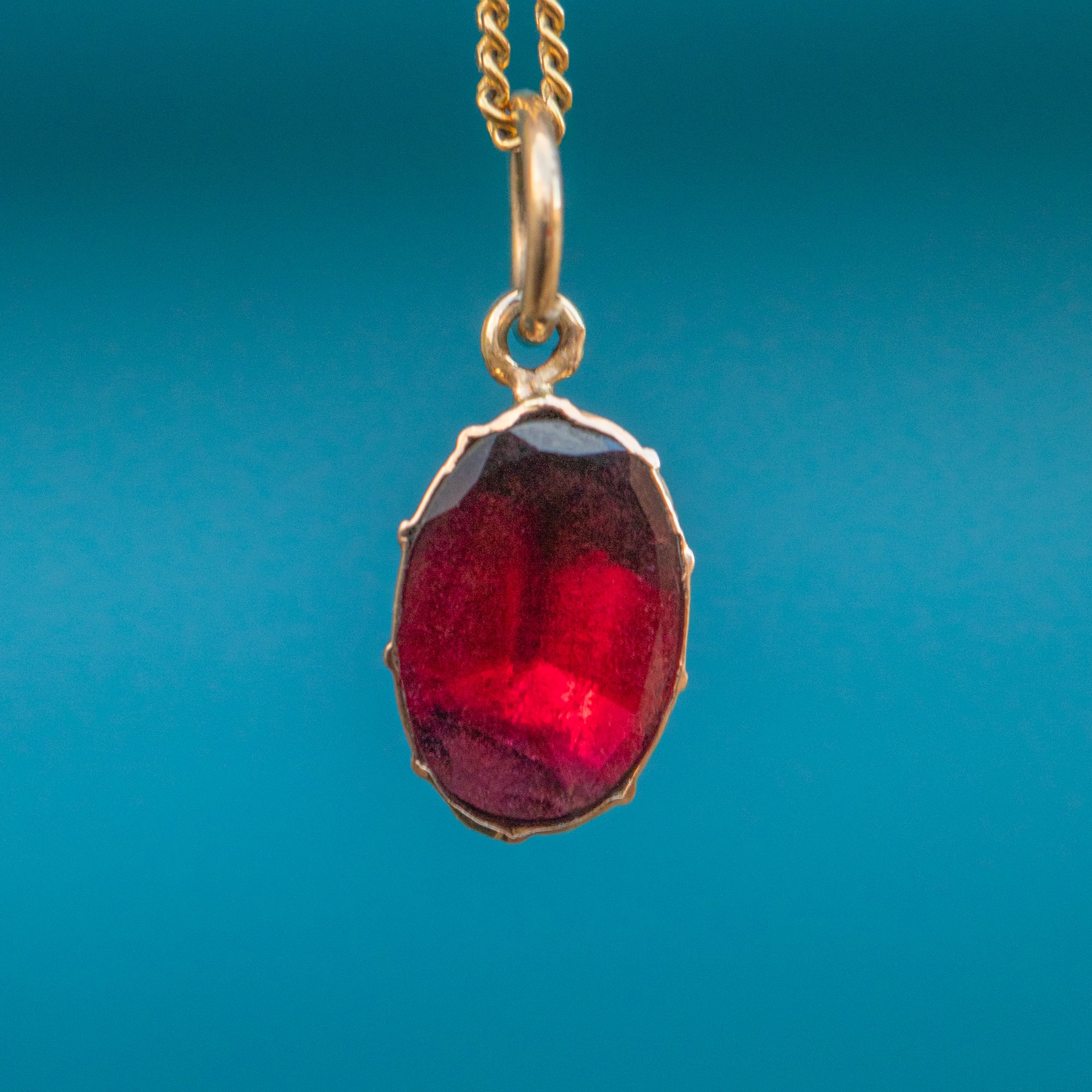 This juicy antique charm radiates gorgeous red wine hues, and sits beautifully against your neckline, with the 9ct Gold flat back owing itself to graceful wear. This beautiful Georgian Garnet is the perfect versatile piece to add to your collection.