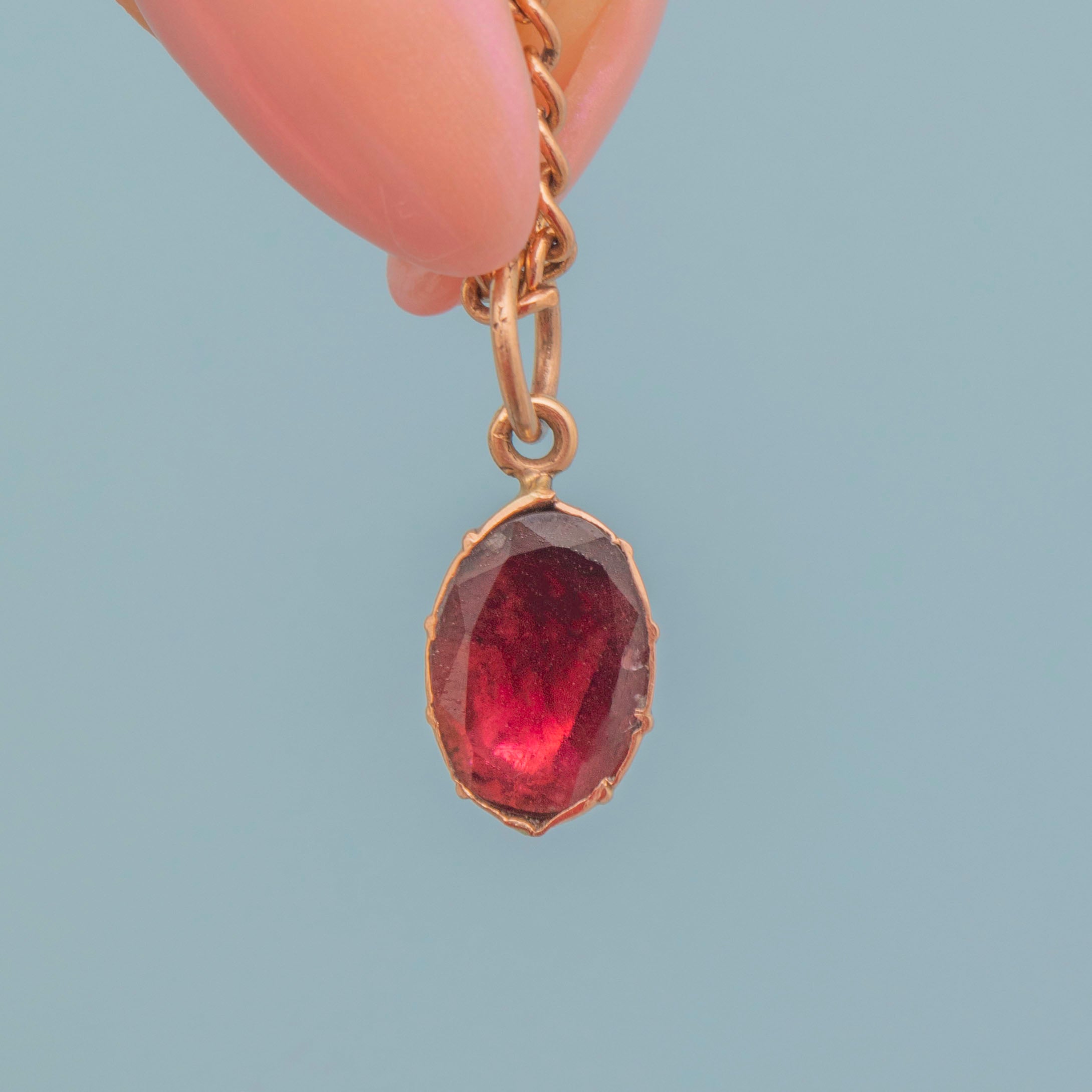 A deliciously juicy 9ct Gold Georgian flat-cut Garnet charm to liven up your collection! Her Garnet has a gorgeous merlot hue, revealing fabulous flashes of rosy tints under the light.