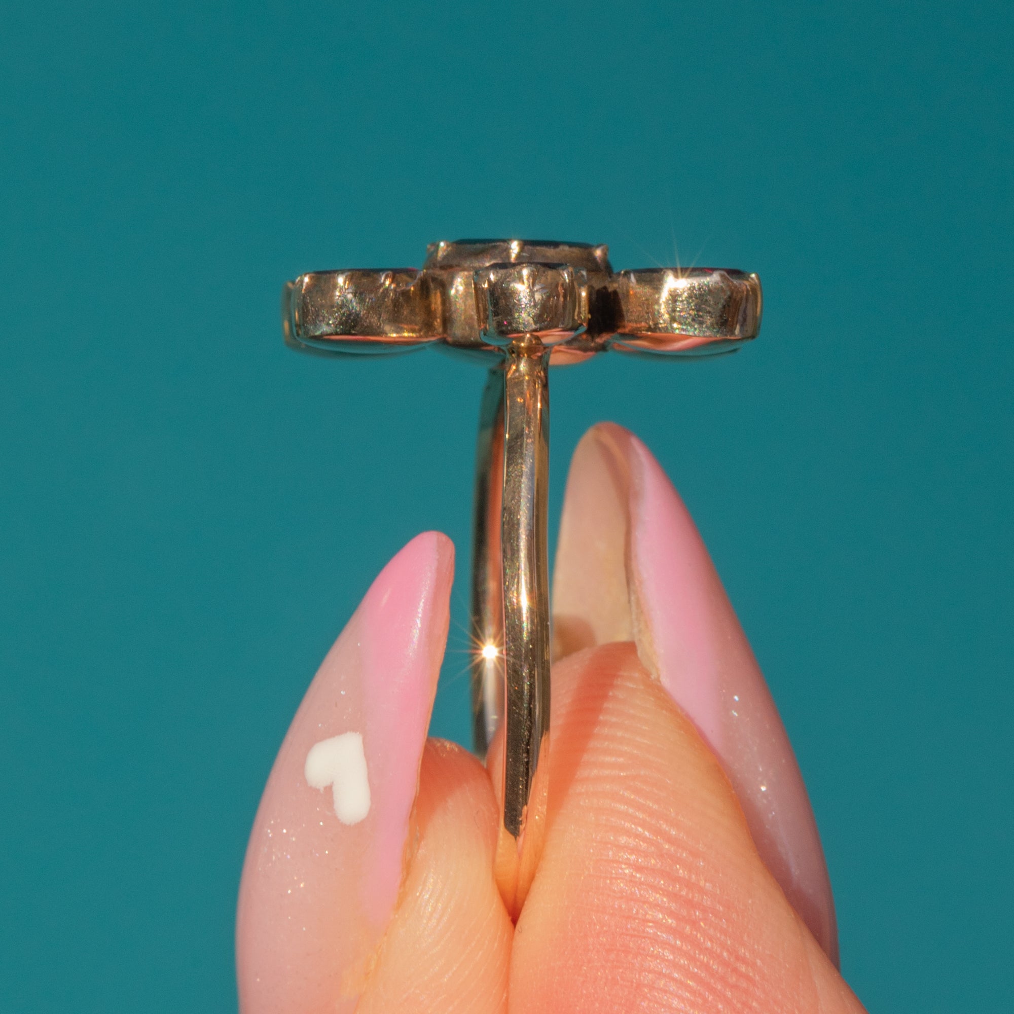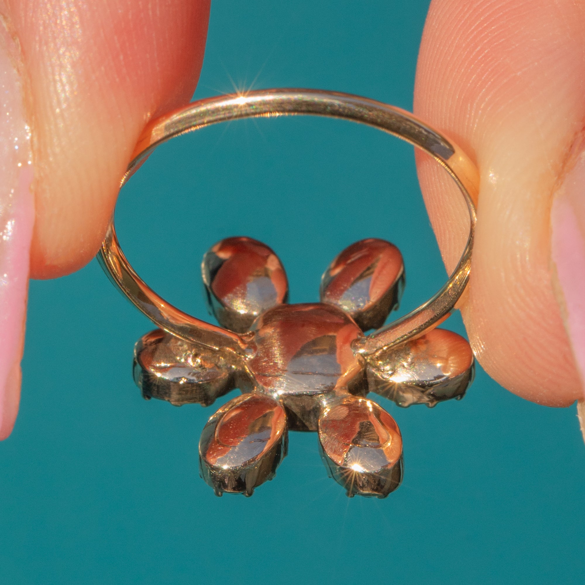 Georgian 9ct Gold Flat-Cut Garnet Flower Ring