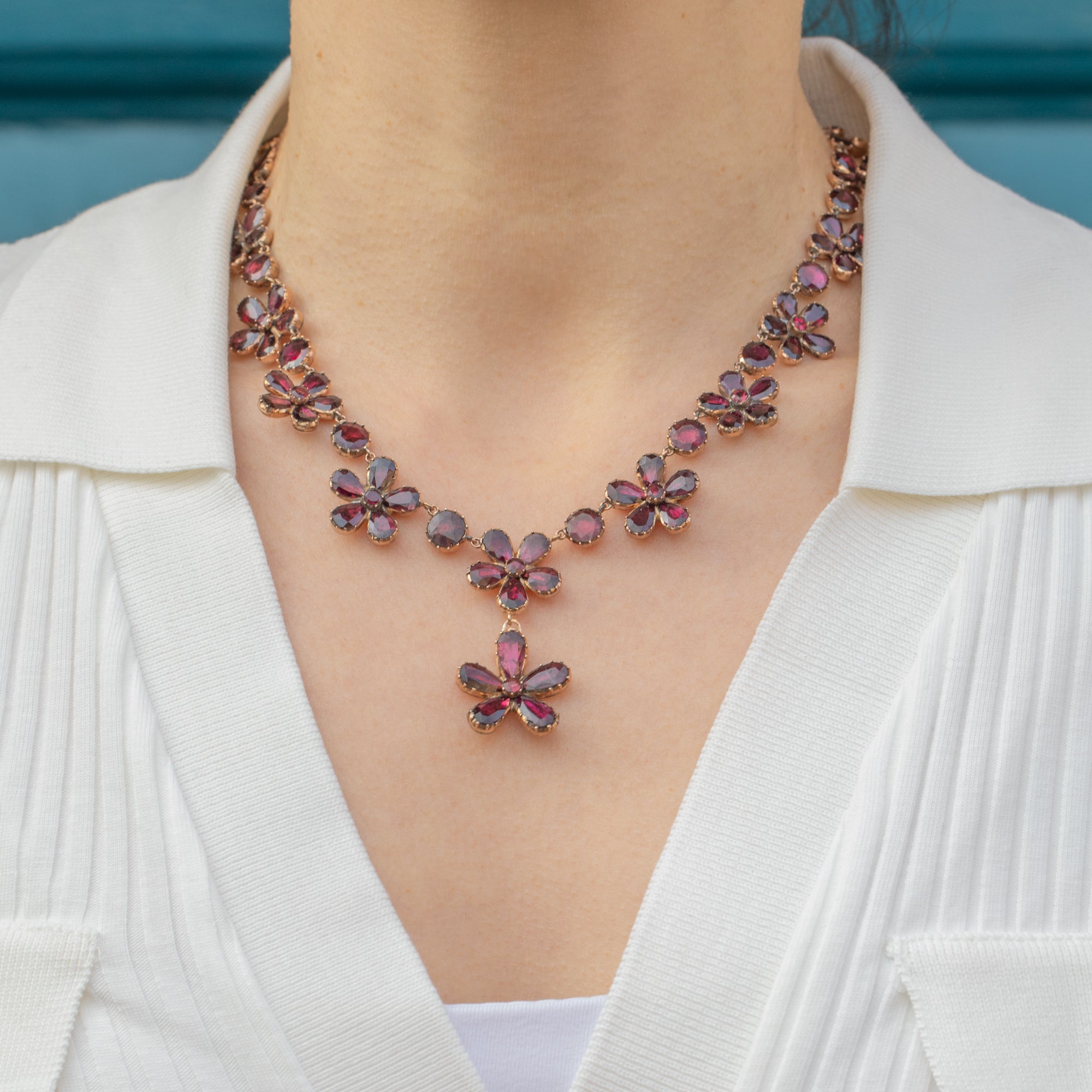 Georgian 9ct Gold Flat-Cut Garnet Pansy Necklace, 19.60ct