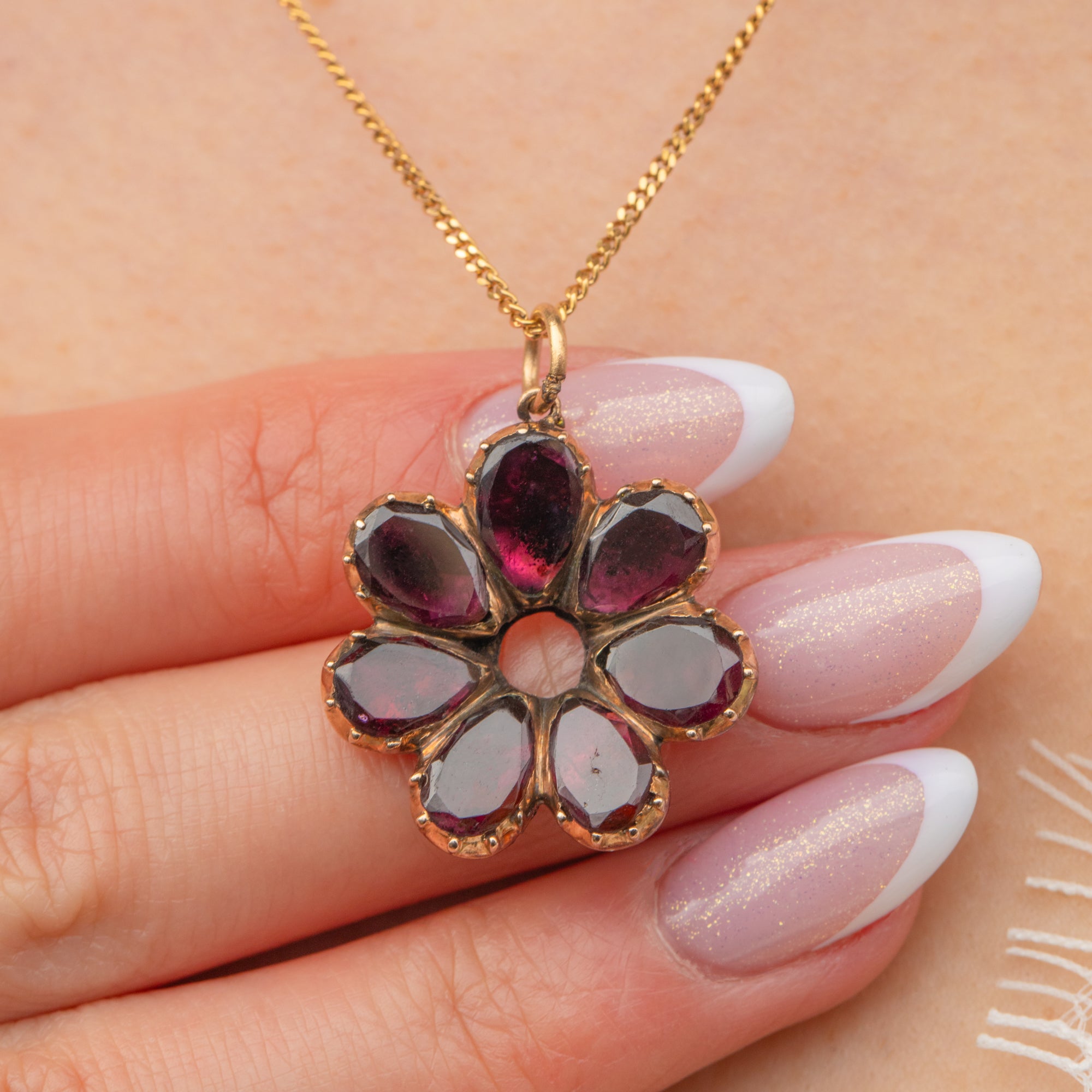 Georgian 9ct Gold Garnet Flower Pendant, 3.30ct.