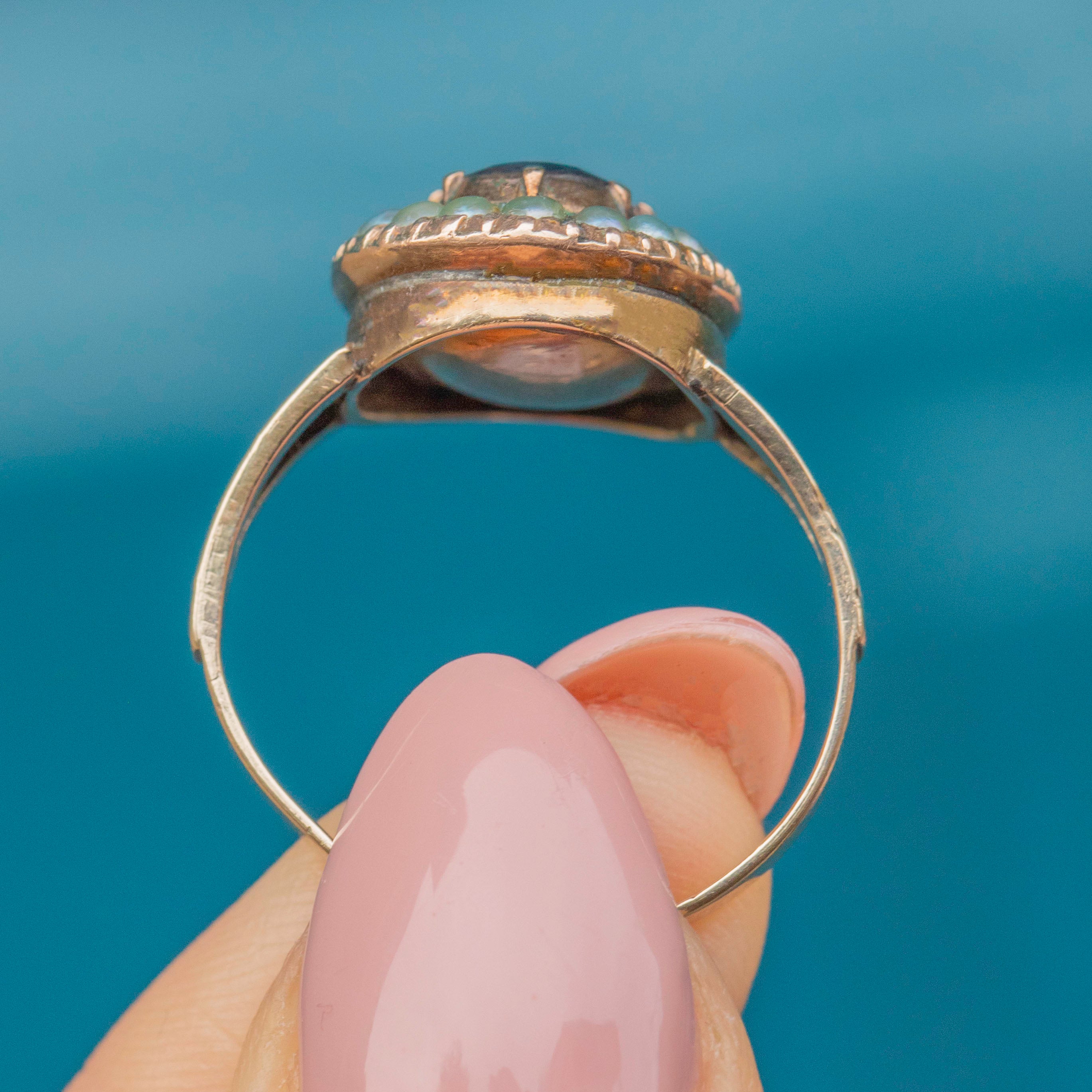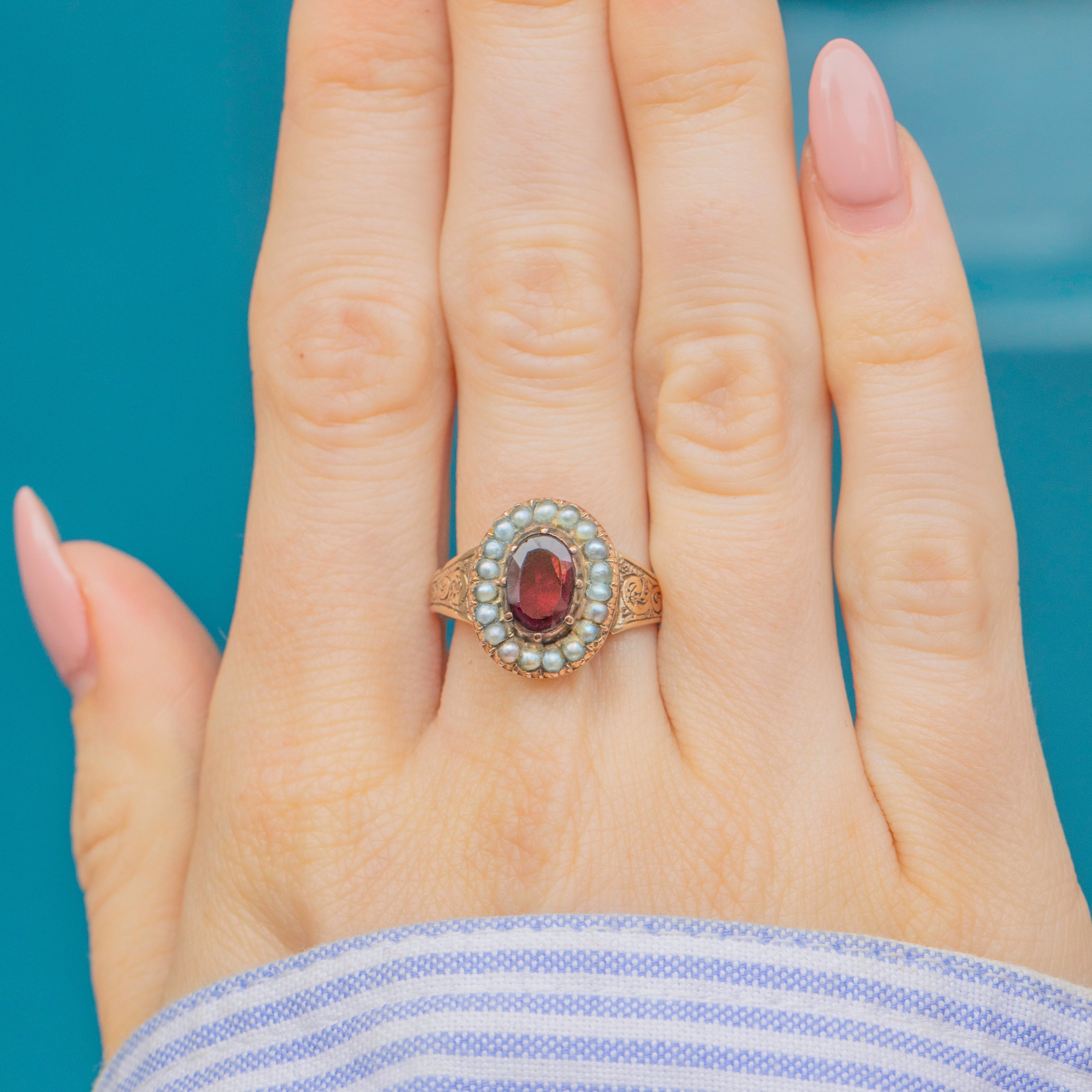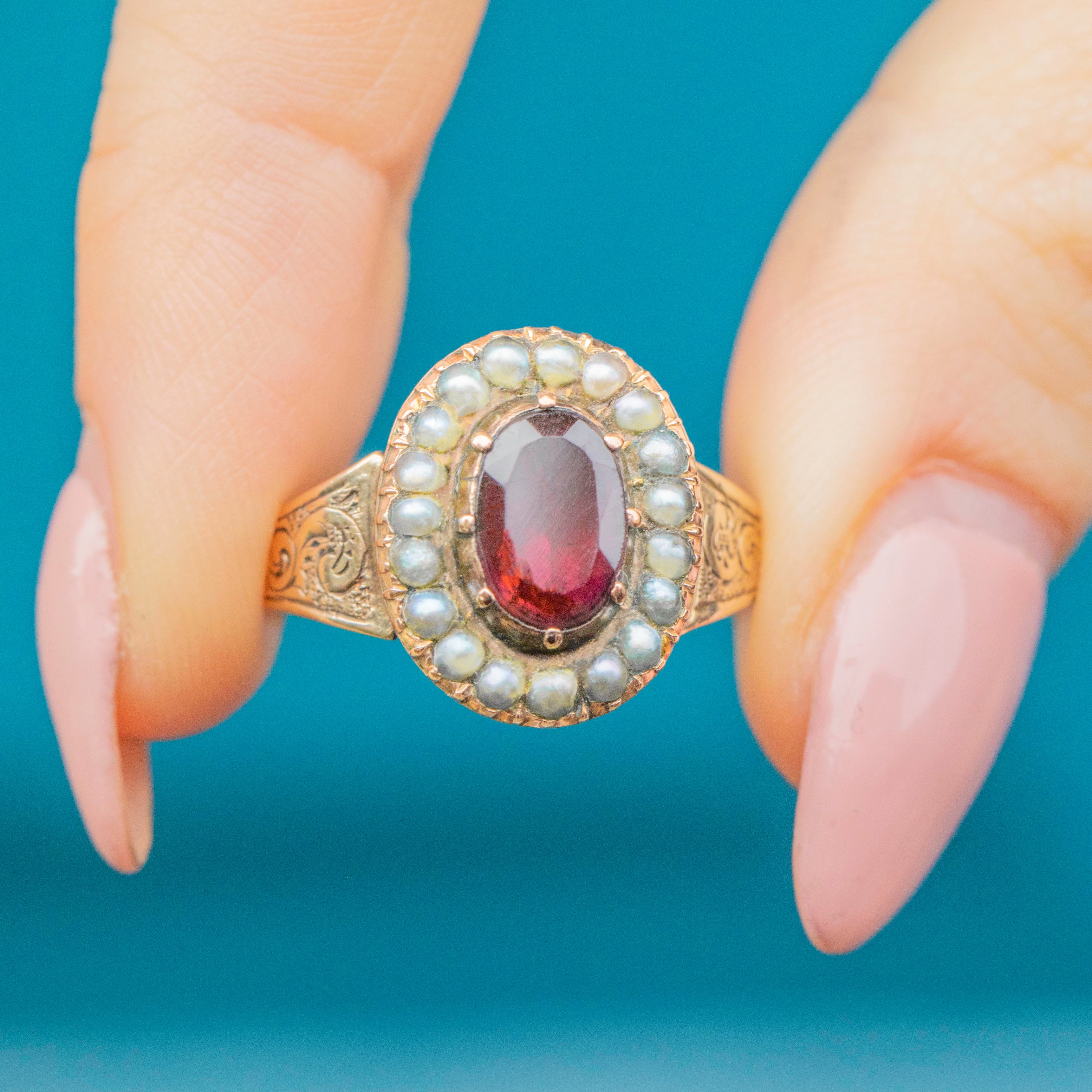 We adore this Georgian 9ct Gold Garnet Pearl cluster ring!
