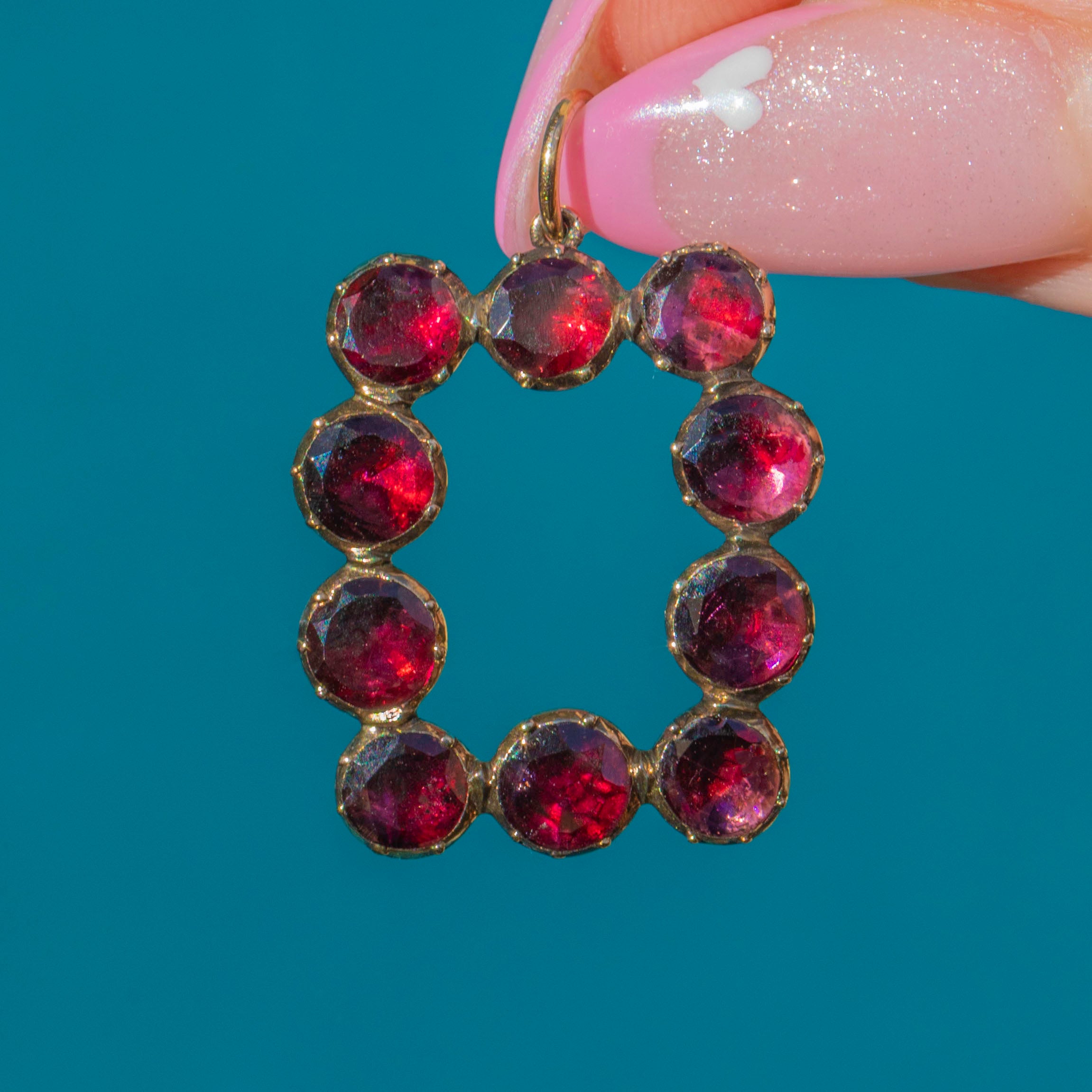 Georgian 9ct Gold Square Frame Garnet Pendant