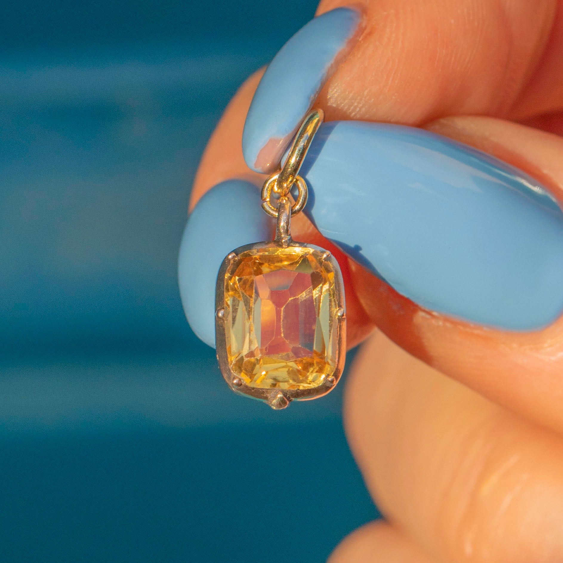 VERY GOOD. This Georgian 9ct Gold Topaz charm is in very good condition, with only minimal signs of wear consistent with age. The Topaz gemstone remains vibrant and secure in its setting, and the Gold has retained its rich hue. It remains a wonderful example of Georgian craftsmanship, ready to be enjoyed for years to come.
