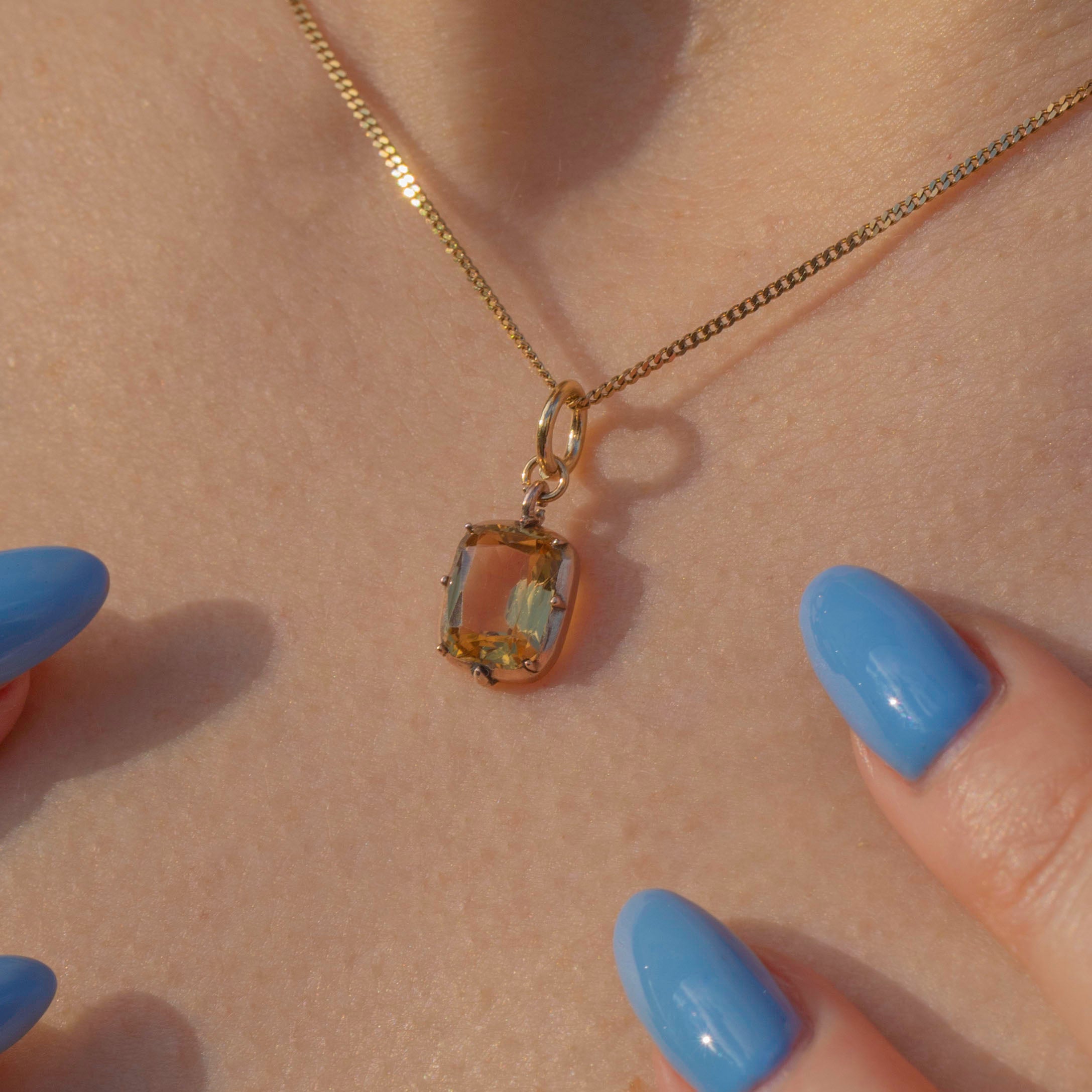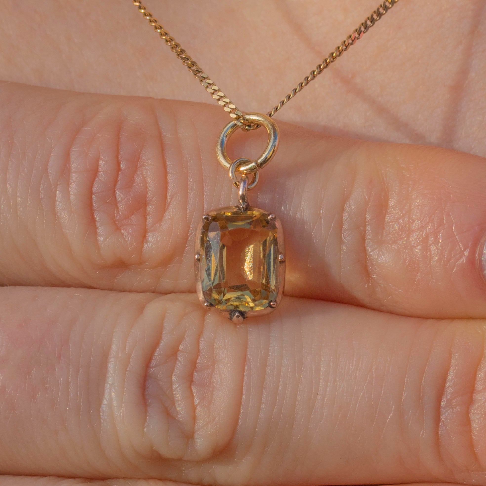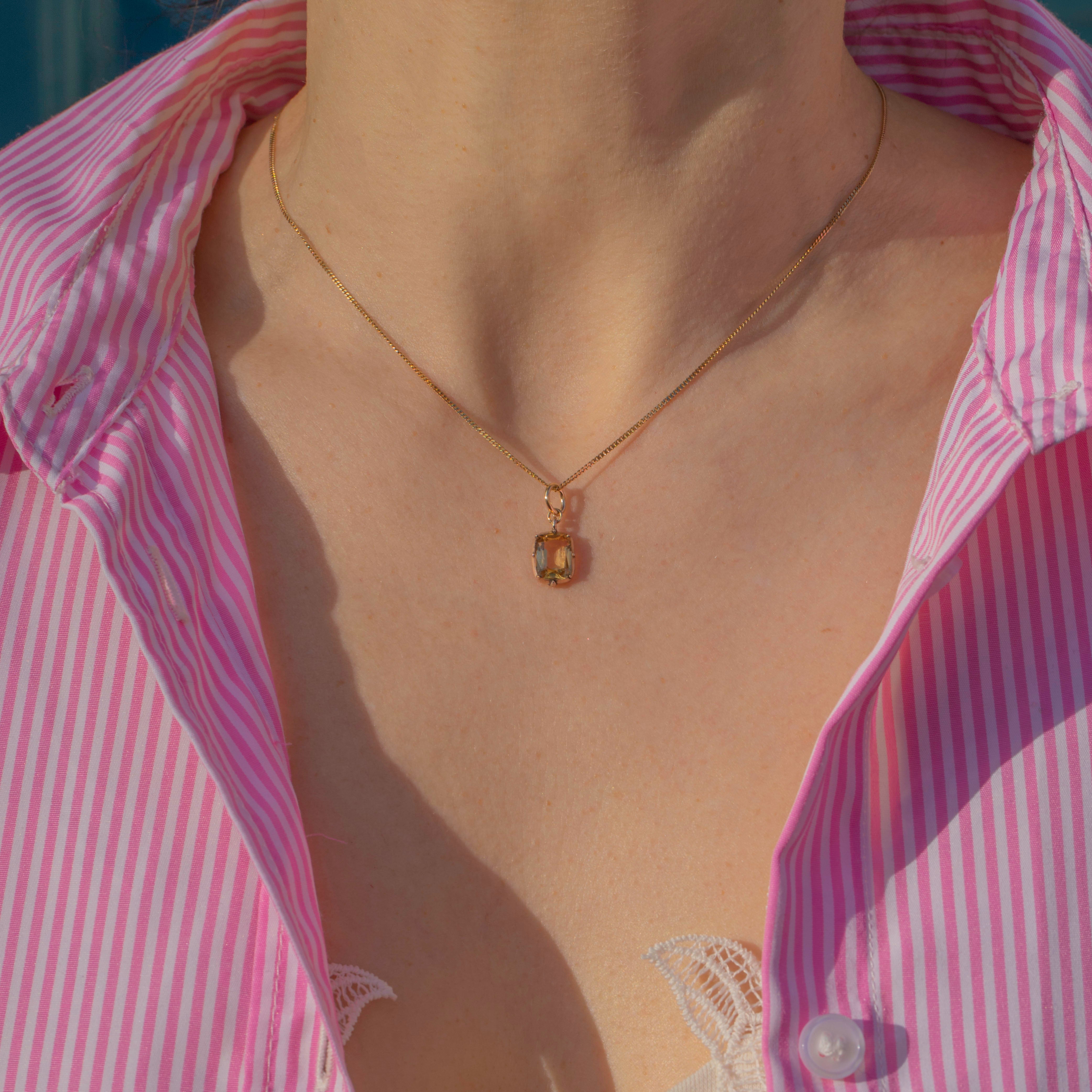 This Georgian 9ct Gold Golden Topaz charm will make a unique addition to your collection! The 1.30ct Topaz boasts gorgeous sunny hues and is set within a classically Georgian 9ct Gold piecrust setting.