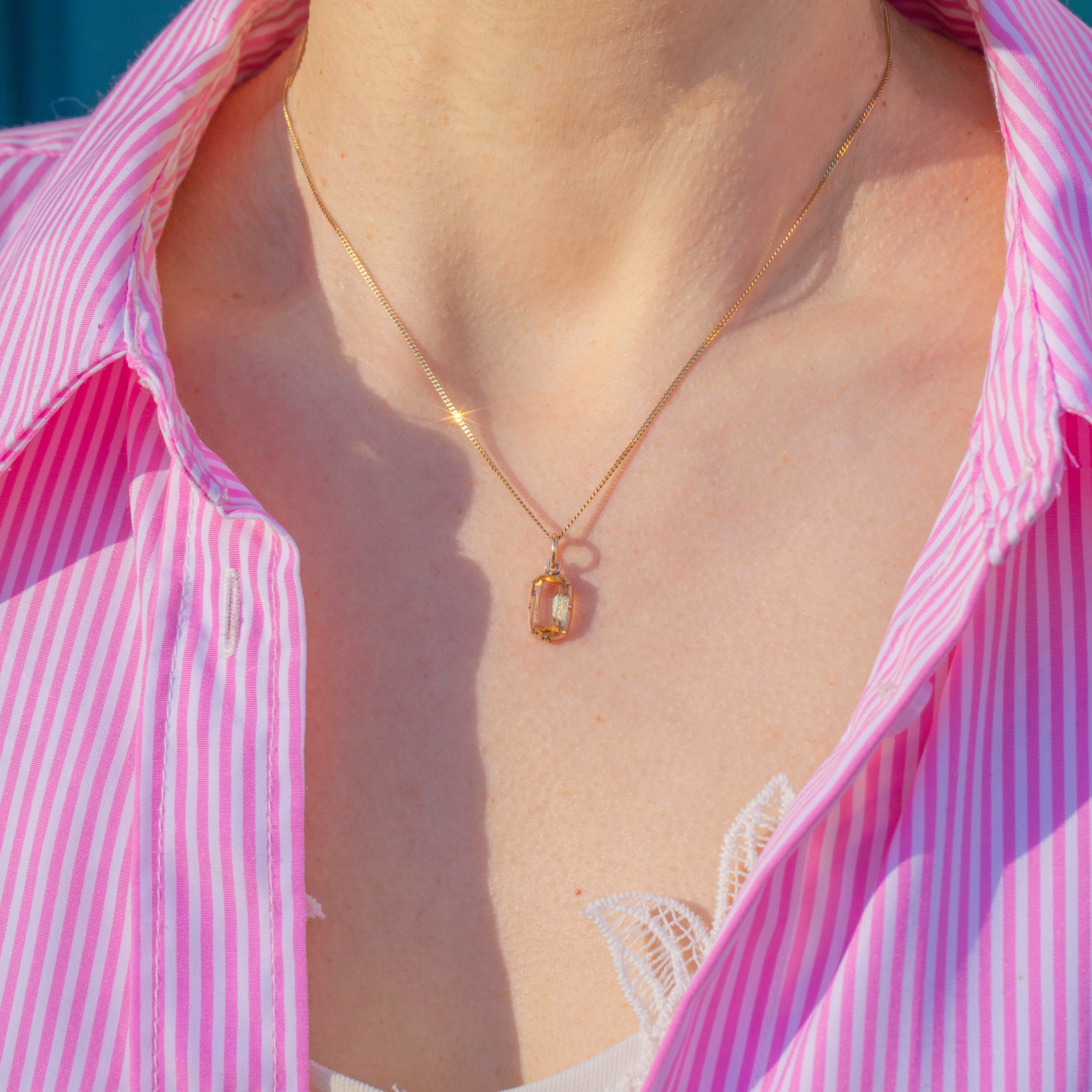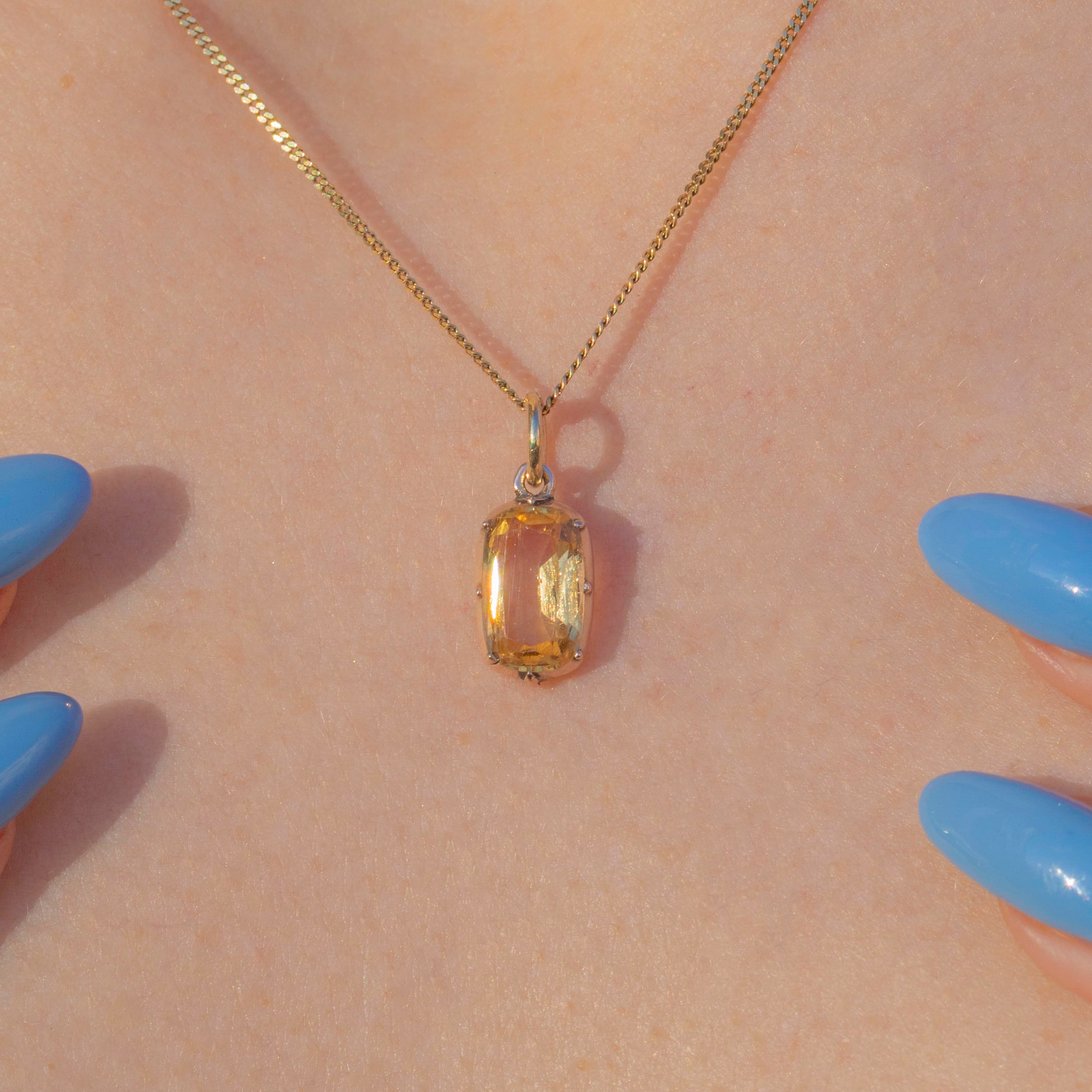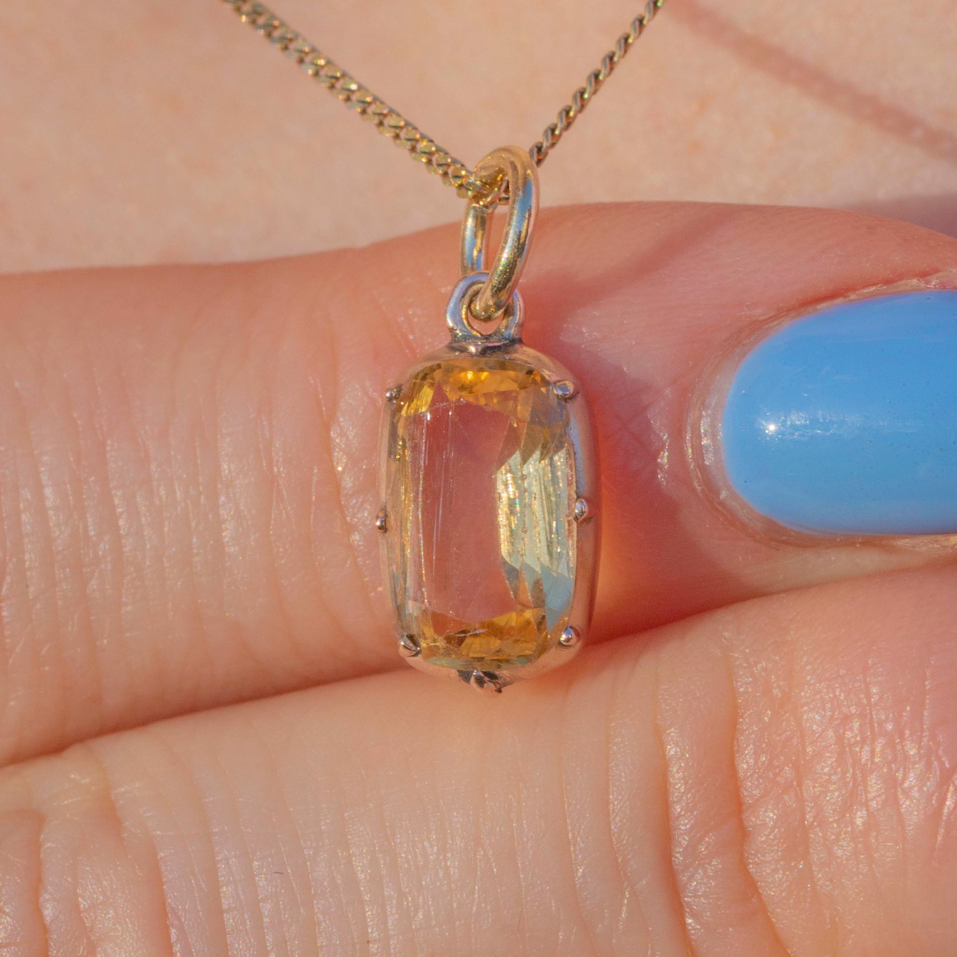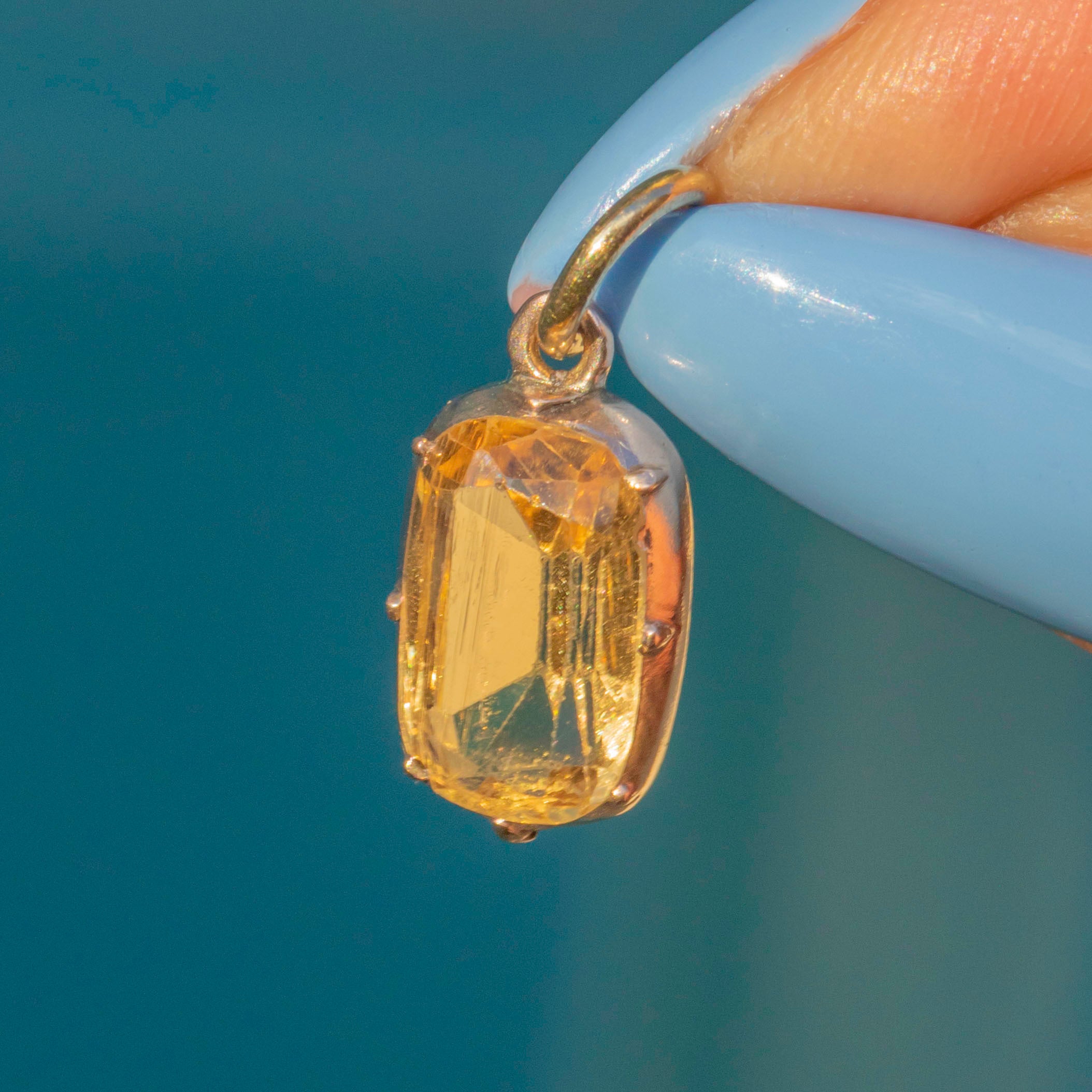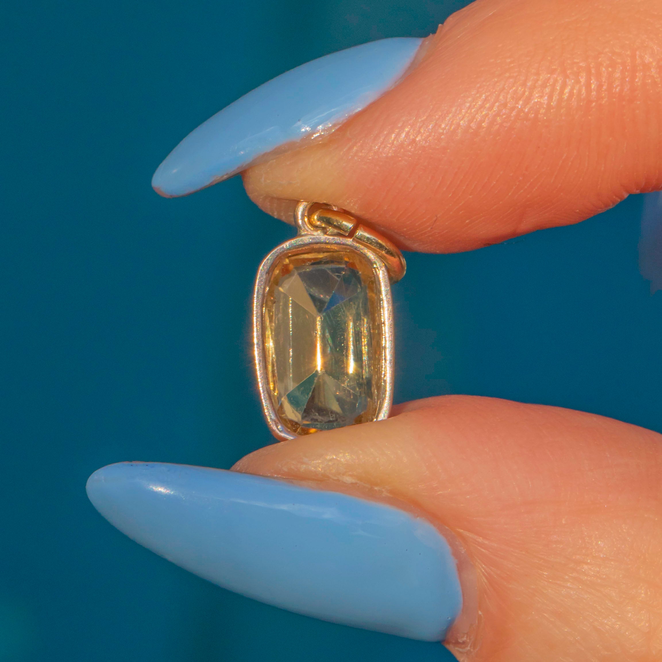 This Georgian 9ct Gold Golden Topaz charm is perfect for adding a sparkling accent to your décolletage! The 4.25ct Topaz displays light golden hues, with crisp cut facets that shimmer under the light.