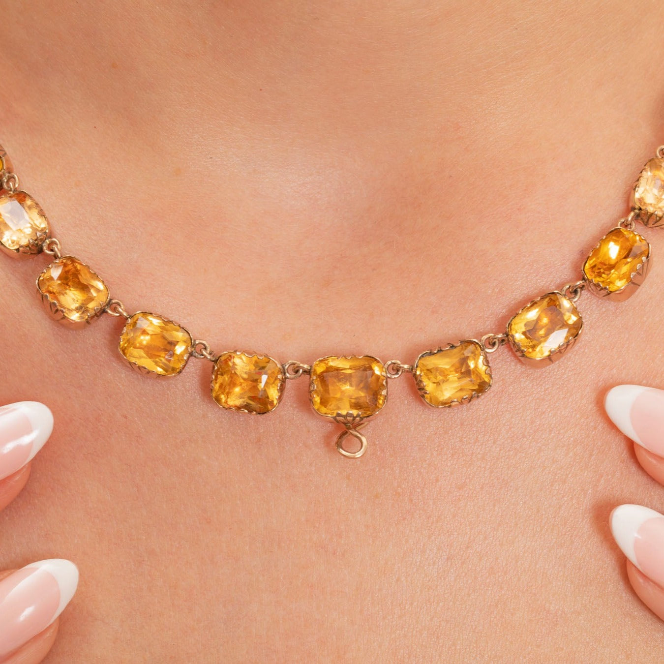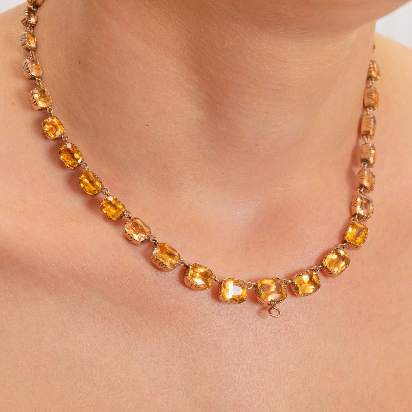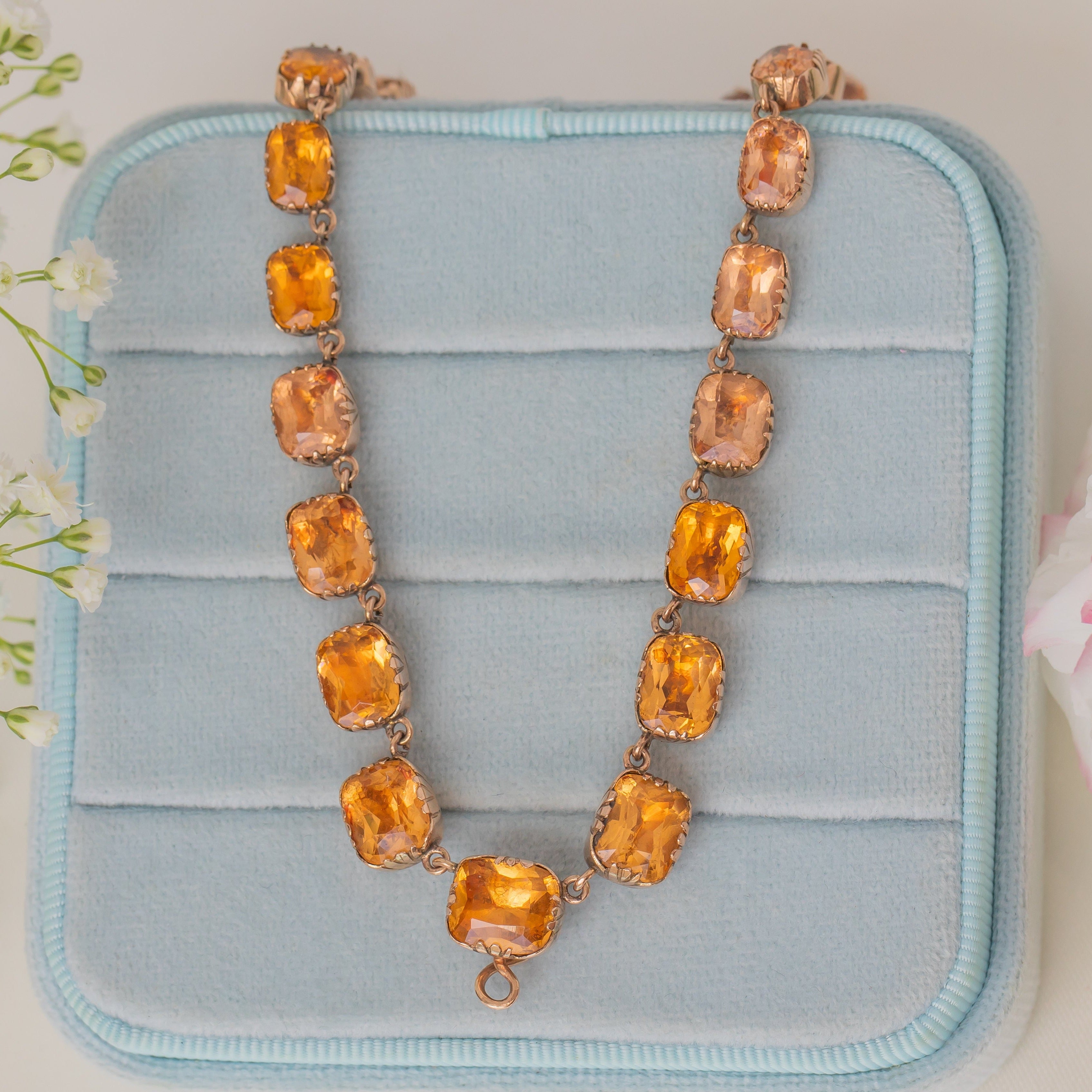 ジョージアン 9ct ゴールド インペリアルトパーズ ペースト リヴィエール ネックレス