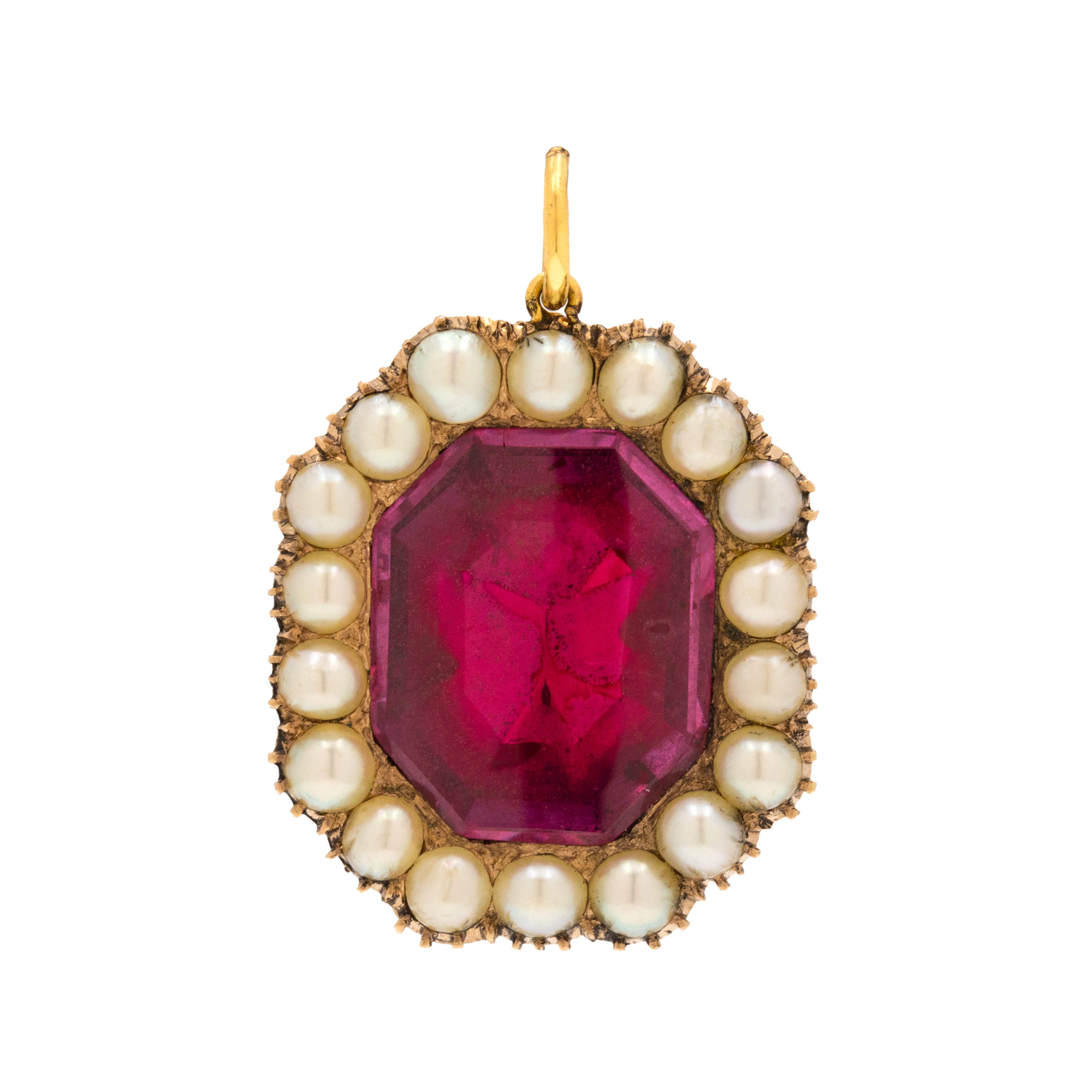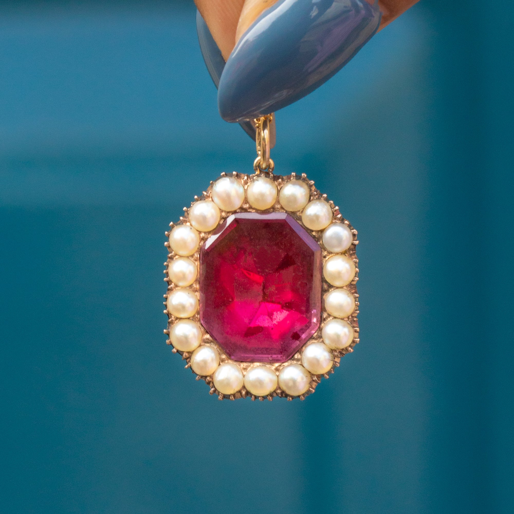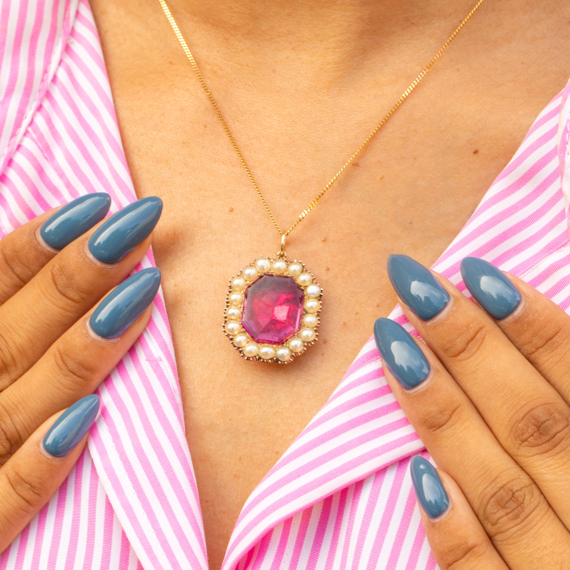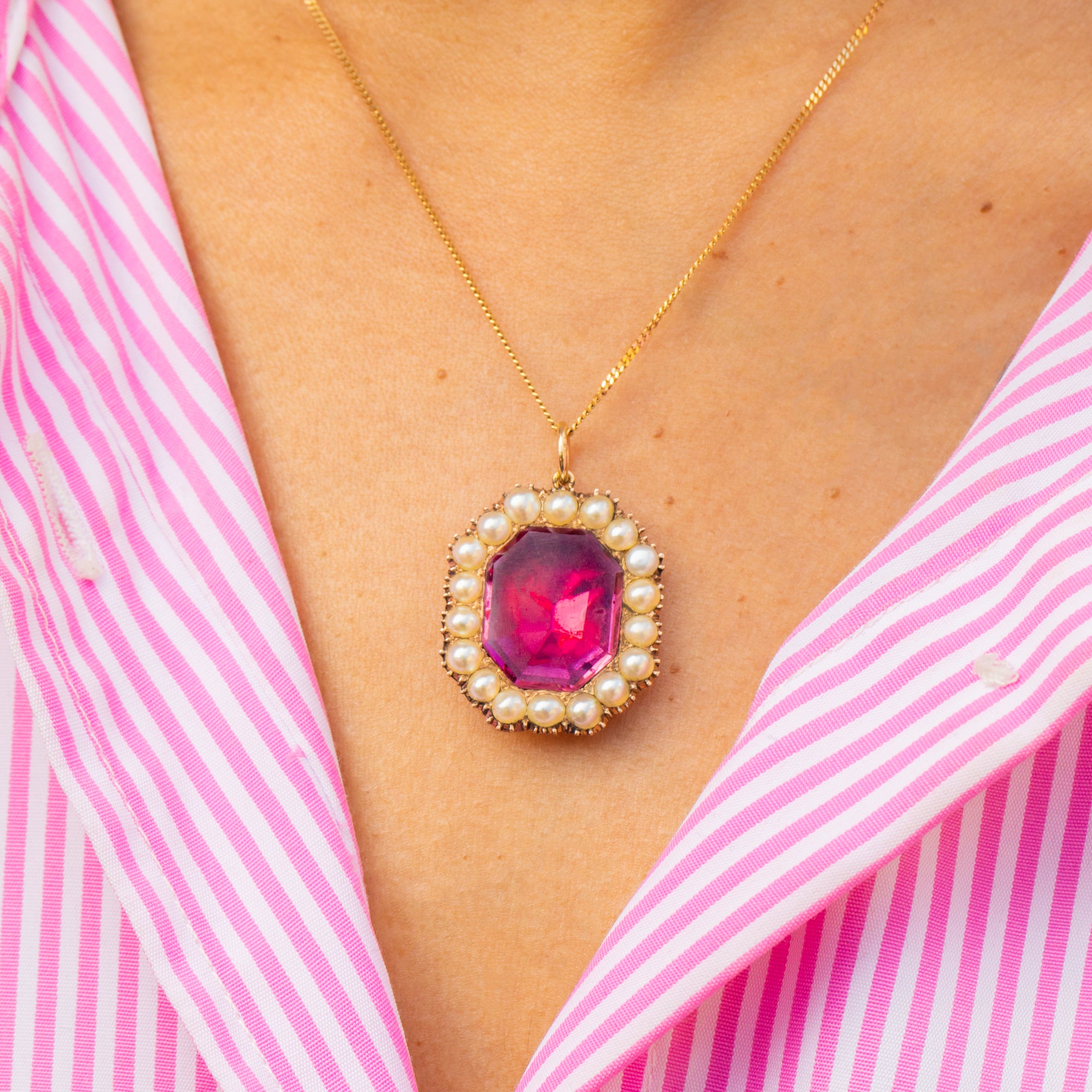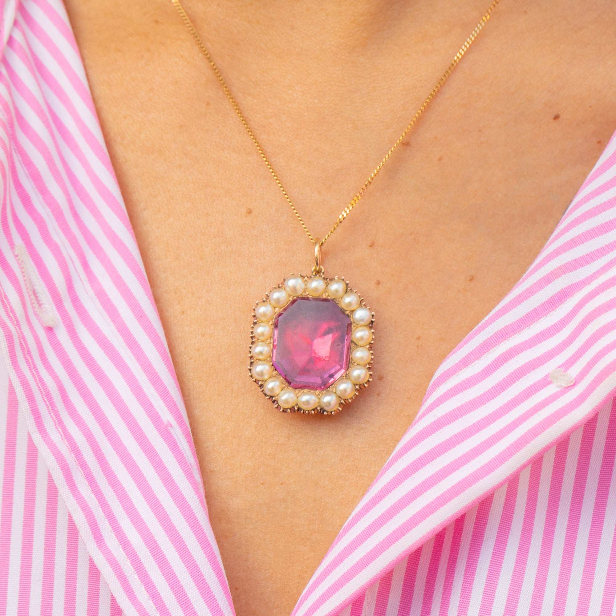ジョージアン 9ct ゴールド ピンクトパーズ パール クラスター ペンダント