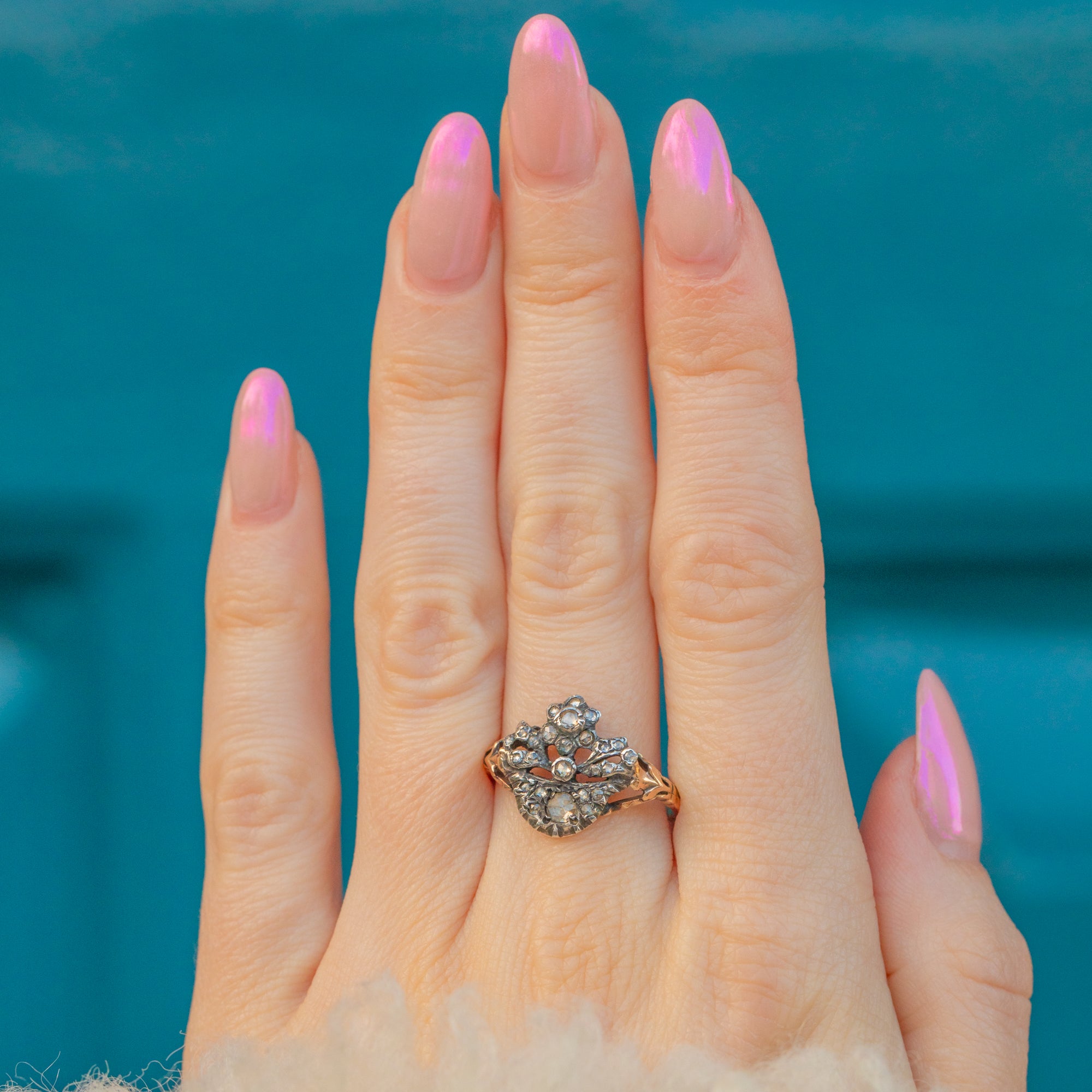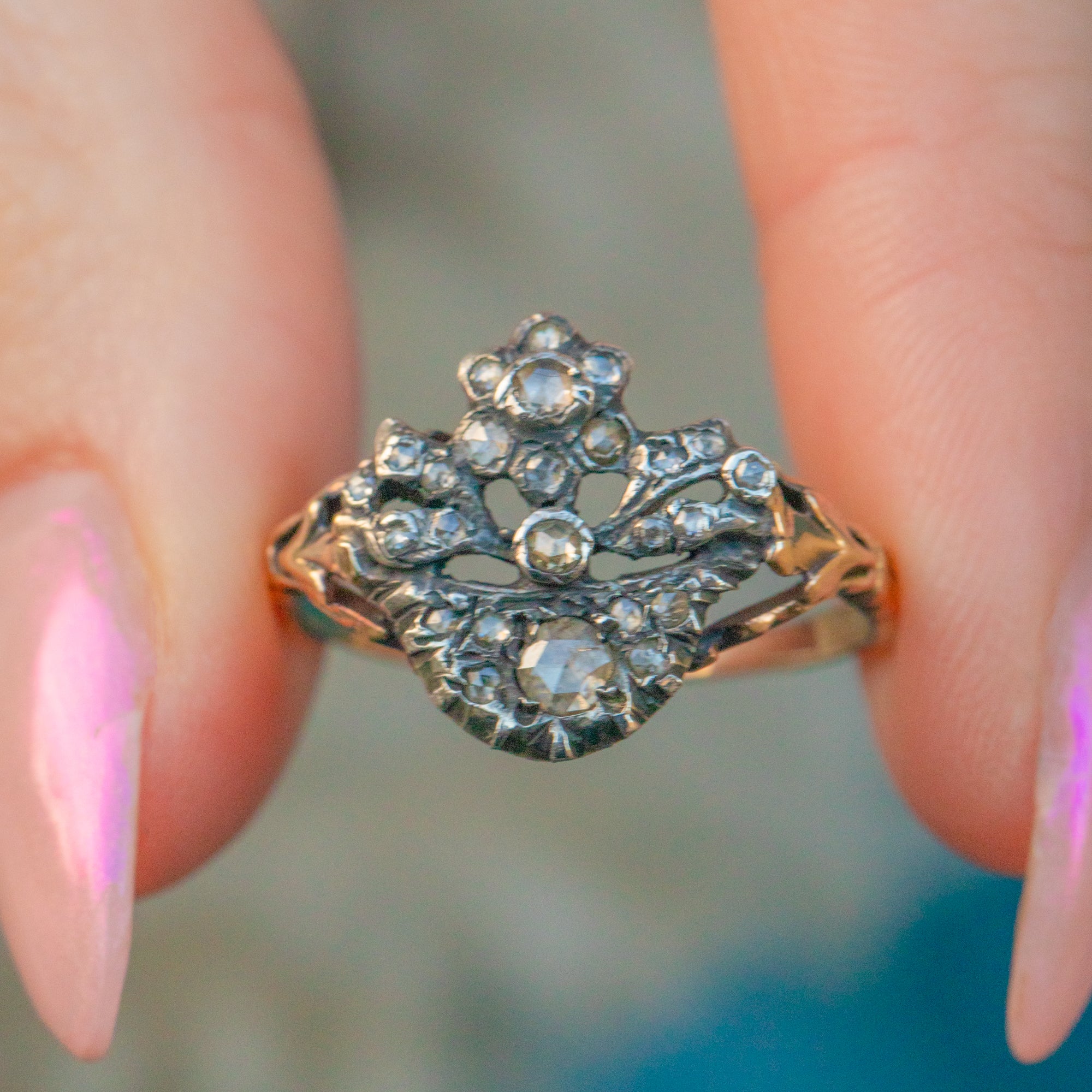 ジョージアン 15ct ゴールド&シルバー ローズカットダイヤモンド ジャルディネッティリング