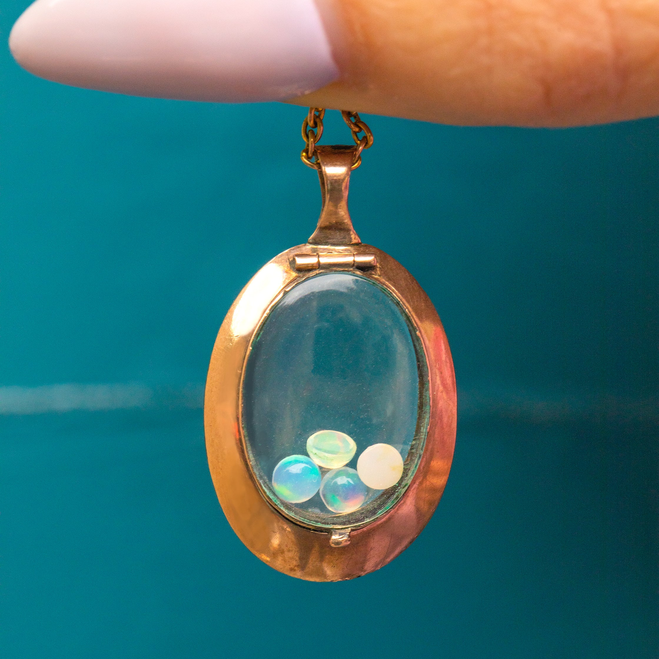 Adorn yourself with early 19th century glam with this Georgian 9ct Gold shaker locket! Blushed 9ct Gold forms the curvaceous form of this antique locket holding the windows that reveal her loose Opals firmly in place.