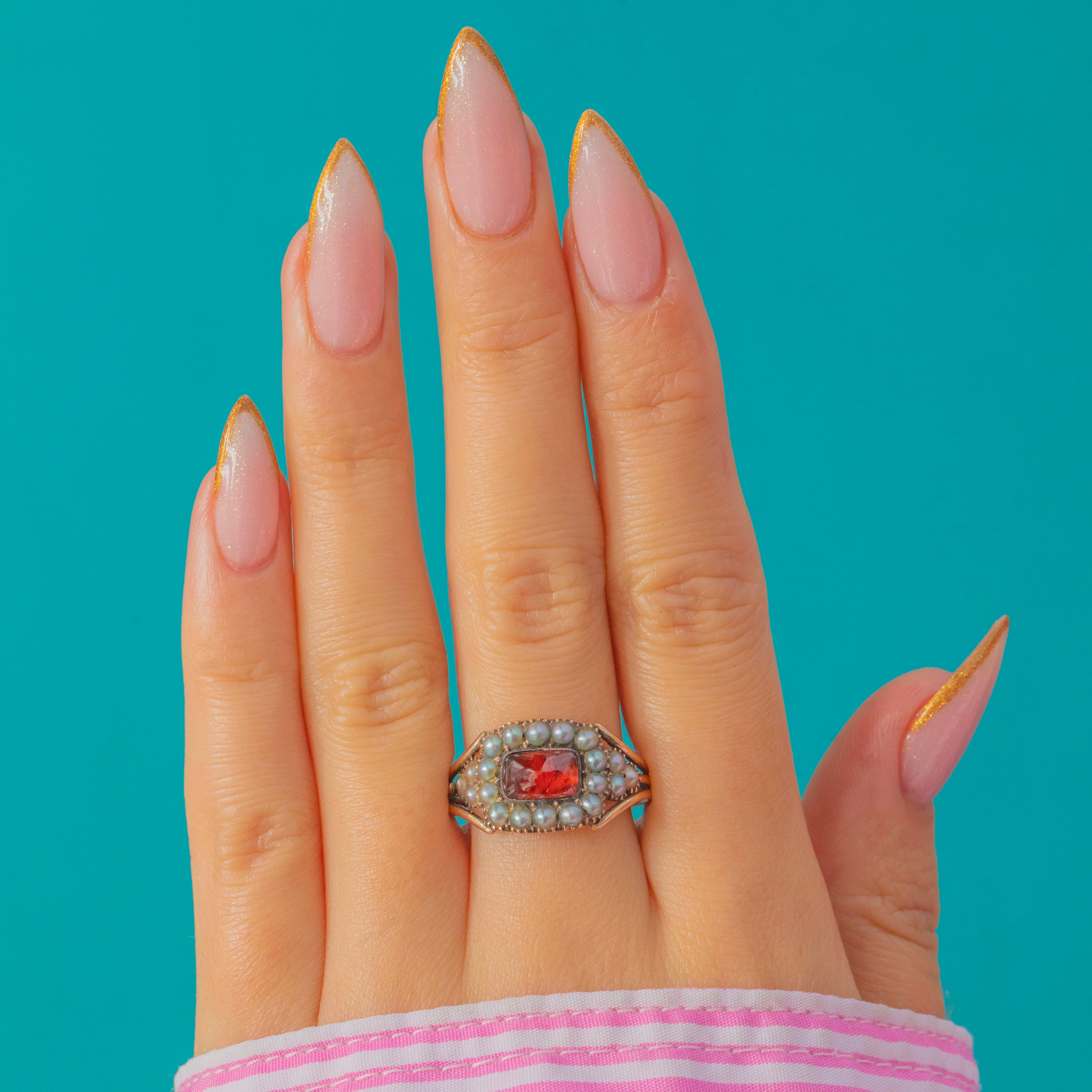 Georgian 9ct Gold Sugarloaf Garnet Pearl Ring