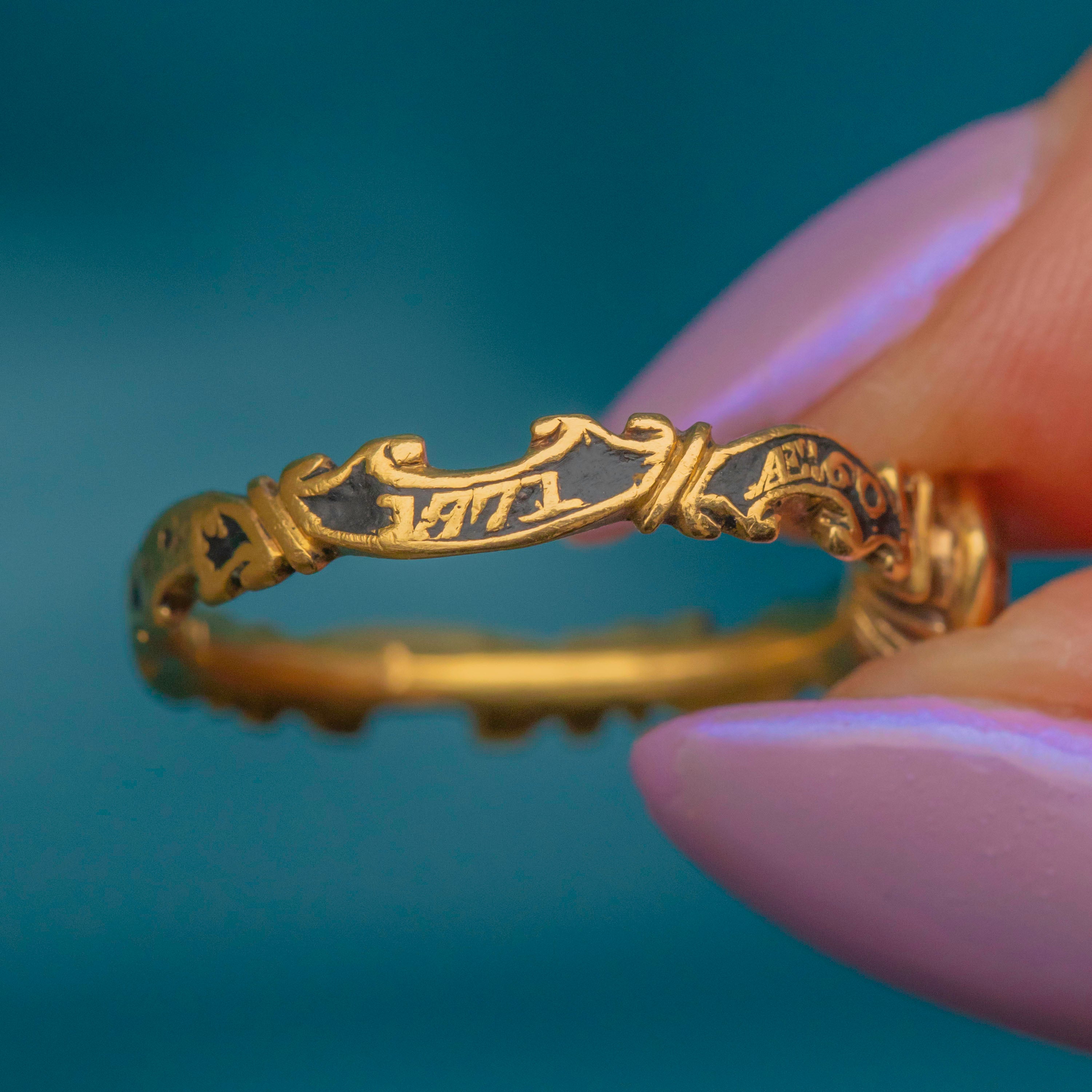 We are incredibly excited to present this Georgian 18ct Gold Black Enamel mourning ring, dated 1771!