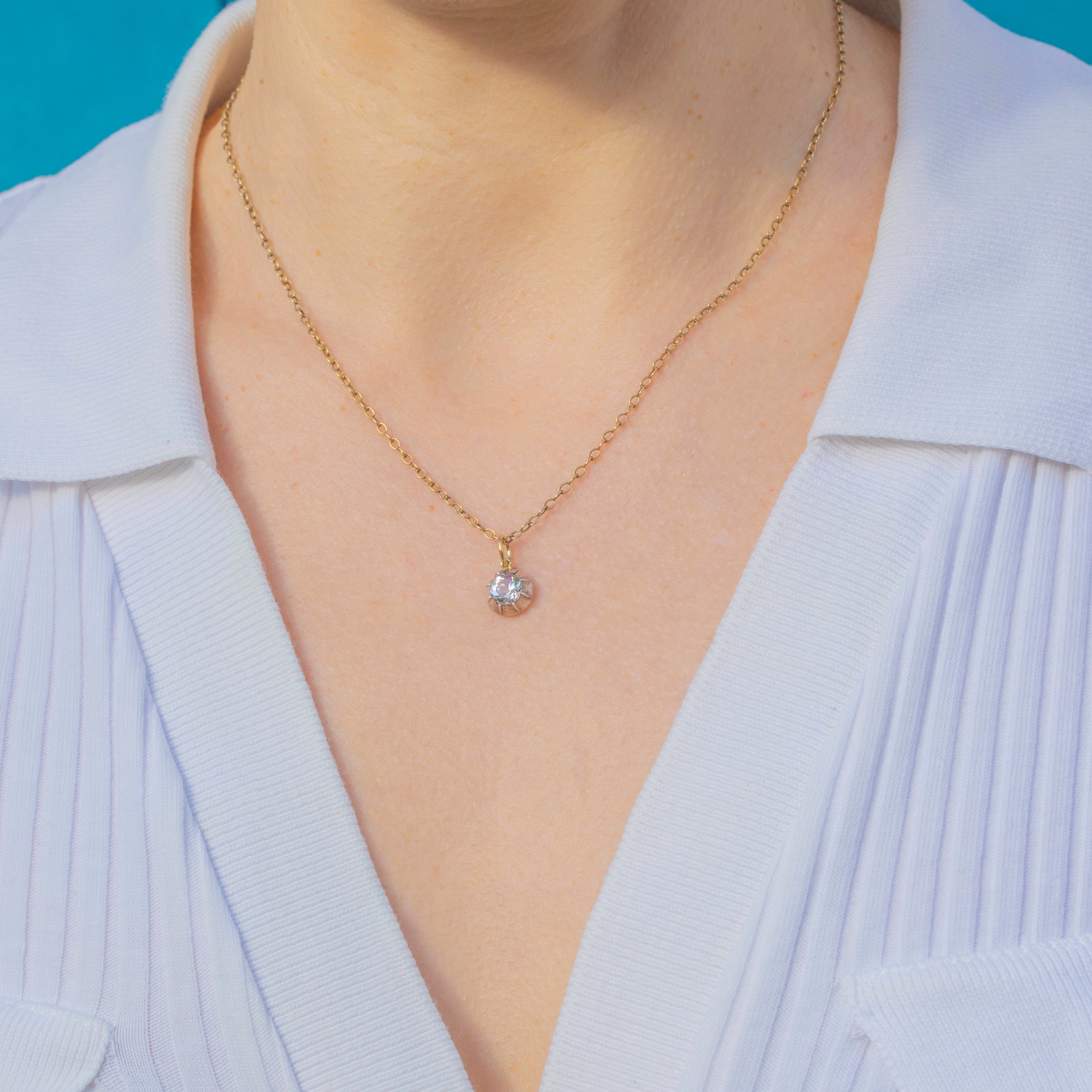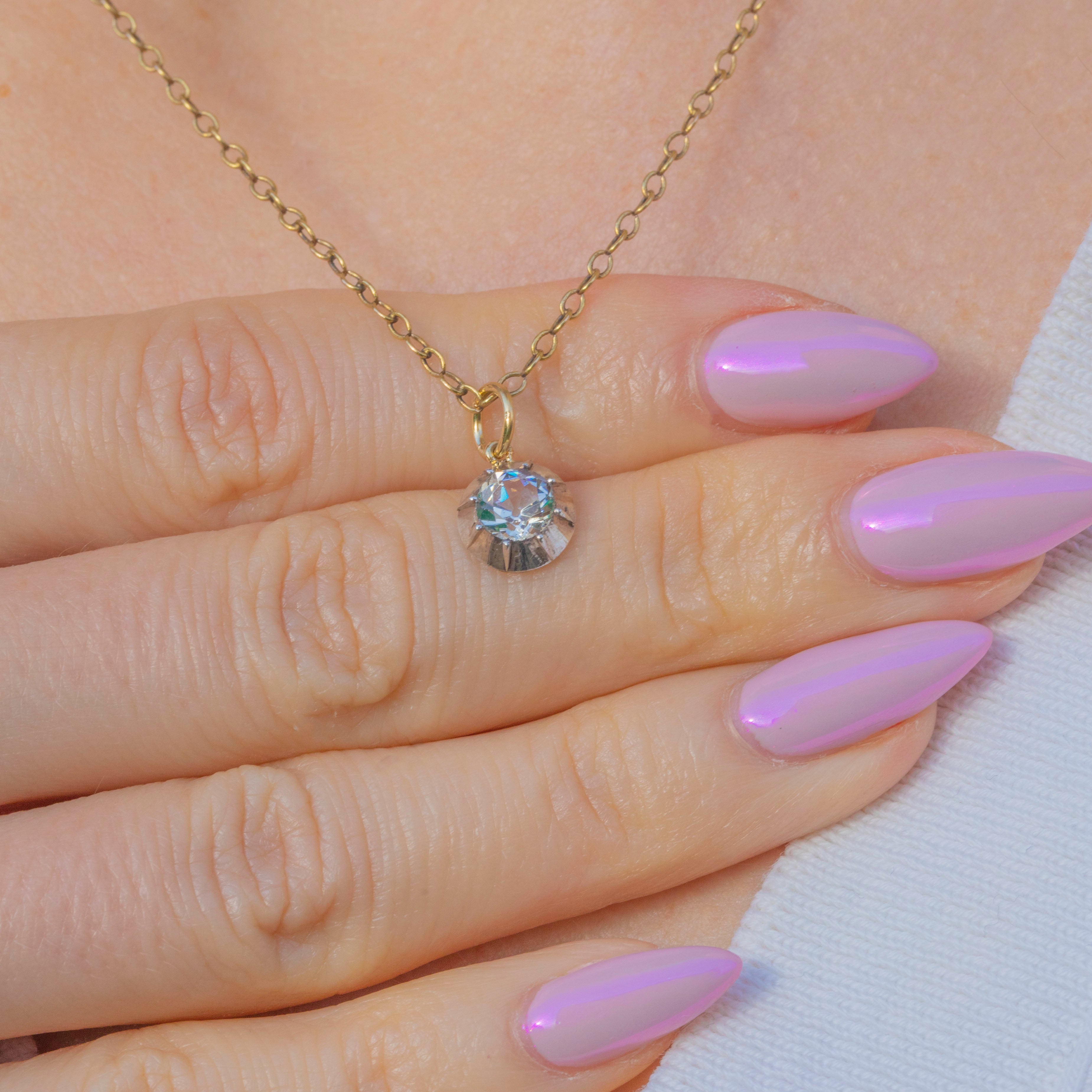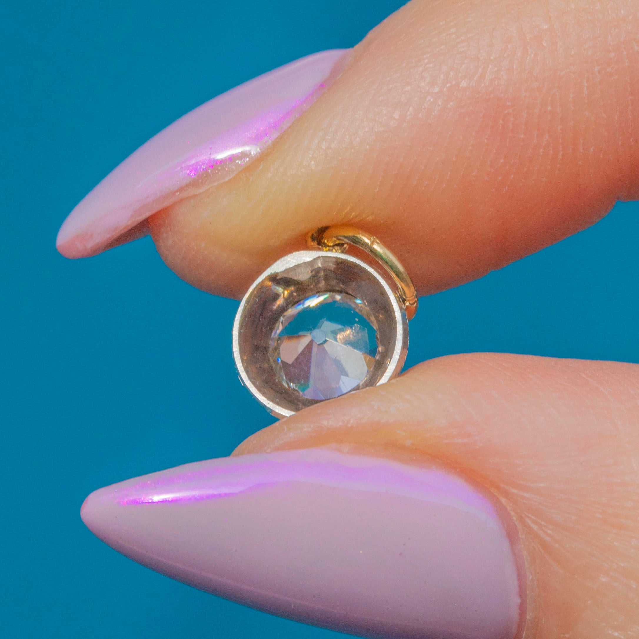 This charming Georgian era piece is set with a sparkling white Paste stone, capturing the antique allure of the late 18th to early 19th century. Though small in scale, the stone shines brightly, making it a perfect accent charm for a bracelet or to layer as part of a pendant stack.