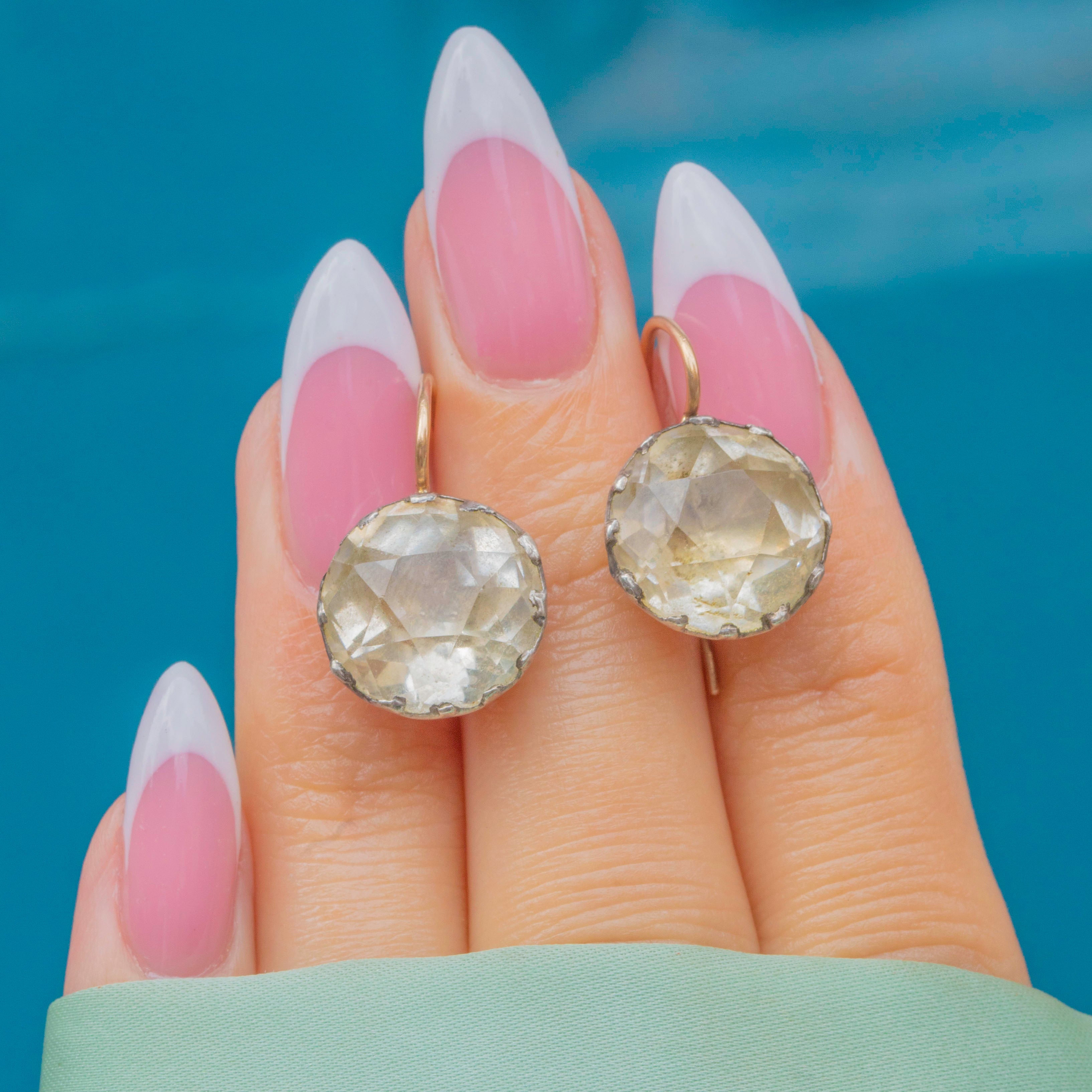 We are so pleased to introduce you to these magnificent Georgian Rock Crystal earrings, in all their shimmering antique glory!