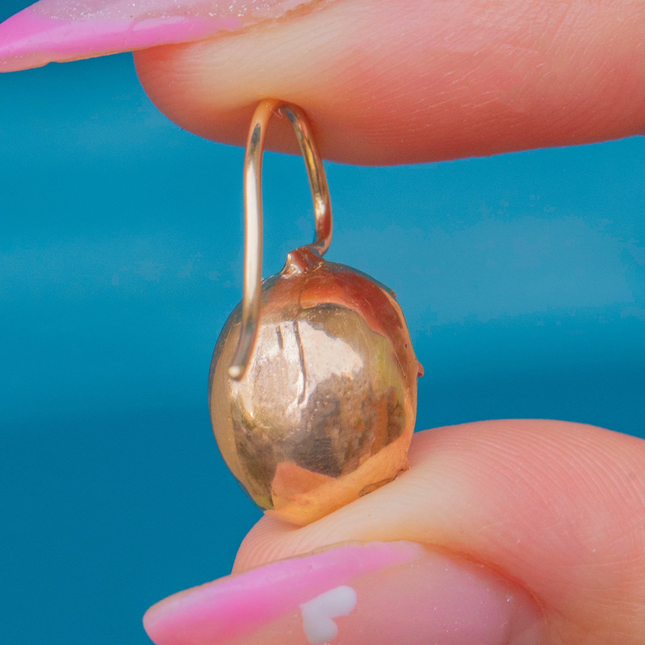 These beautiful Georgian earrings feature vivid green paste stones in rich Gold-toned settings, suspended from solid 18ct Gold hooks. Their rounded button form and bright, lively colour make them a wonderful example of early 19th-century craftsmanship.