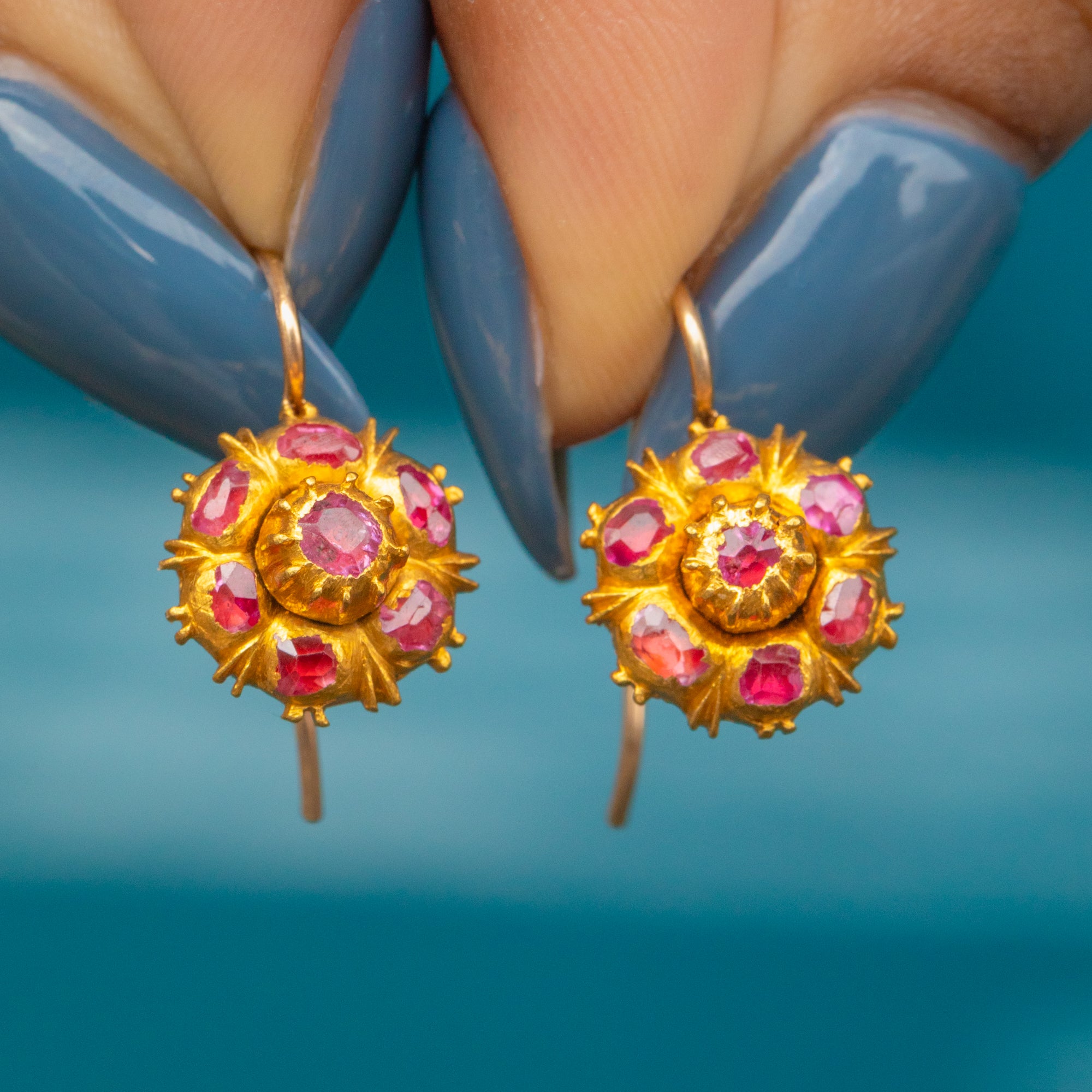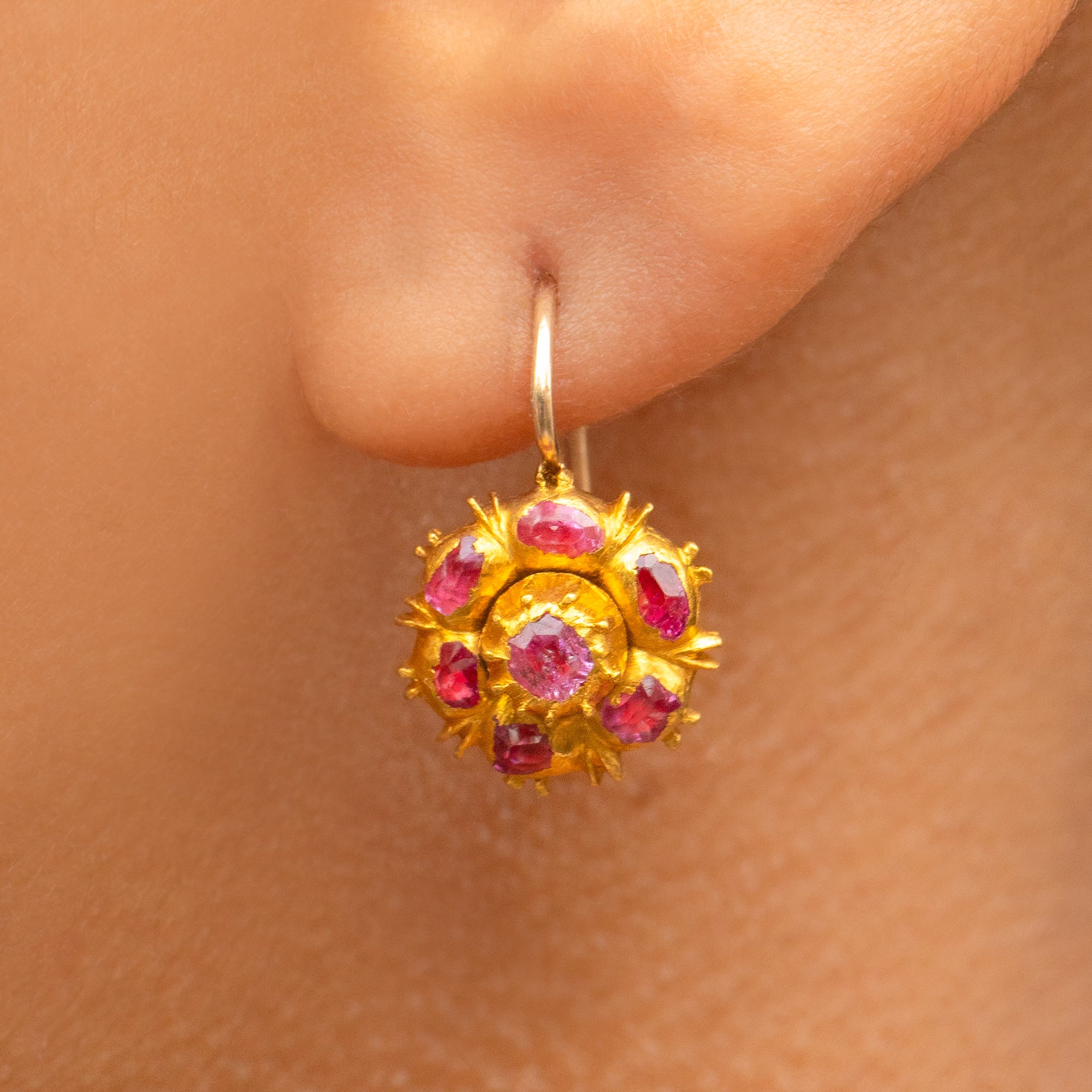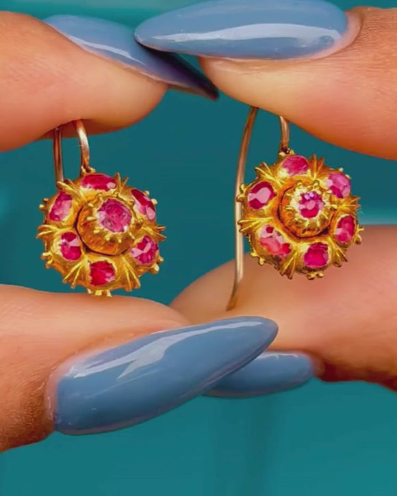ジョージアン イベリアン 22ct ゴールド ルビー クラスター イヤリング、0.42ct