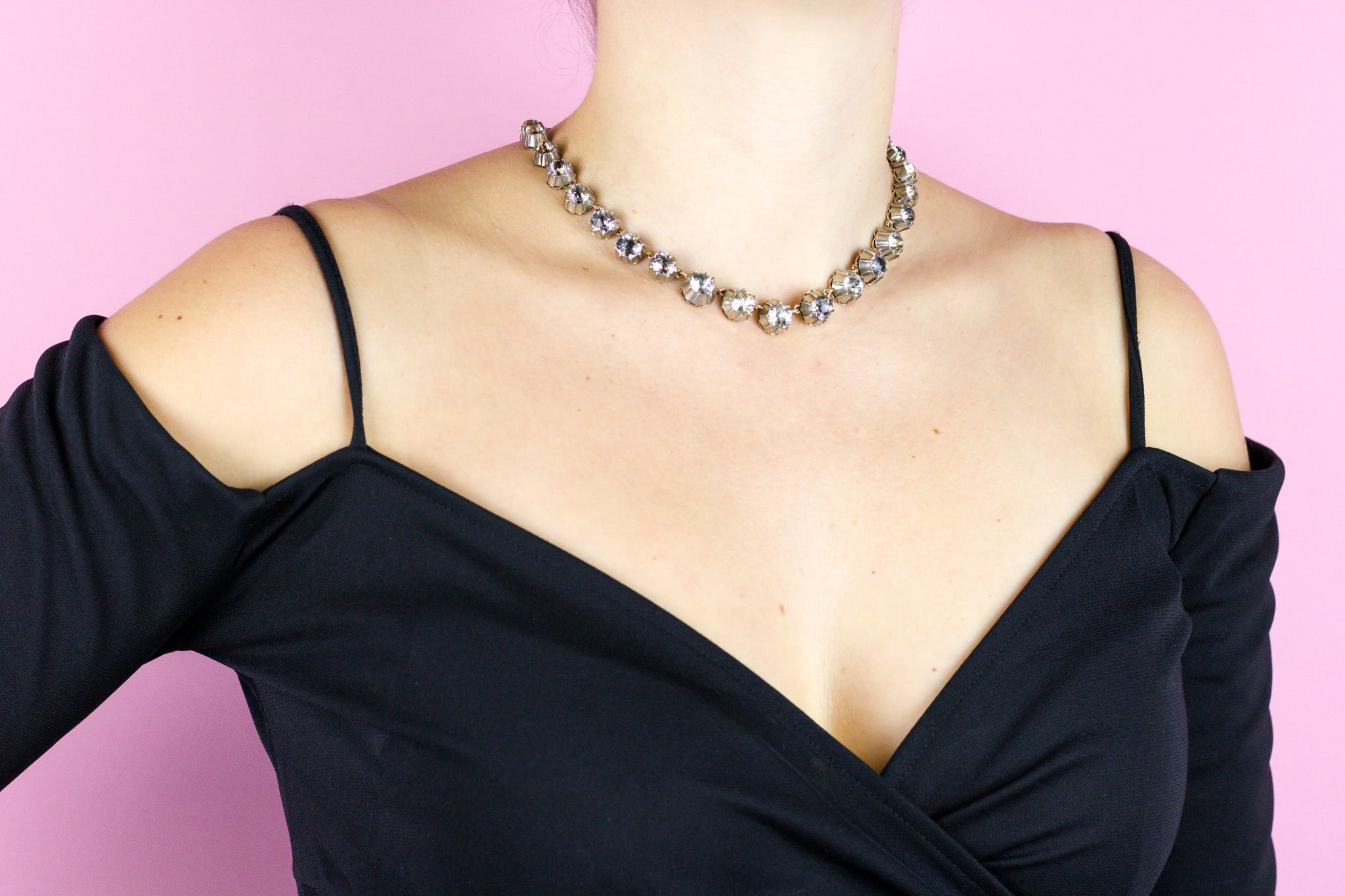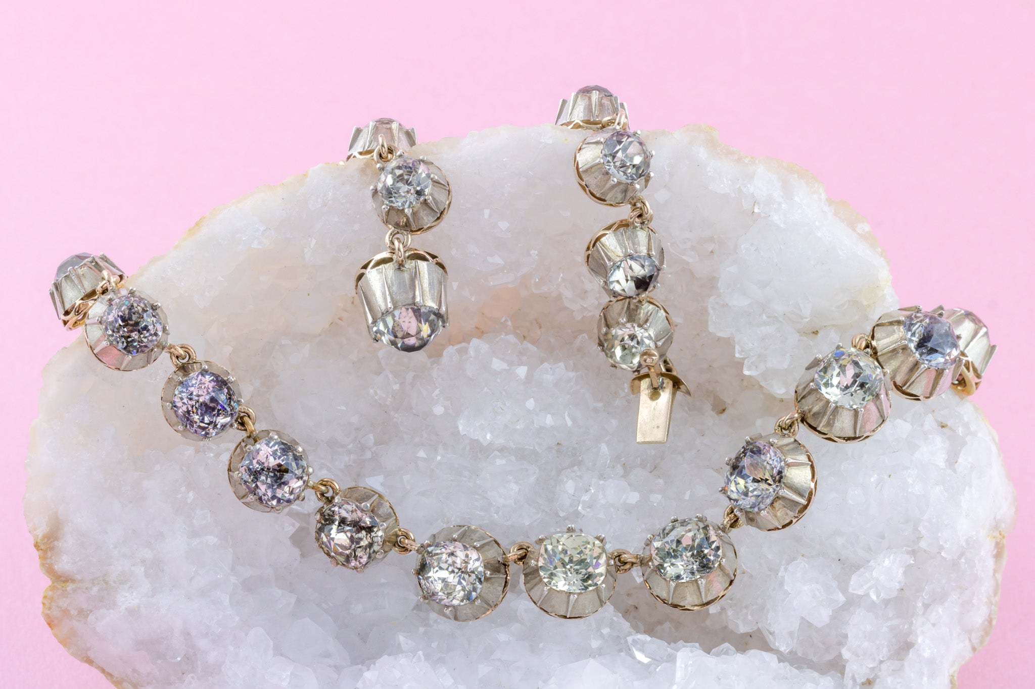 ジョージアン ペースト リヴィエール ネックレス シルバーと9ctゴールド製