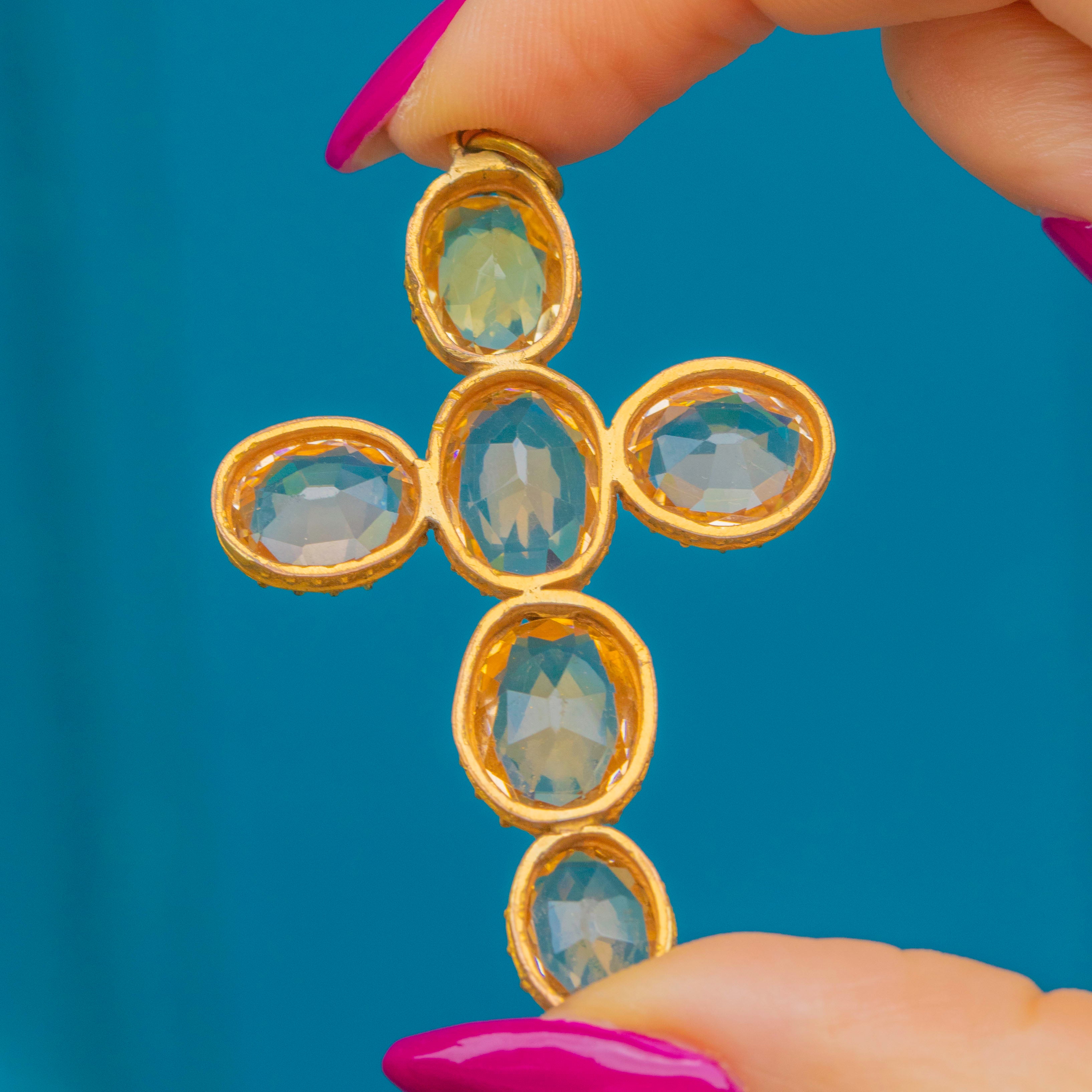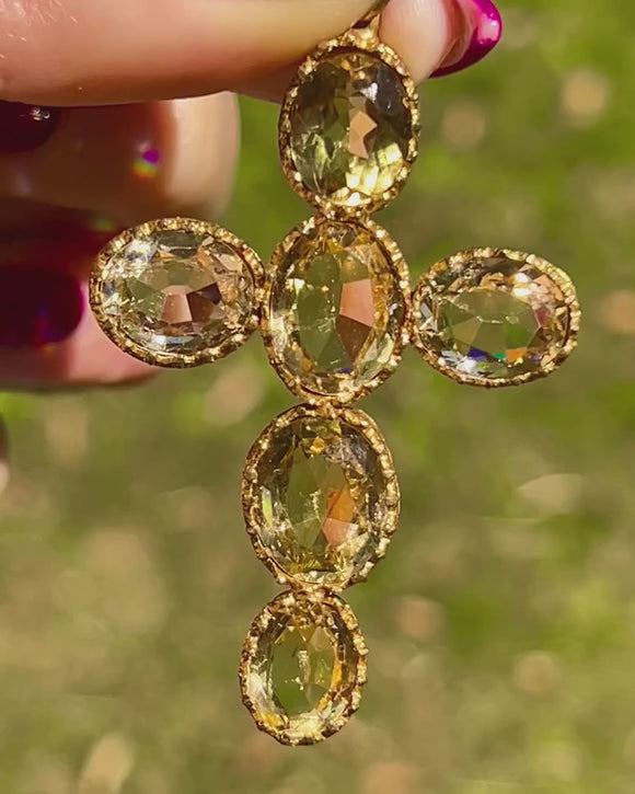 Georgian Pinchbeck Citrine & Paste Cross Pendant