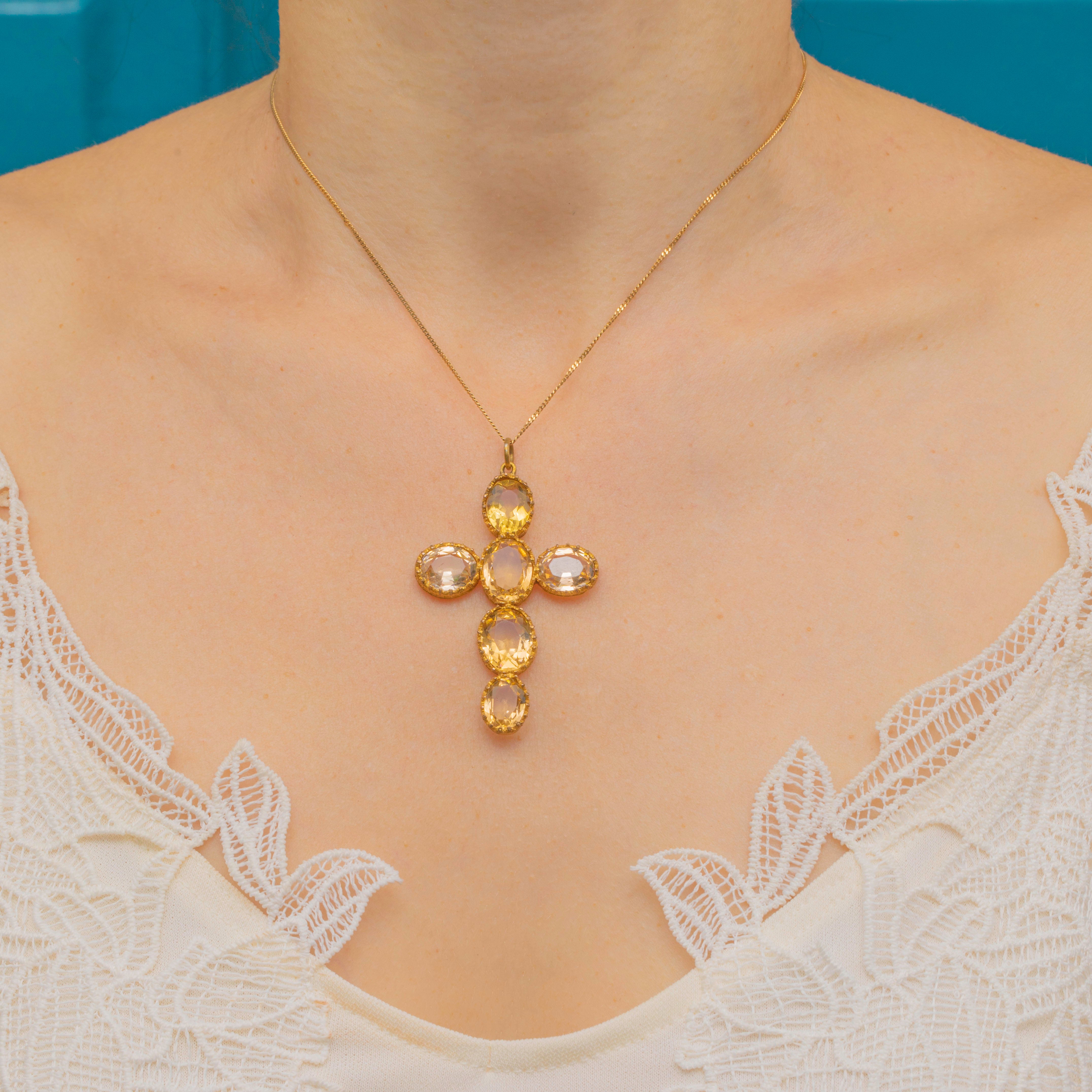 Like a ray of sunshine, this large Georgian cross pendant features five plump dandelion-hued Paste stones, complemented by a vibrant 3.15ct lemon Citrine.