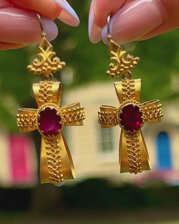These Georgian Pinchbeck Red Paste cross earrings are a delightfully decadent pair!