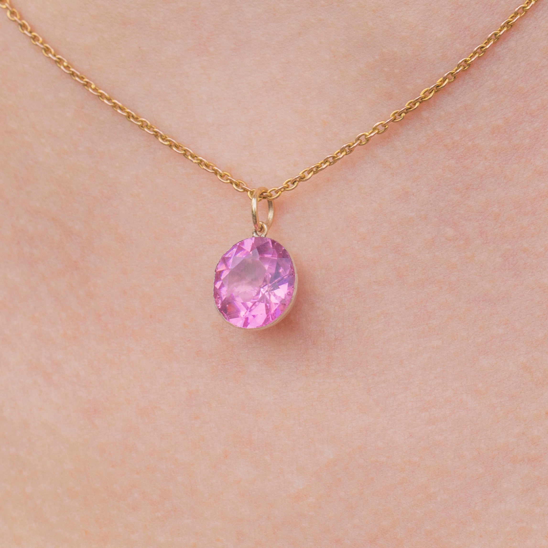 Her gorgeous fuchsia tones exude a playful quality and she is full of personality and charm. This Georgian button charm sits securely in her Silver setting and would look gorgeous suspended from a dainty chain, adding vibrancy to your everyday outfit!