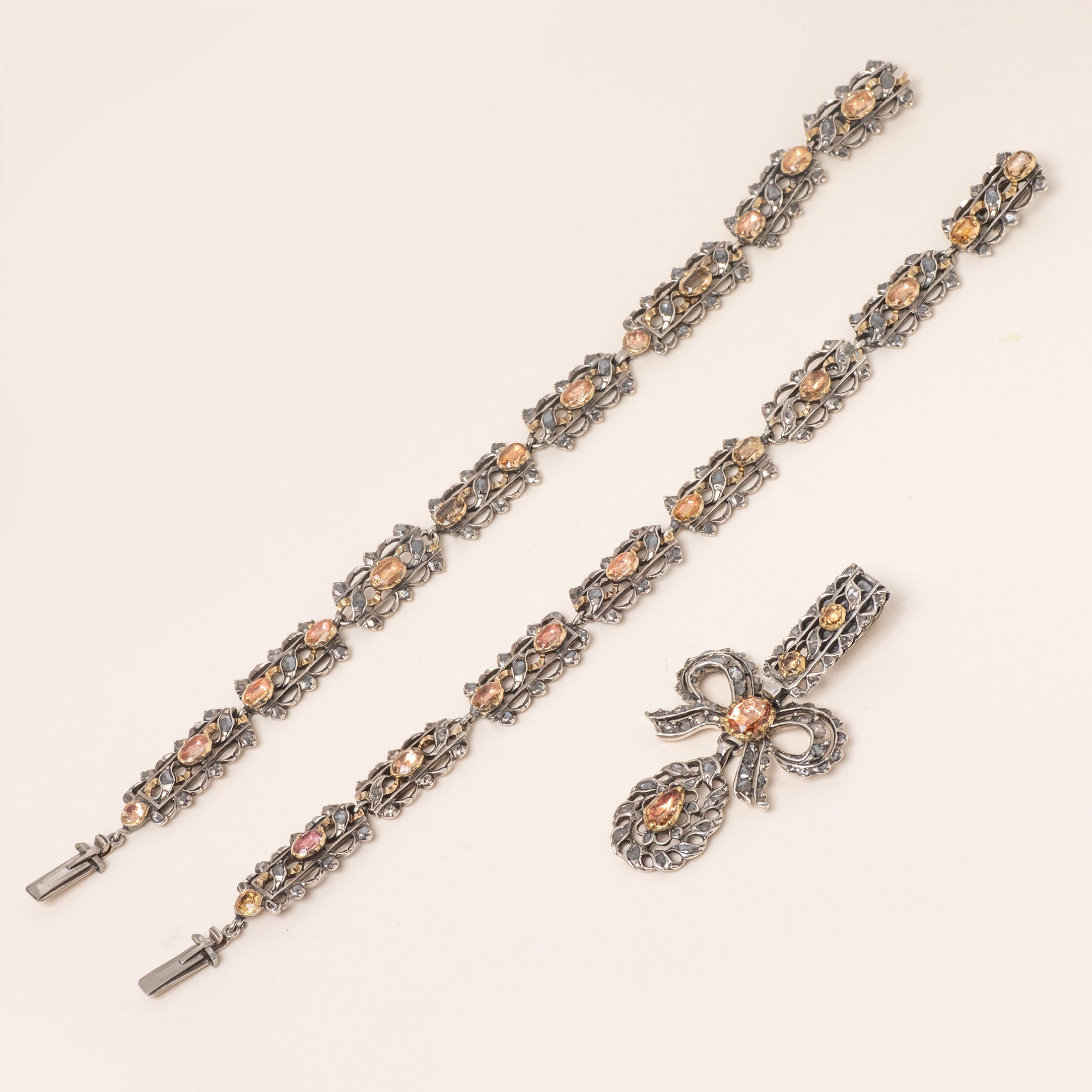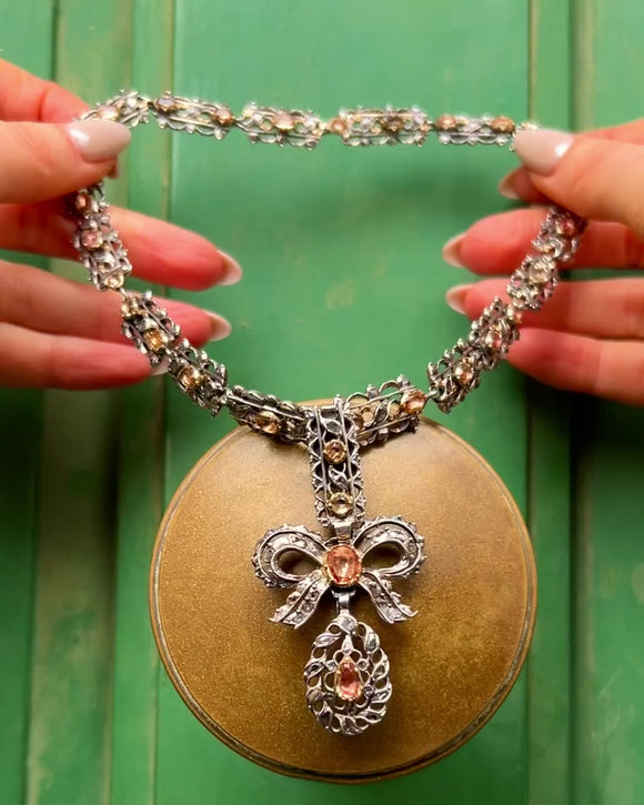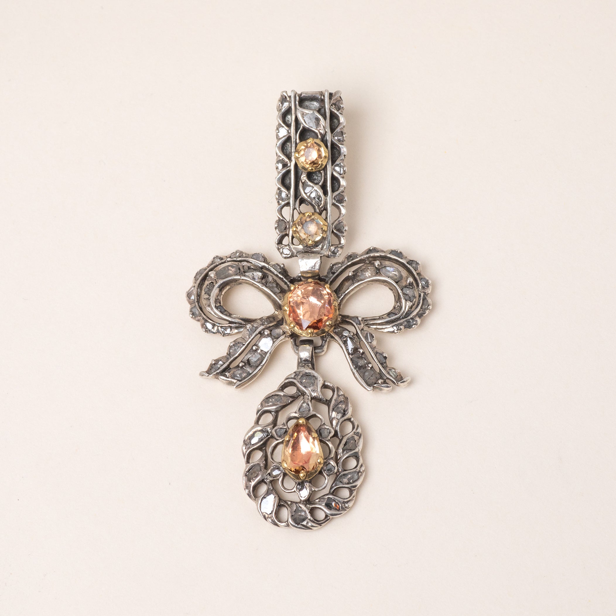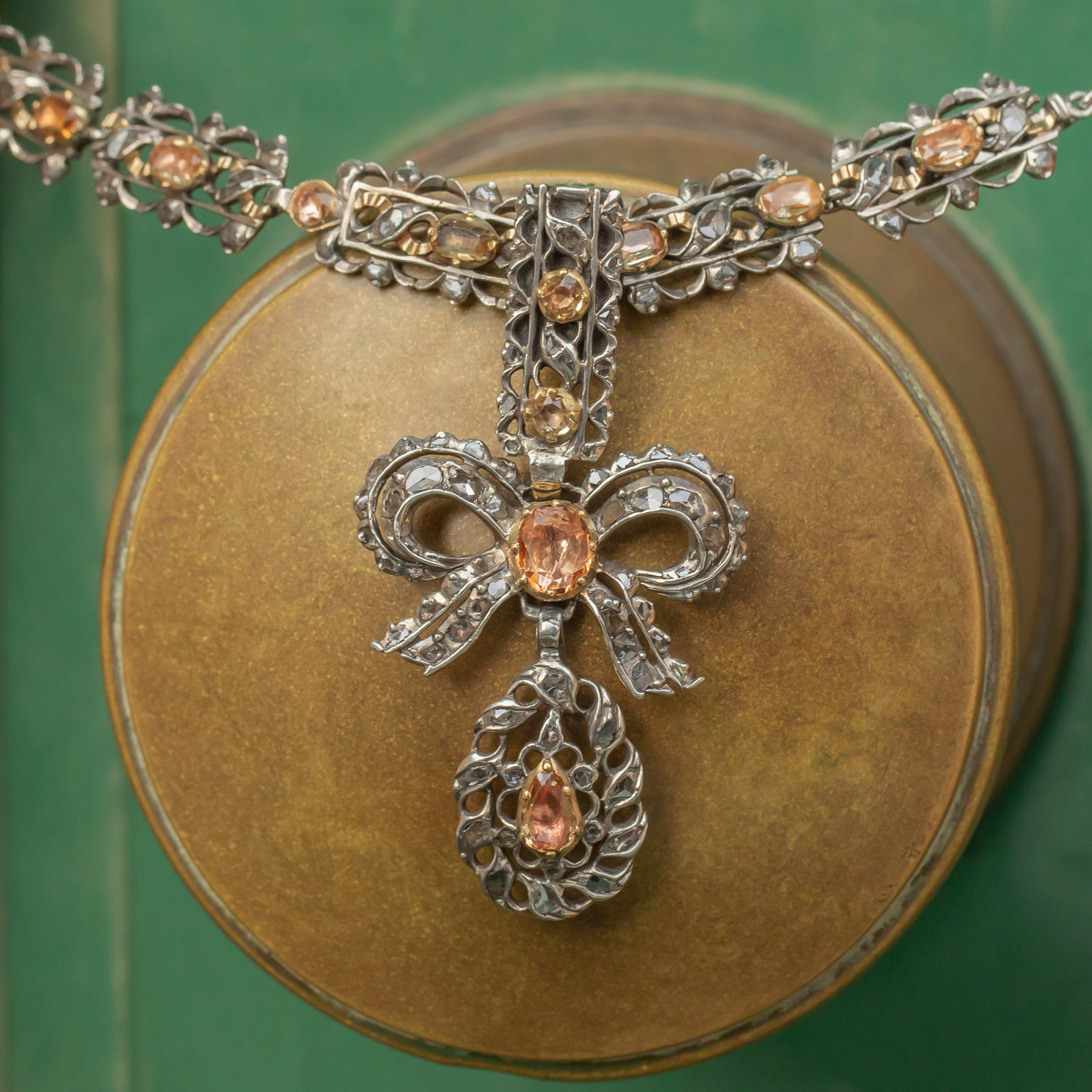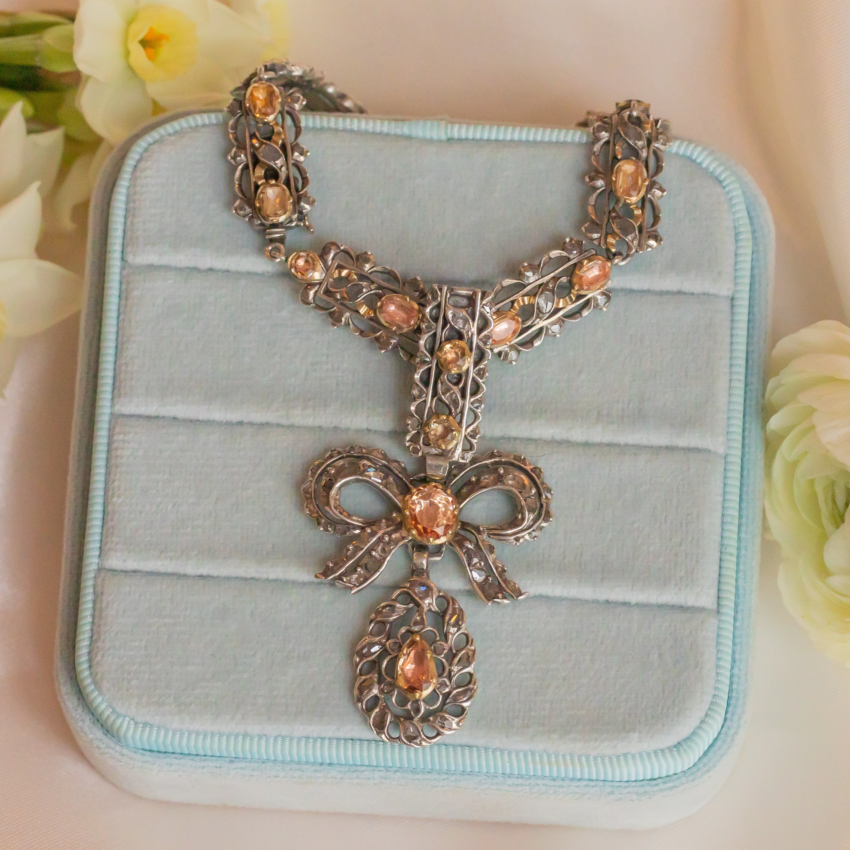 ジョージアン ポルトガル フォイルド トパーズ ダイヤモンド カラー、ボウ ドロップ ペンダント 約1780年頃