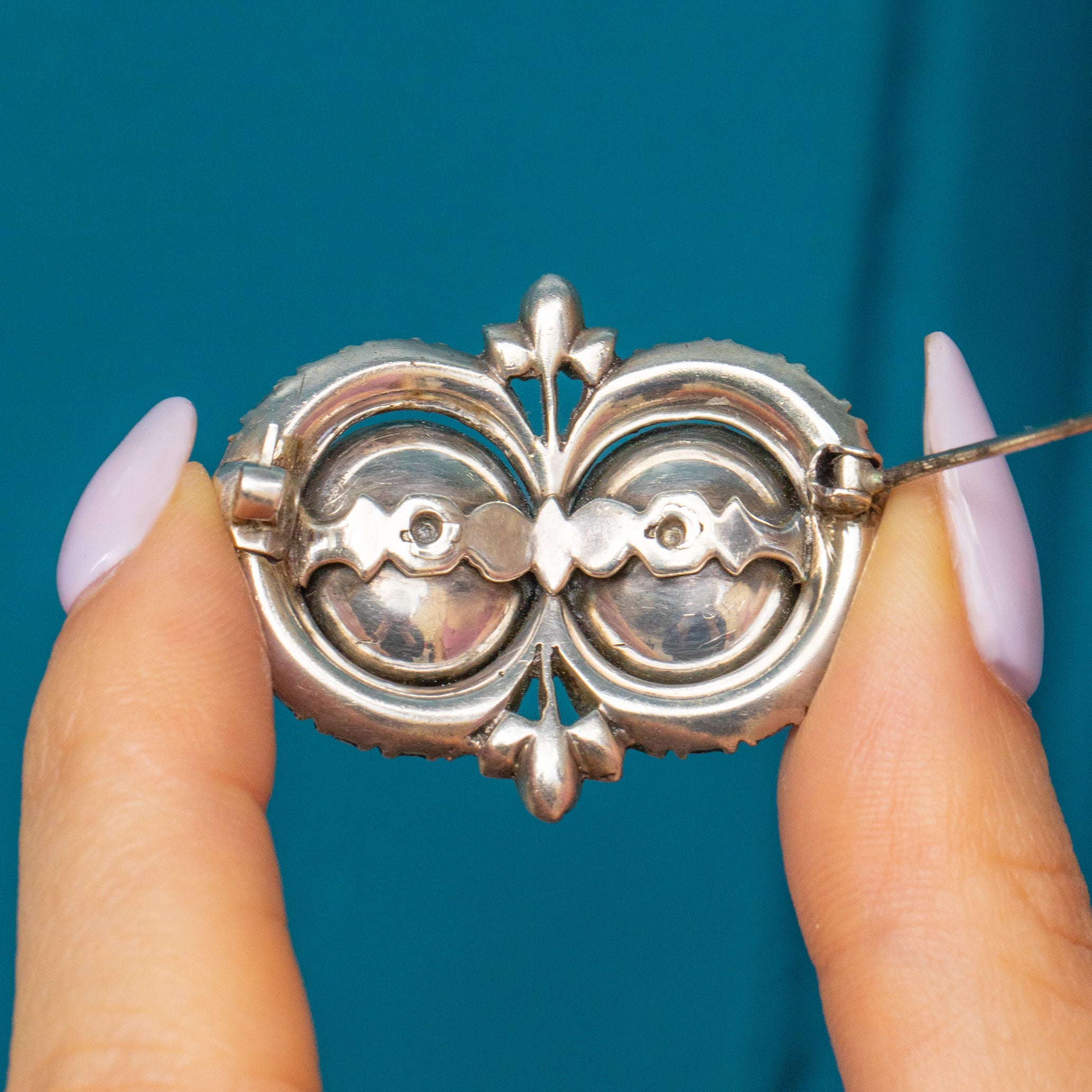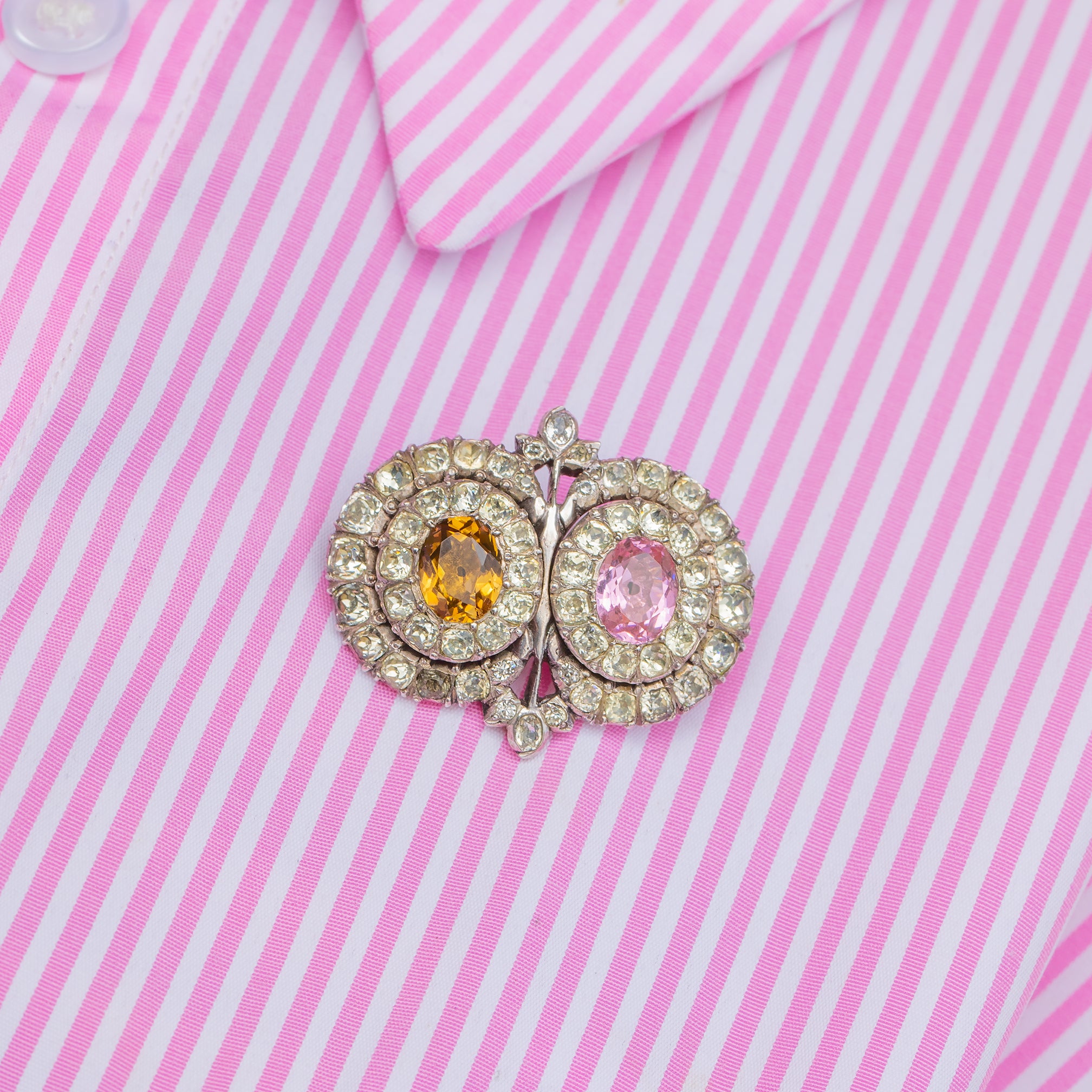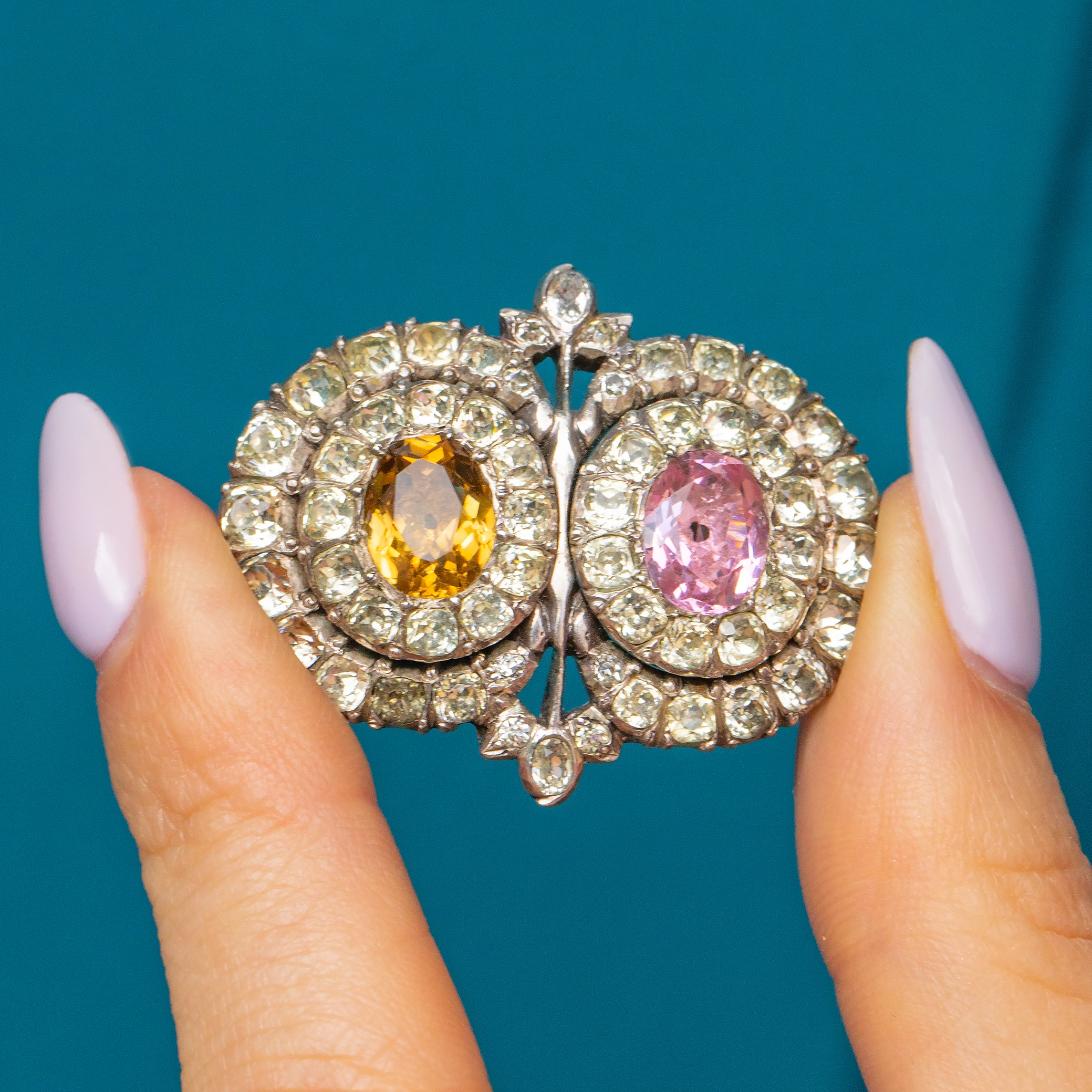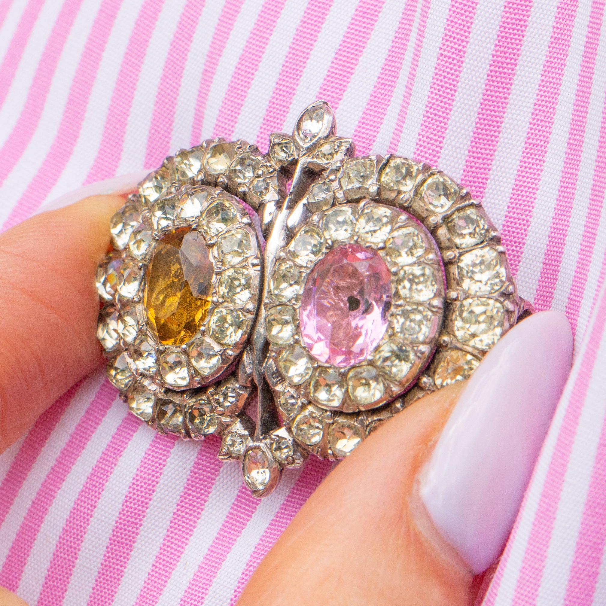 The superb piece of Georgian jewellery has been crafted from lustrous Sterling Silver to create comfortable dished settings for the Paste to rest in, which have notably crisp facets that glisten beneath the light! With a combination of white, pink, and maple Paste, she offers a myriad of bright sparkles. This Georgian brooch is ready to be worn and adored straight from the box!