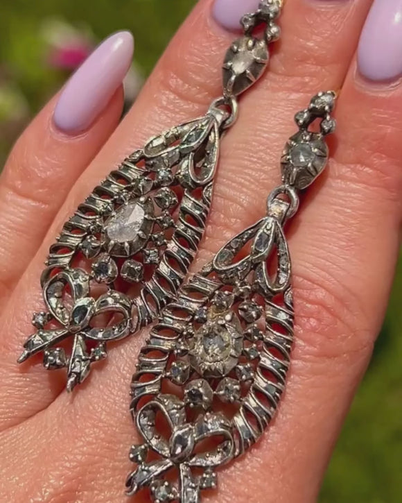 EXCELLENT. These Georgian rose-cut Diamond earrings are in excellent condition. These earrings have a secure set of Diamonds within them, each sparkling beautifully beneath the light. These earrings have lasted so well throughout the years, and given their grand age of 200 years, they are quite the find. There is little else to mention about these beauties, aside from how glorious they are!