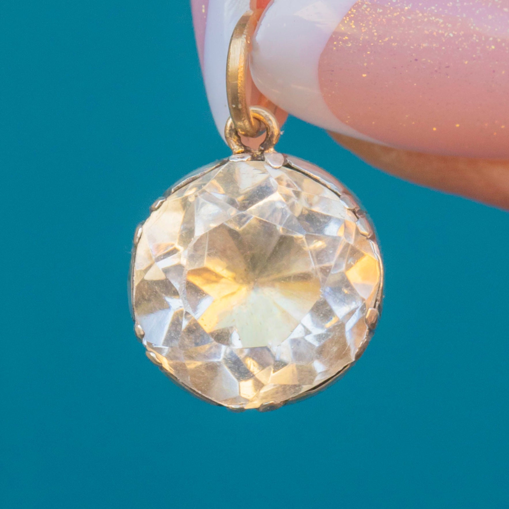 This brilliant Georgian Silver round Paste charm is securely set into a solid Sterling Silver settings and is topped with a Gold jump ring; it would look divine suspended from a fine chain.
