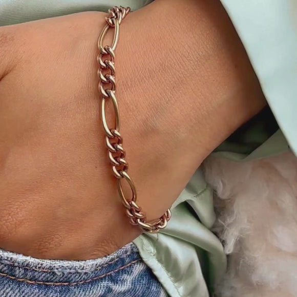 アンティーク 9ct ゴールド ツートーン フィガロ ブレスレット、12.5g