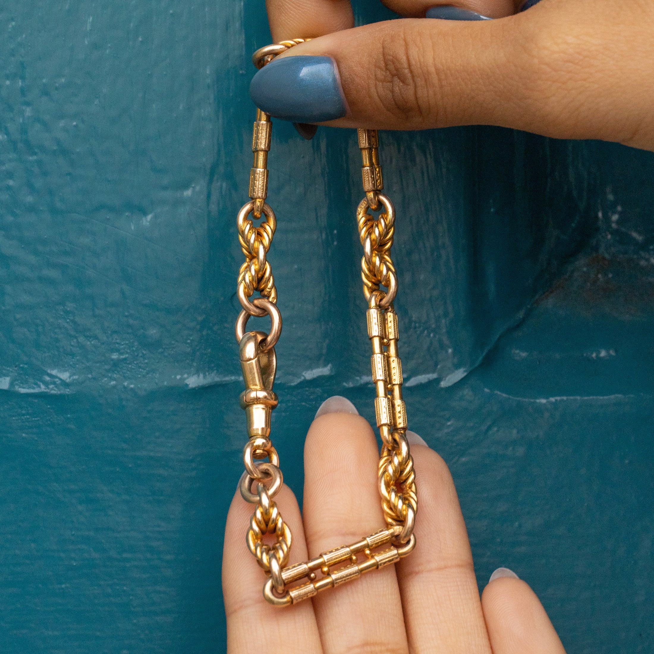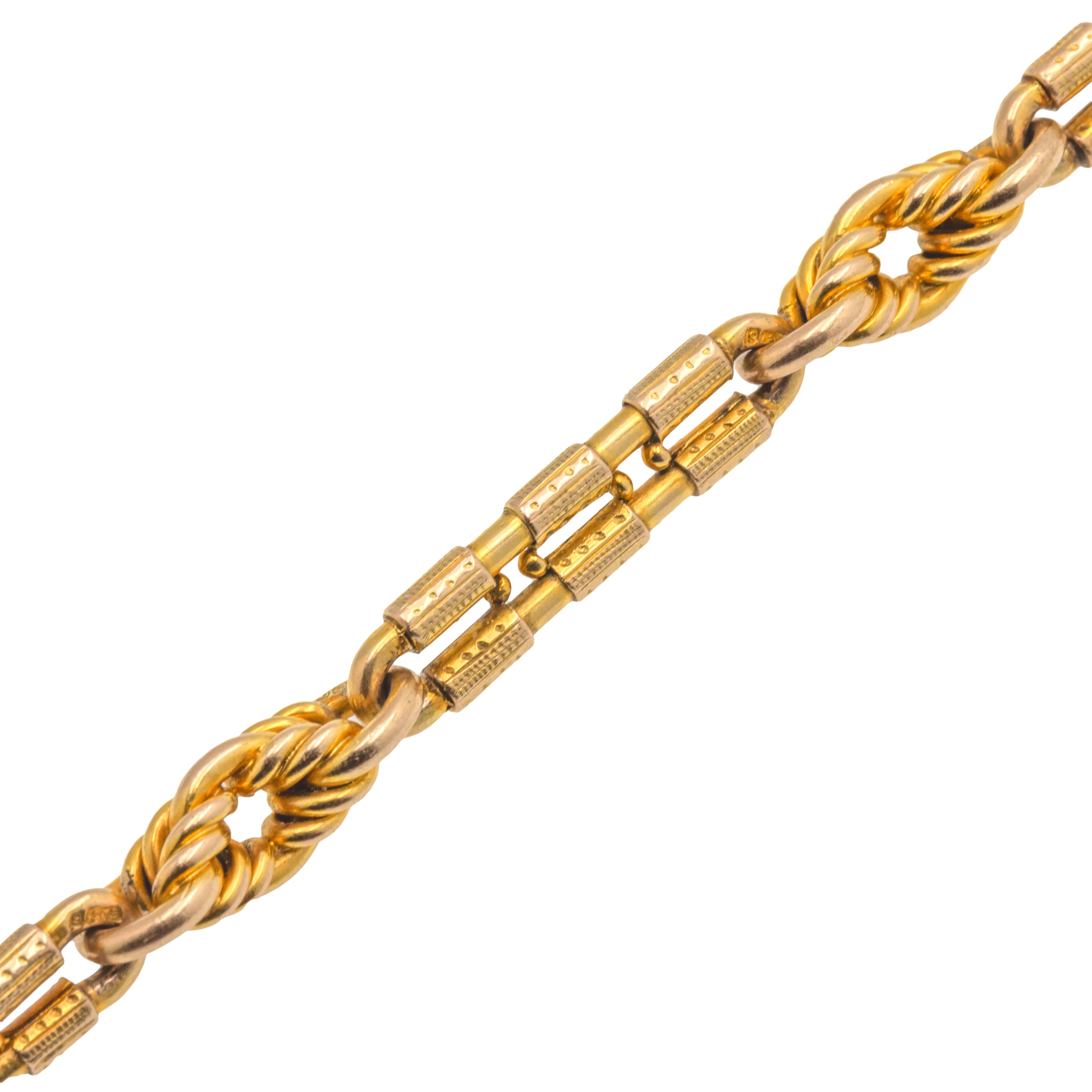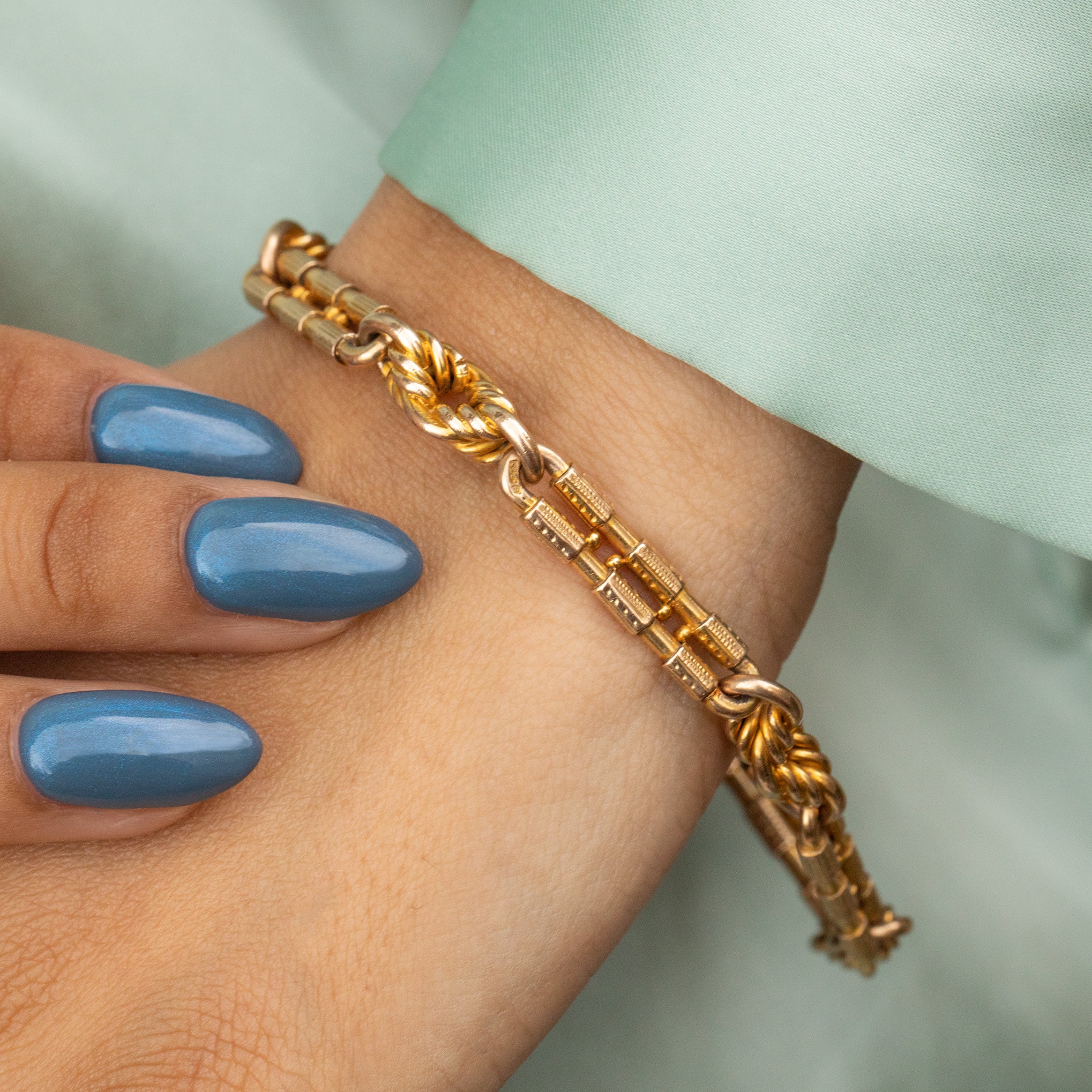 ヘビー ヴィクトリアン 9ct ゴールド テクスチャード トロンボーンリンク ブレスレット、26.1g