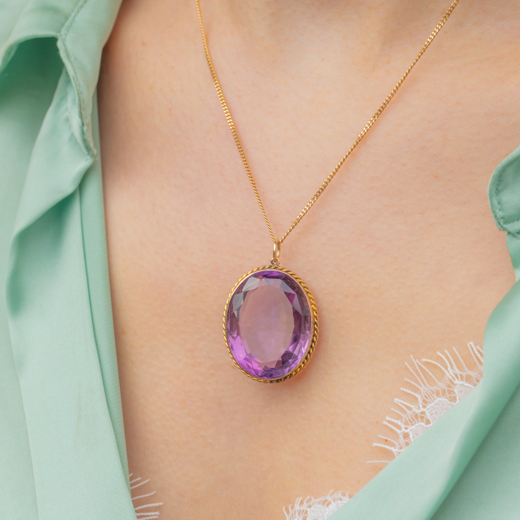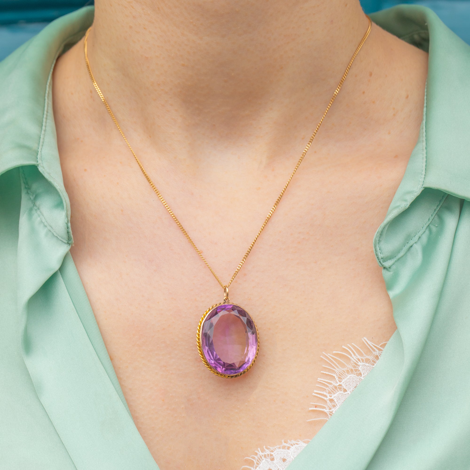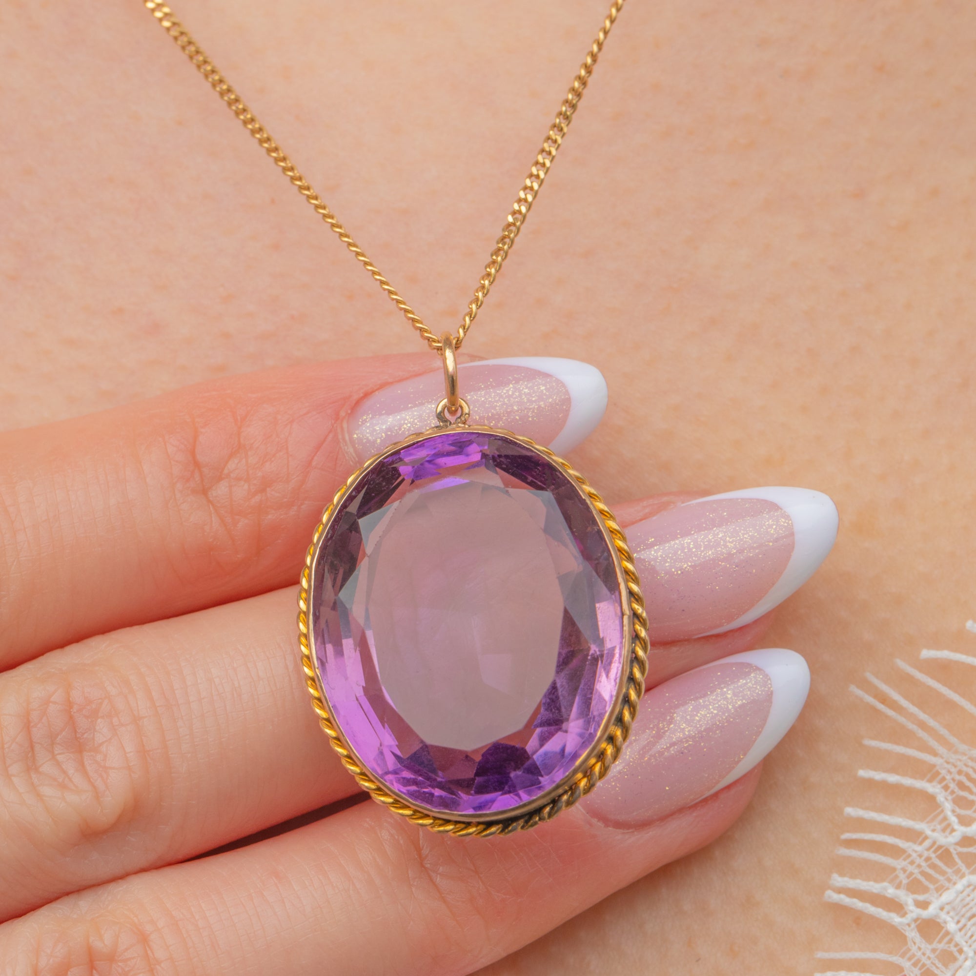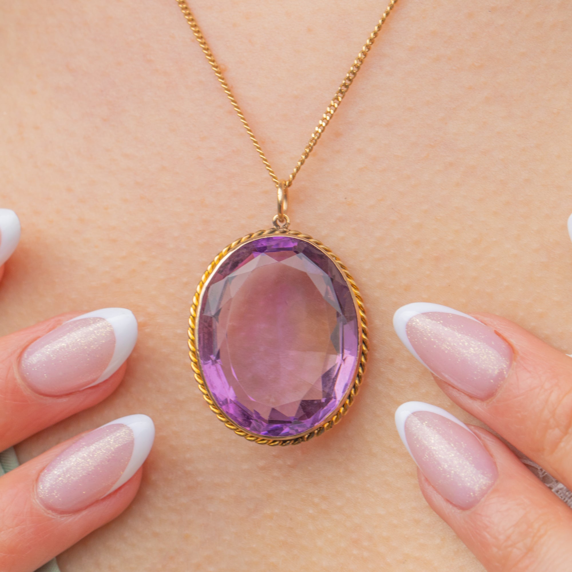 Large Antique 9ct Gold Amethyst Oval Pendant, 24.15ct