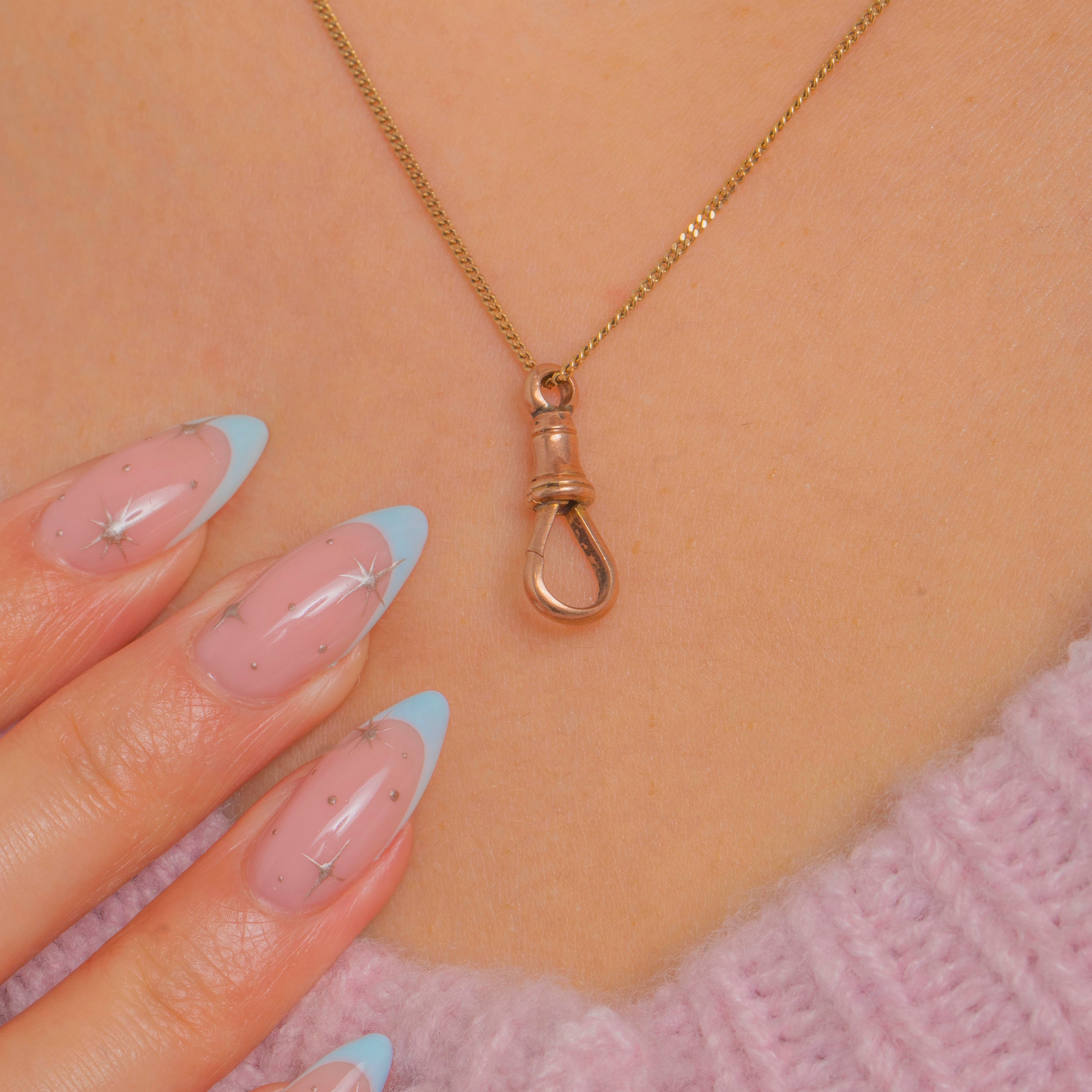 A classic Victorian dog-clip clasp in solid 9ct Gold, showcasing the sleek turned barrel and banded collars that define this timeless form. The sliding-collar spring gate works smoothly, offering that satisfying, precise action you want from an antique clasp.