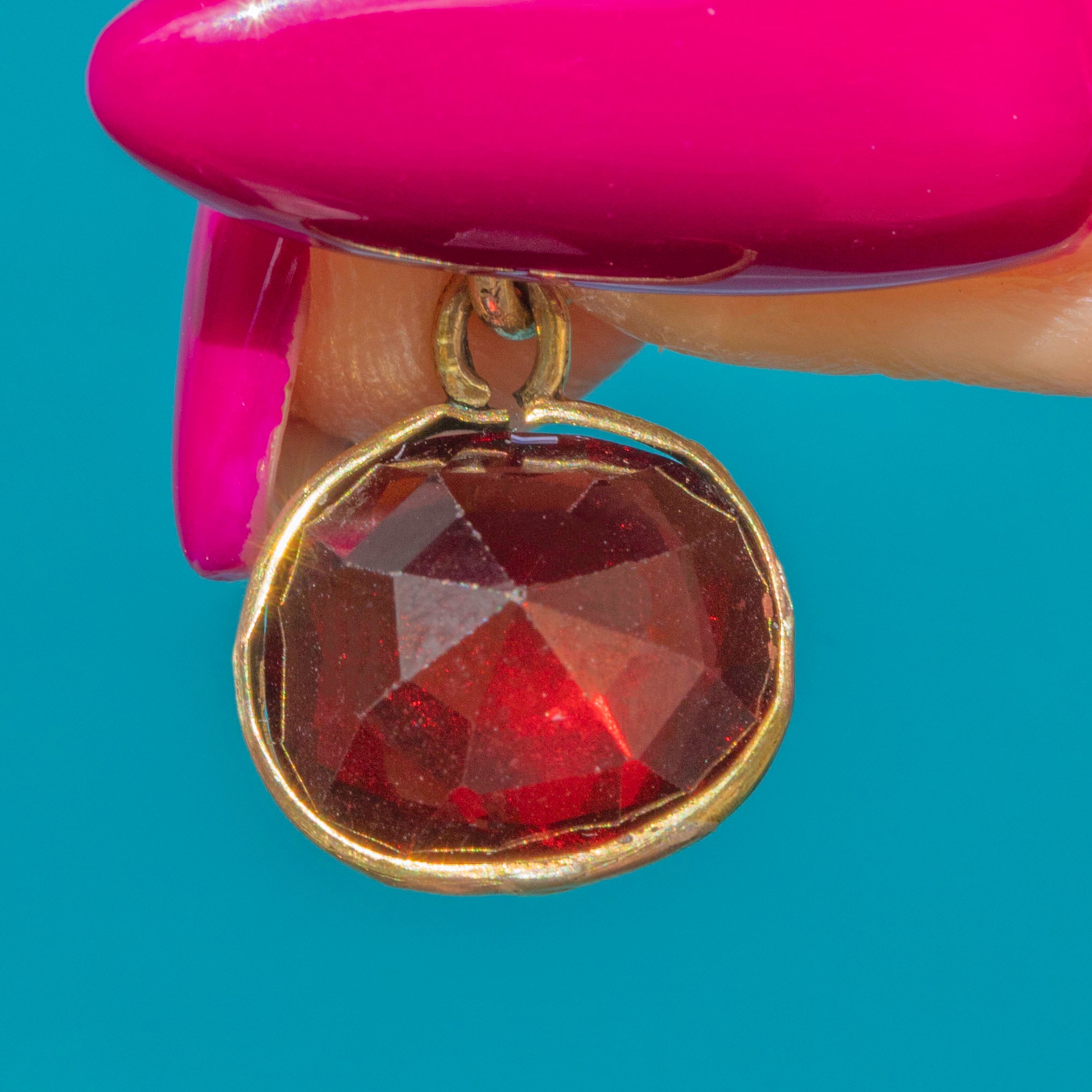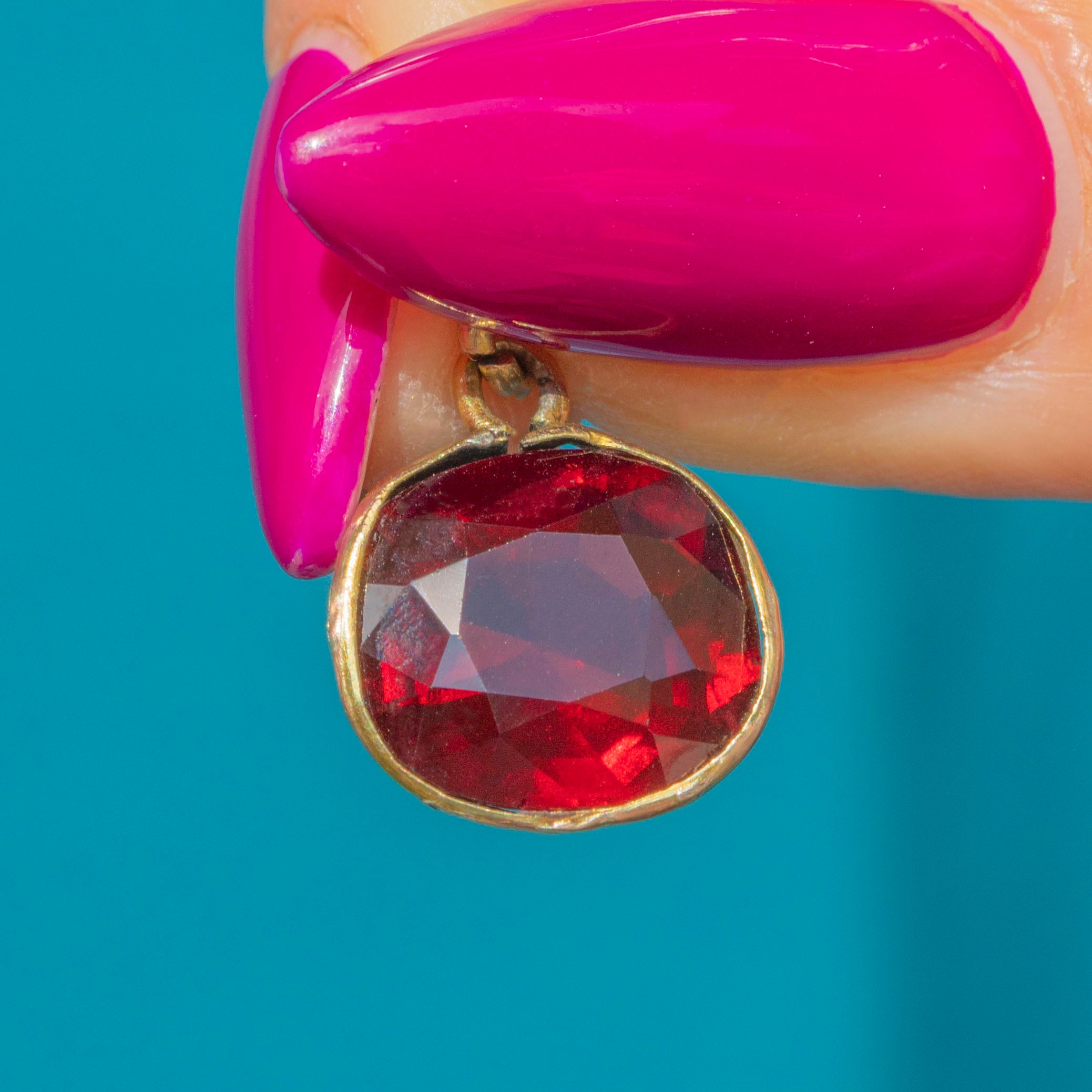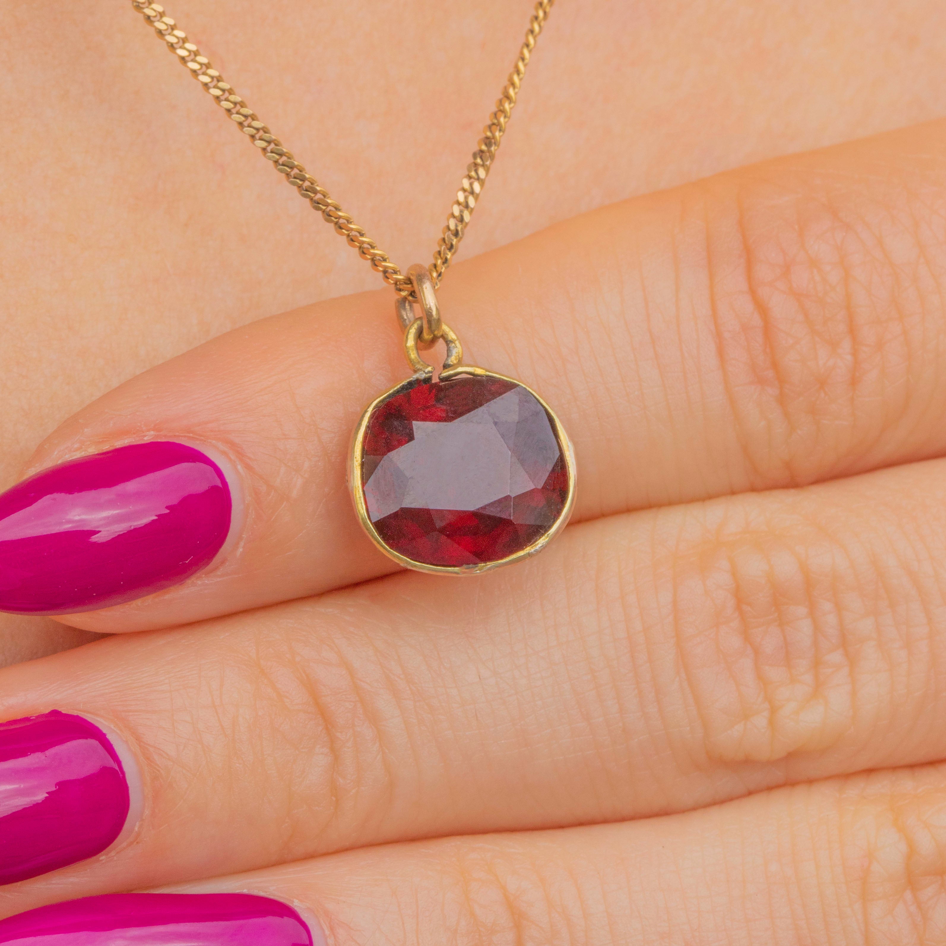 With rich cherry hues shimmering through its hand-cut facets, this large antique 5.00ct Garnet charm will bring a vibrant pop of colour to any outfit.