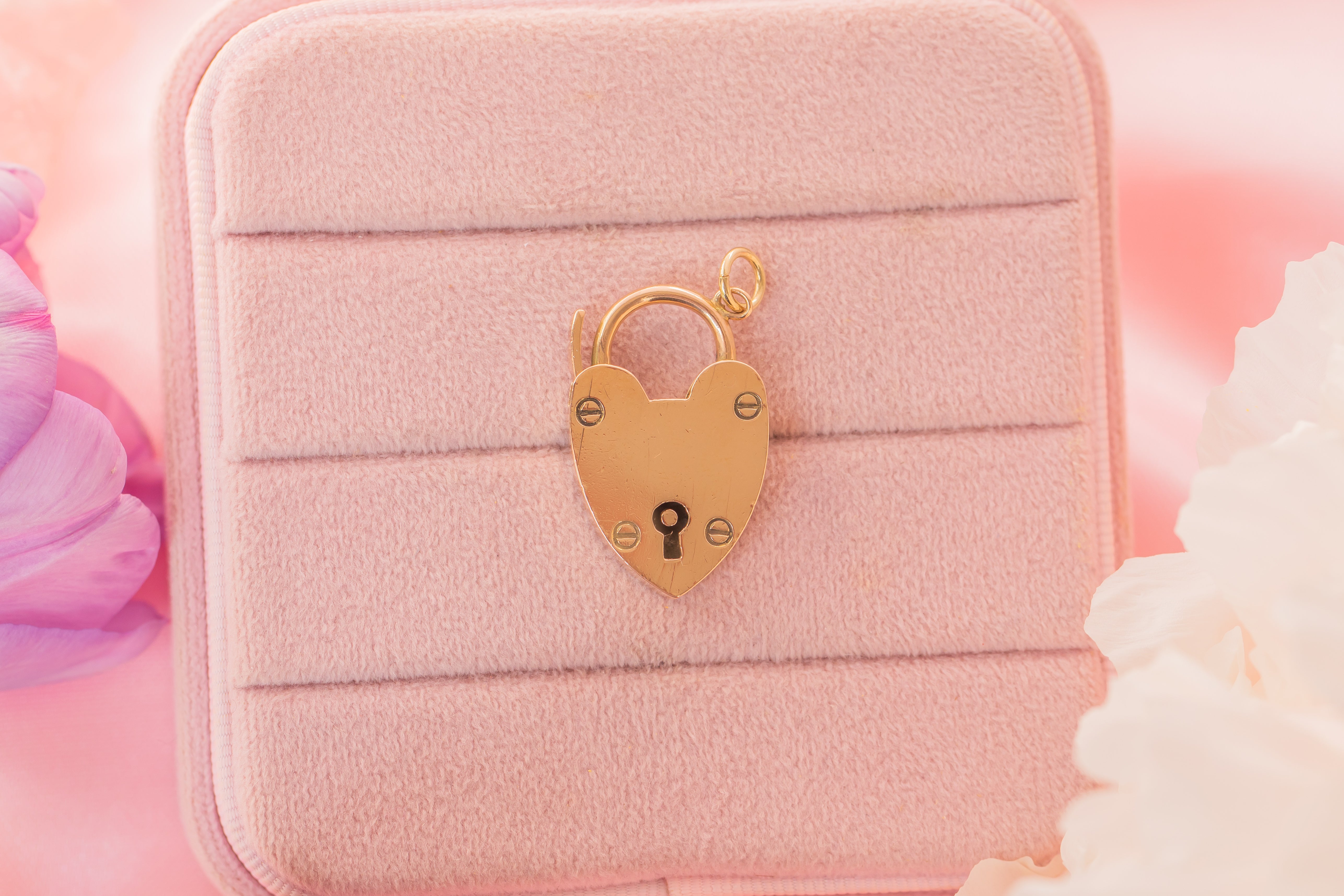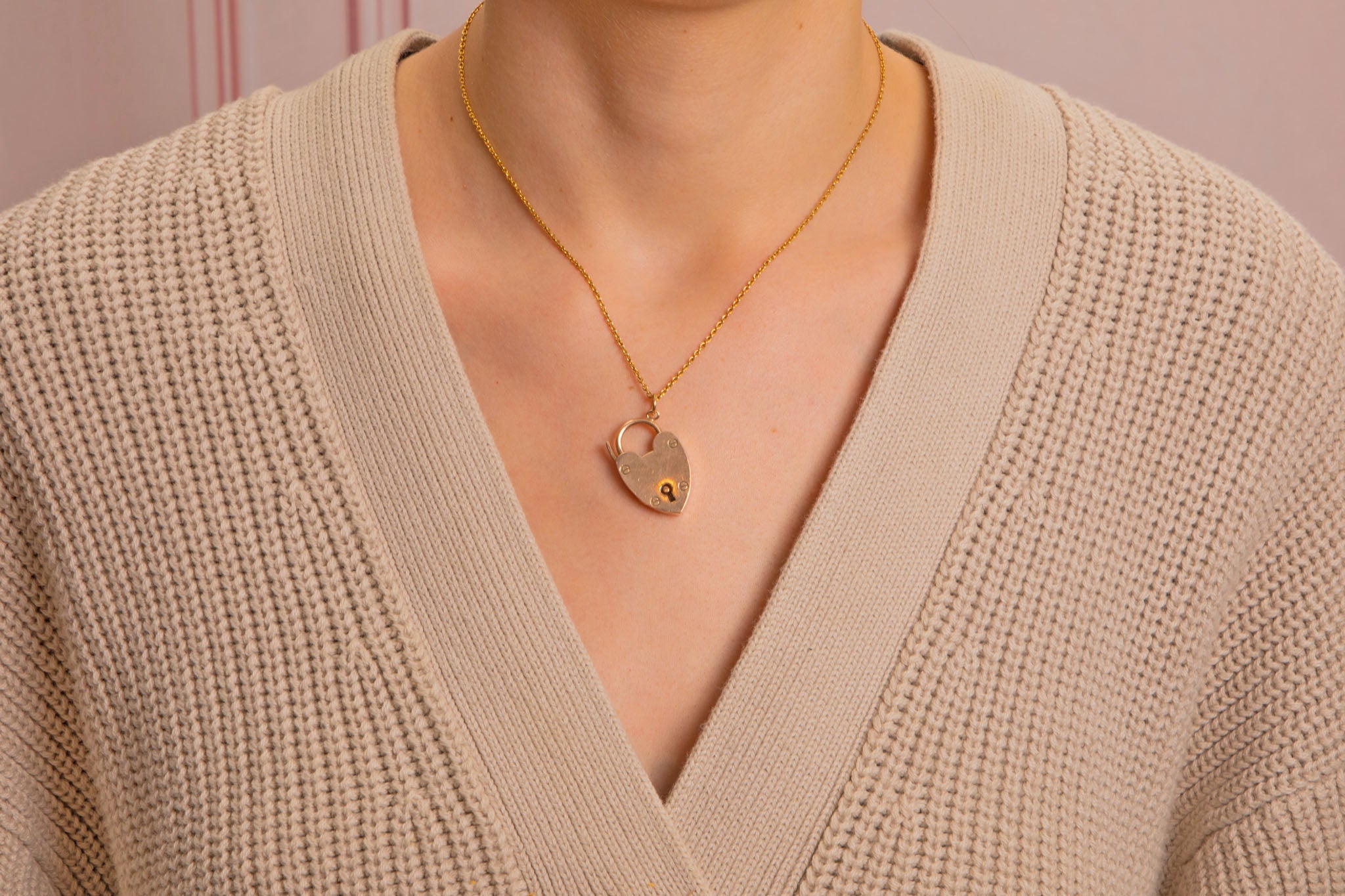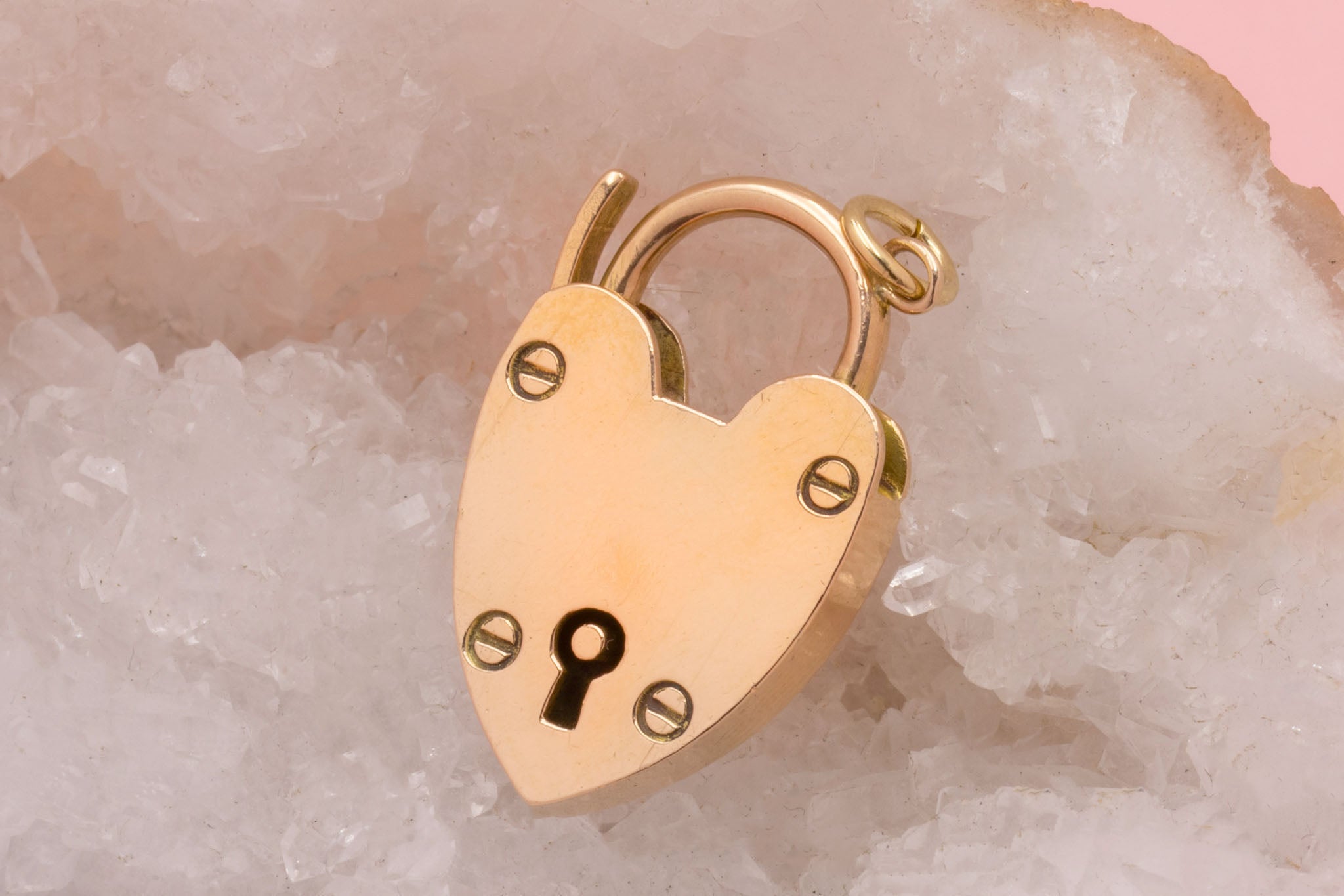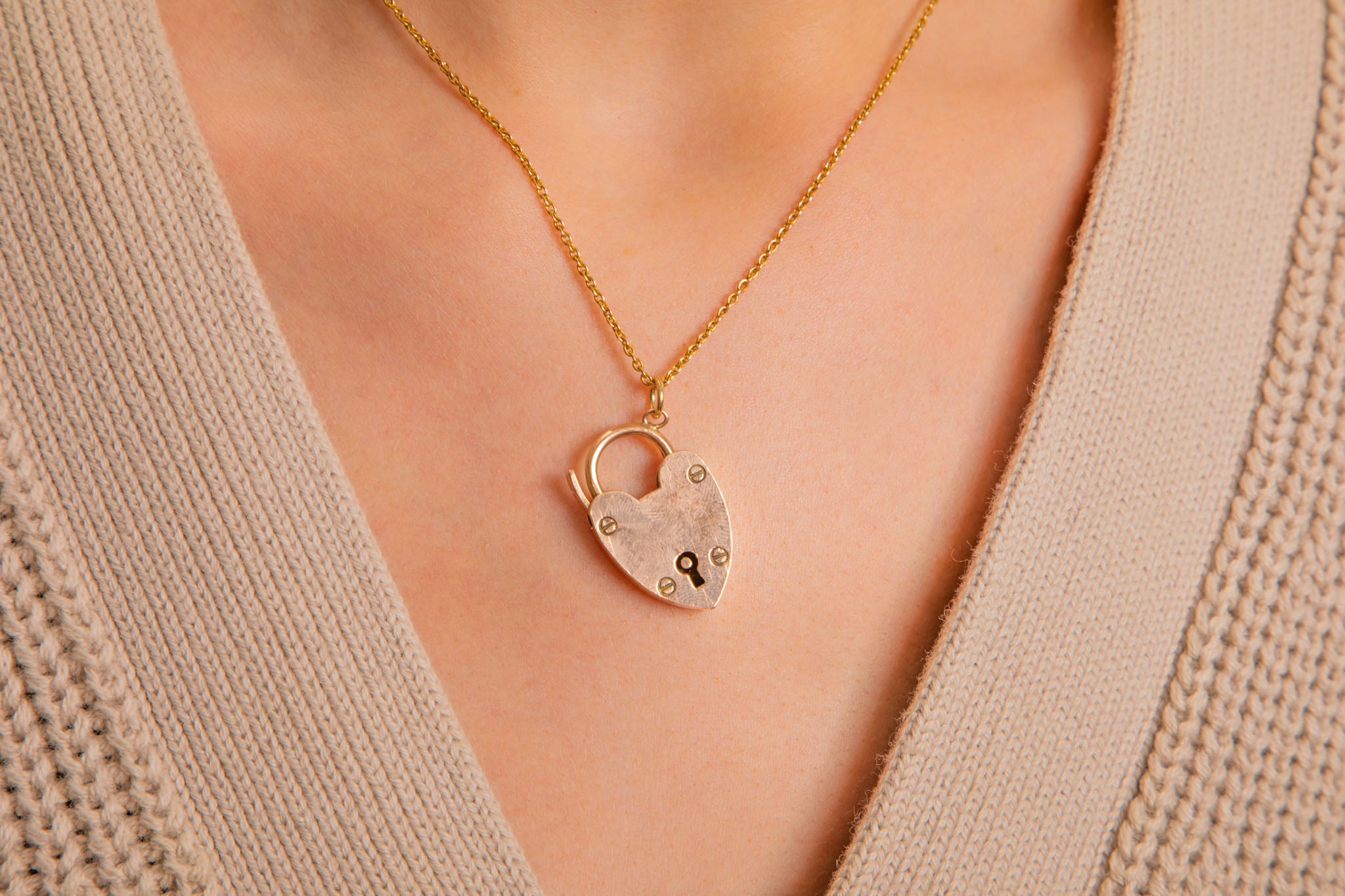 大型アンティーク 9ct ゴールド ハート パドロック ペンダント