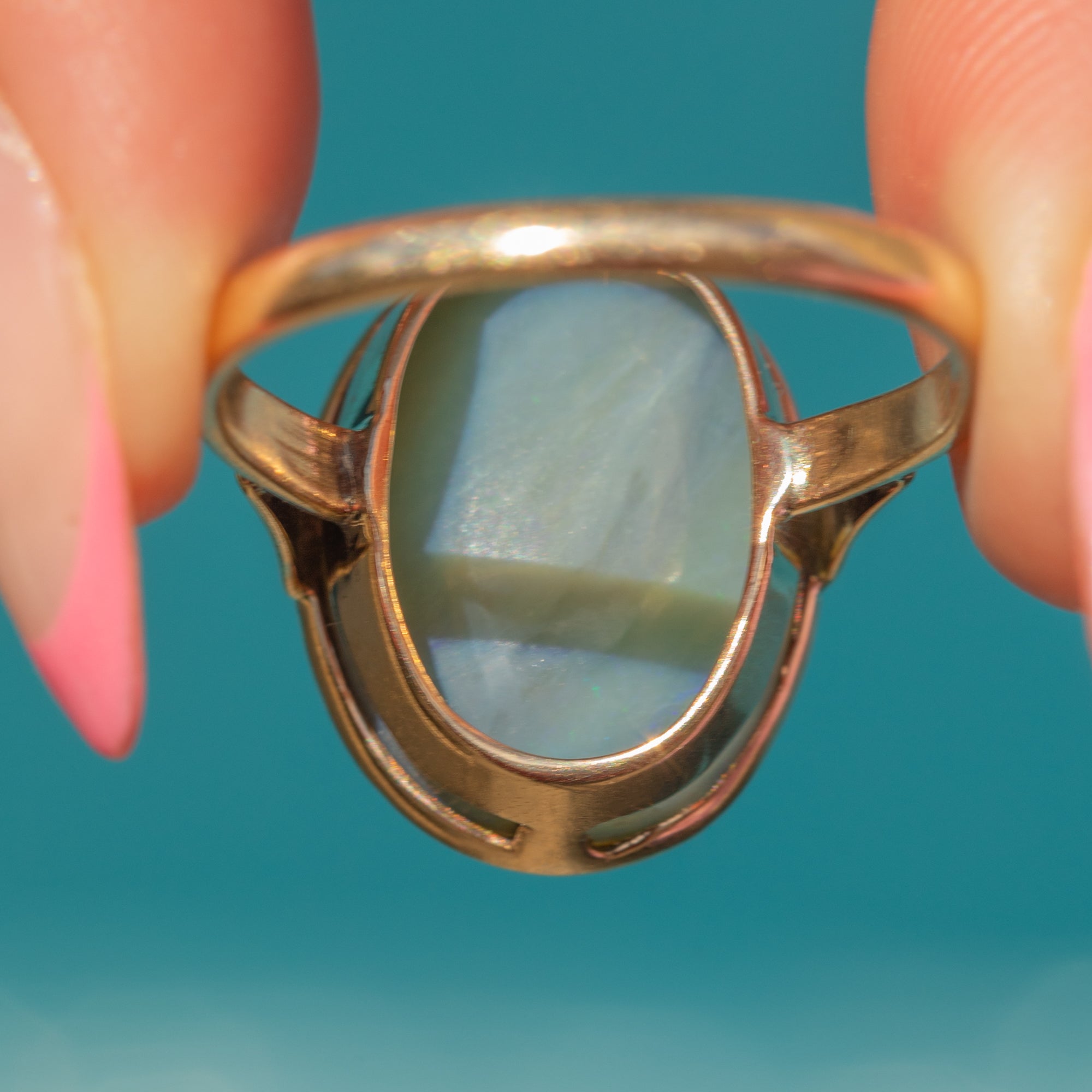 This large antique 9ct Gold natural Opal dress ring is a gorgeous Art Deco era piece!
