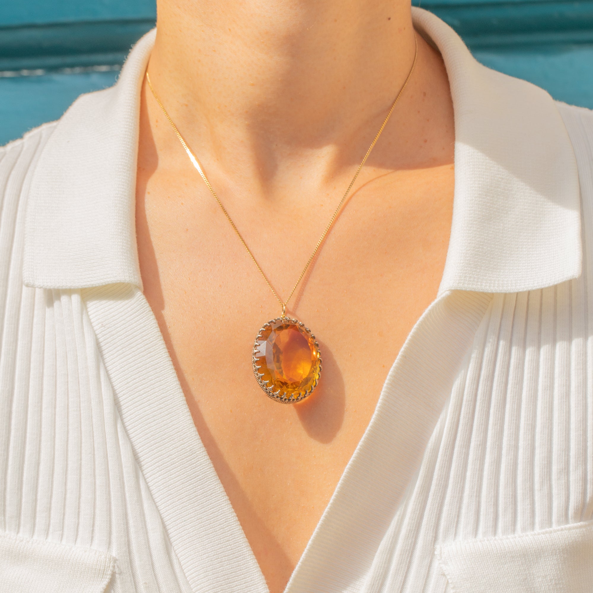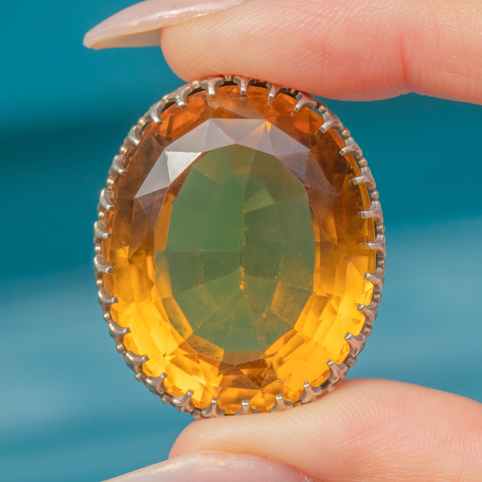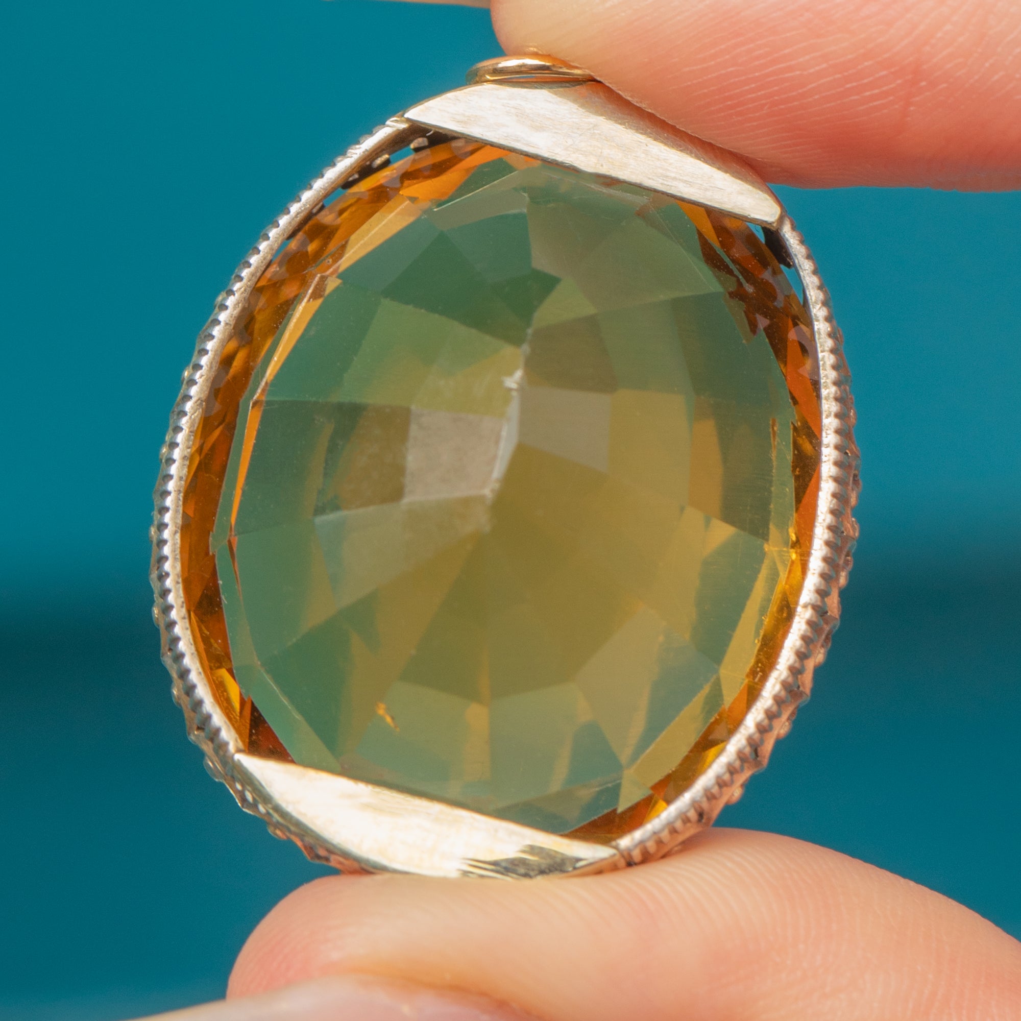 EXCELLENT: The Citrine presents beautifully with crisp facet junctions and only the lightest natural surface wear under magnification. The claw setting is secure and well-formed with no bent or missing claws. Overall the pendant has been carefully preserved, with minimal signs of age-related wear.