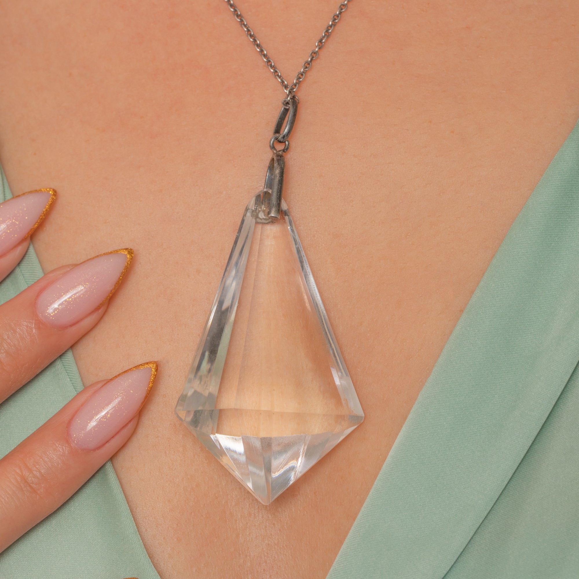 Large Art Deco Silver Faceted Rock Crystal Pendant- 120.00ct