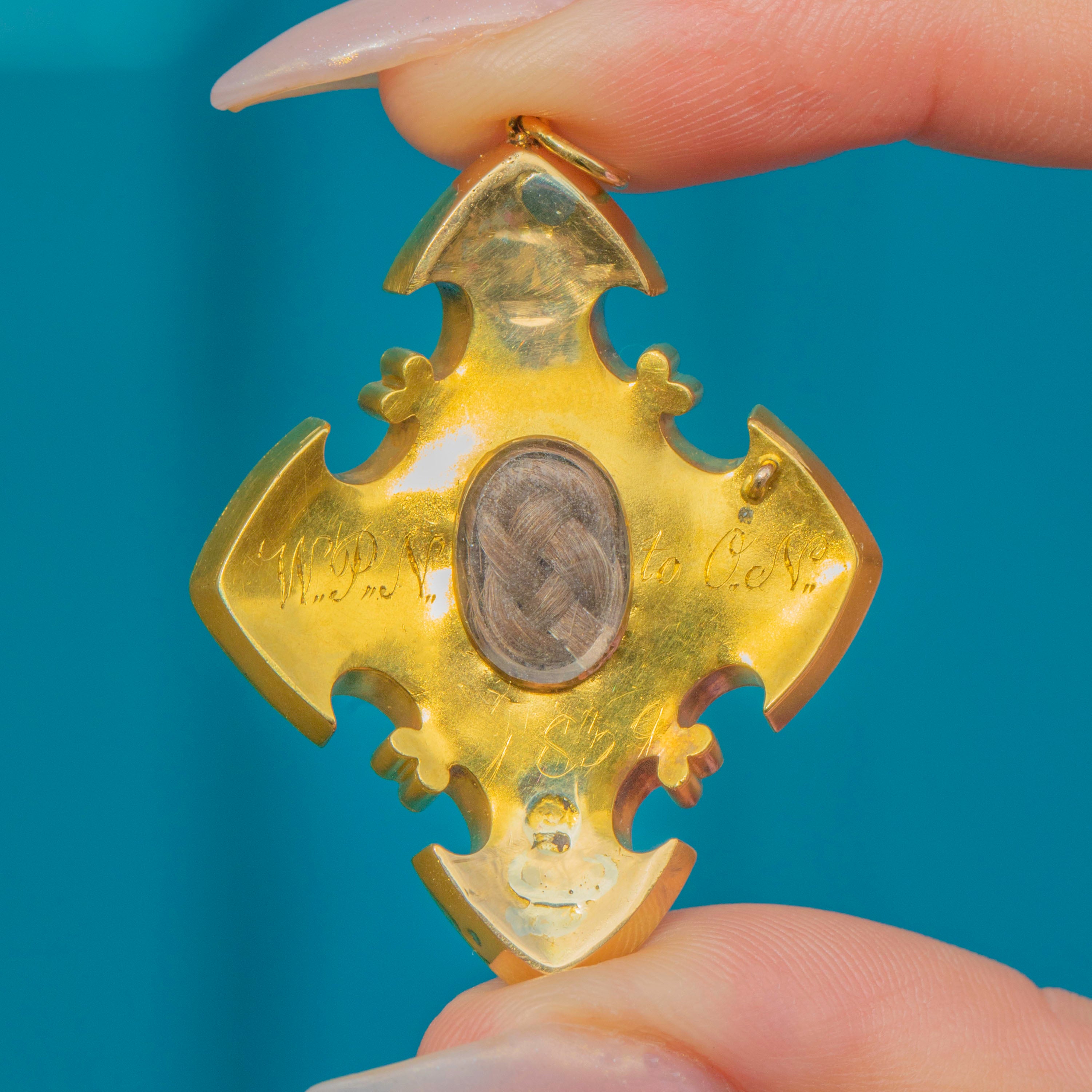 A magnificent early Victorian pendant, c.1850, crafted in rich 18ct Gold and beautifully engraved to catch the light.