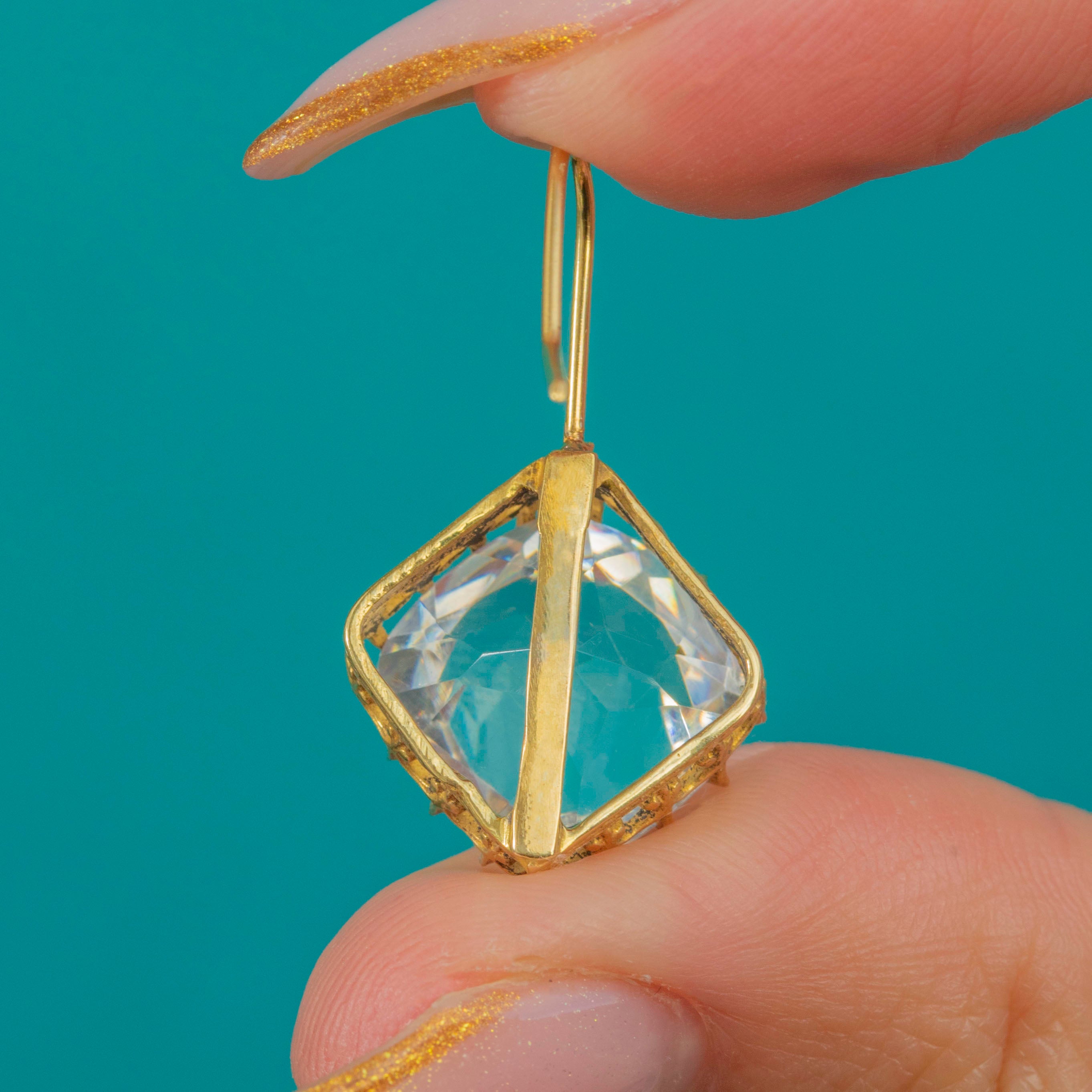 大ぶりシルバーギルトペーストイヤリング、18ctフレンチフック
