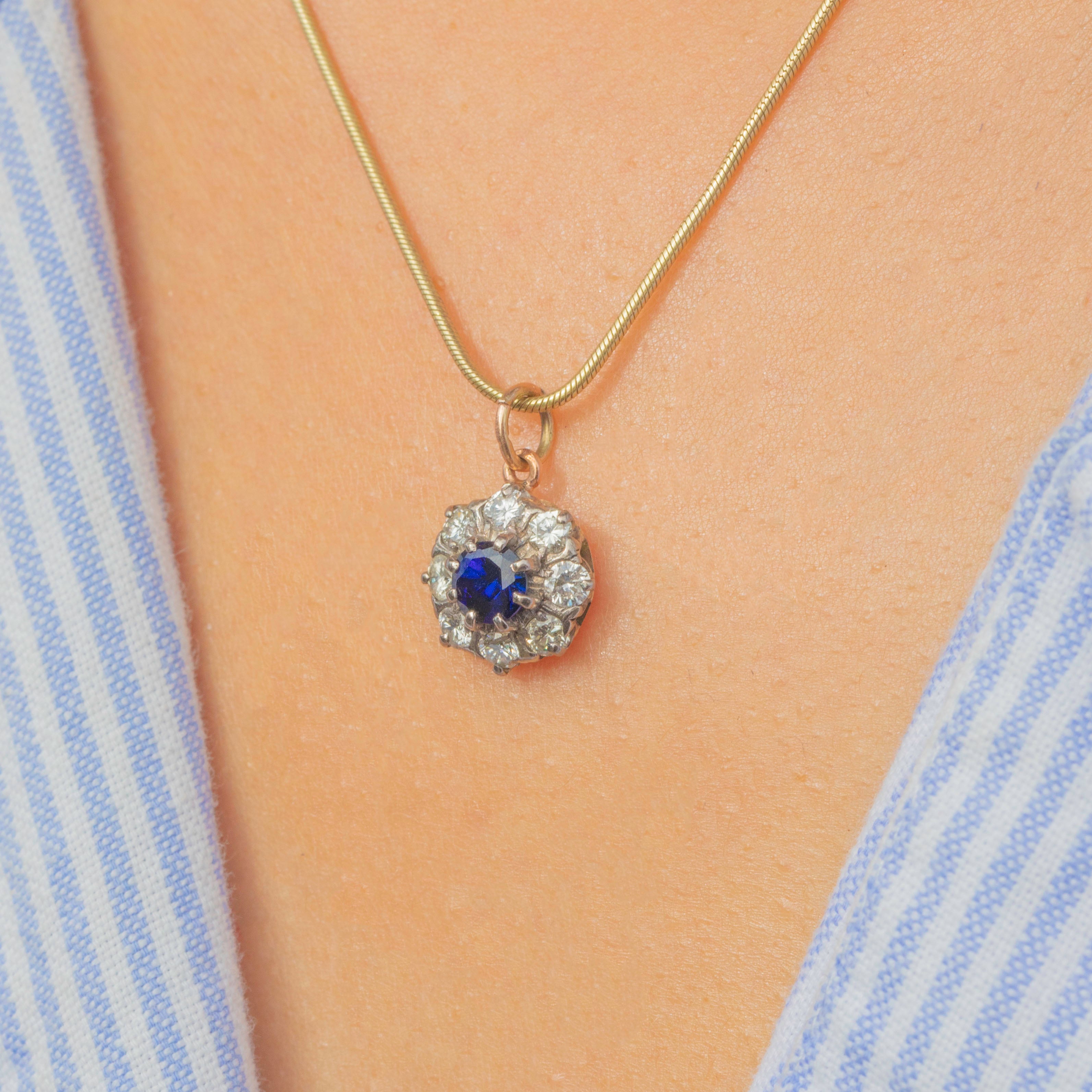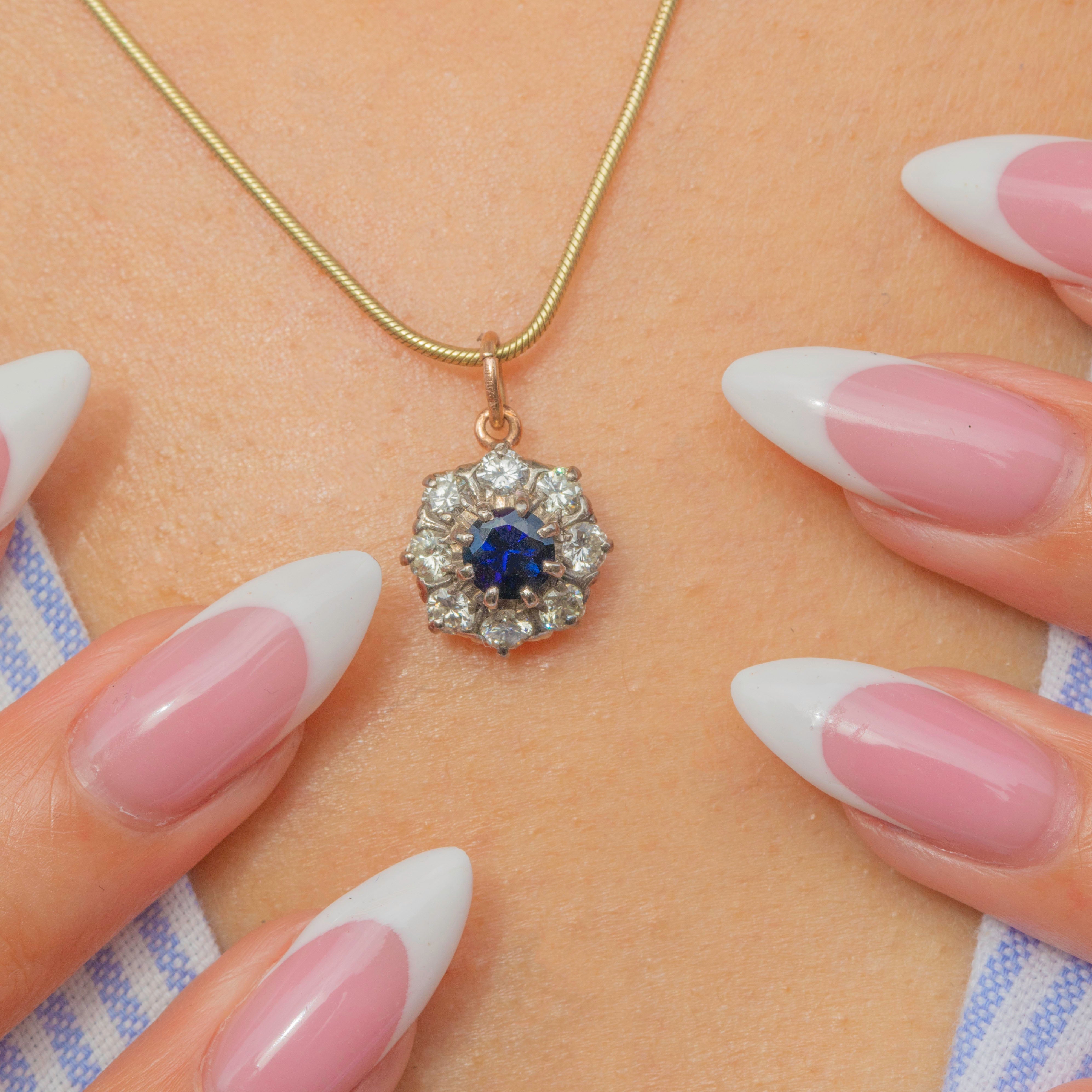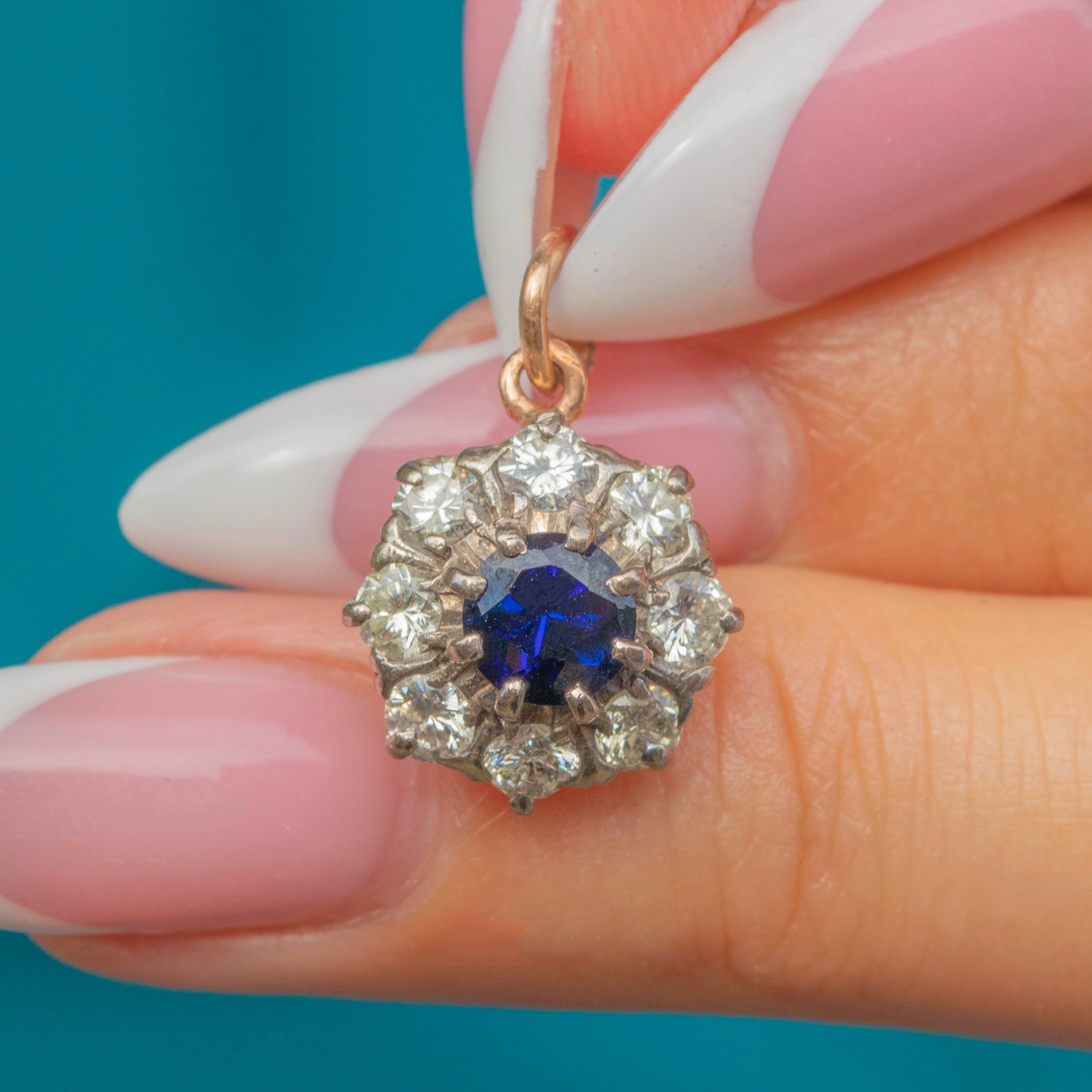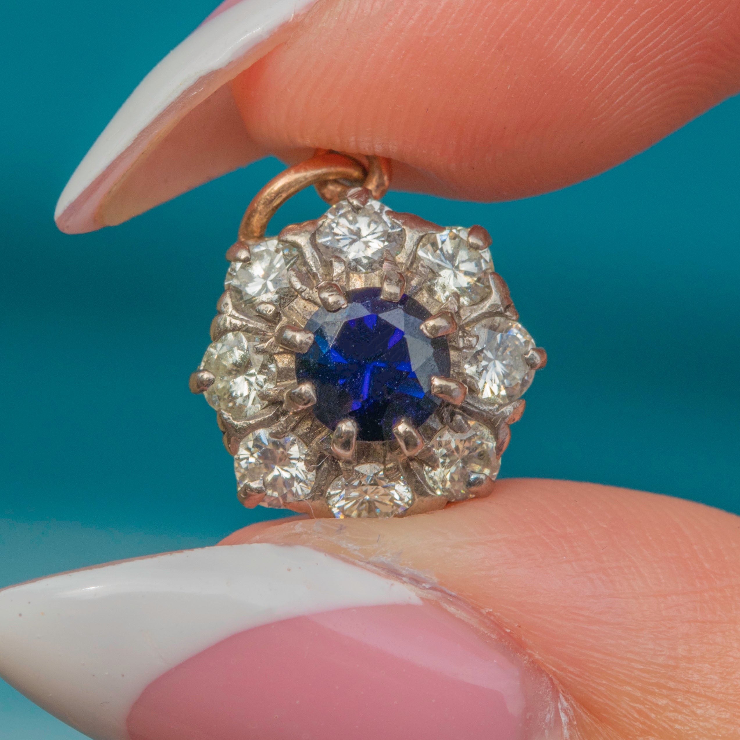 Mid-Century 9ct Gold Sapphire & Diamond Cluster Charm – 0.66ct Sapphire