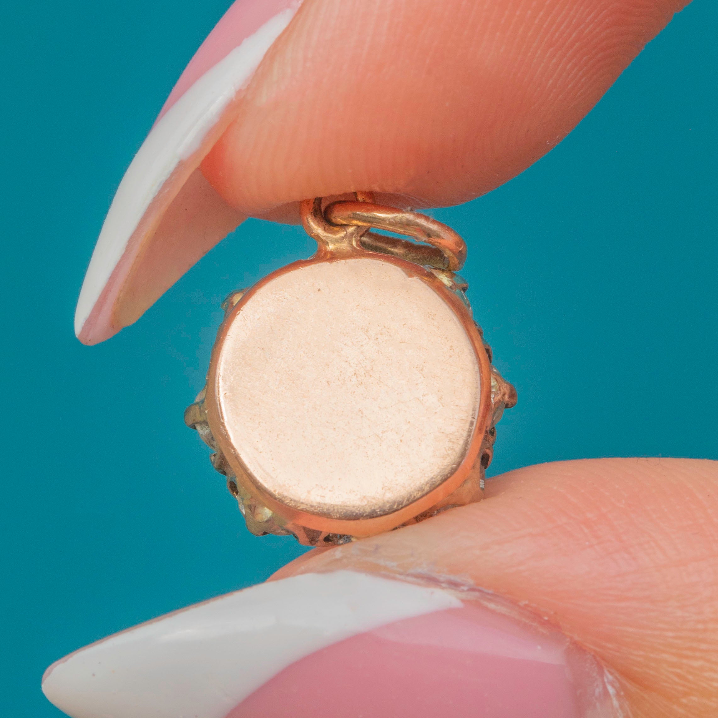 Measuring 12mm in diameter, it is the perfect size to suspend from a fine chain as a delicate pendant or added to a charm bracelet for a touch of refined vintage glamour.
